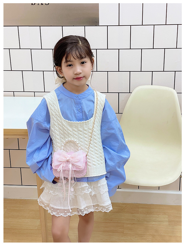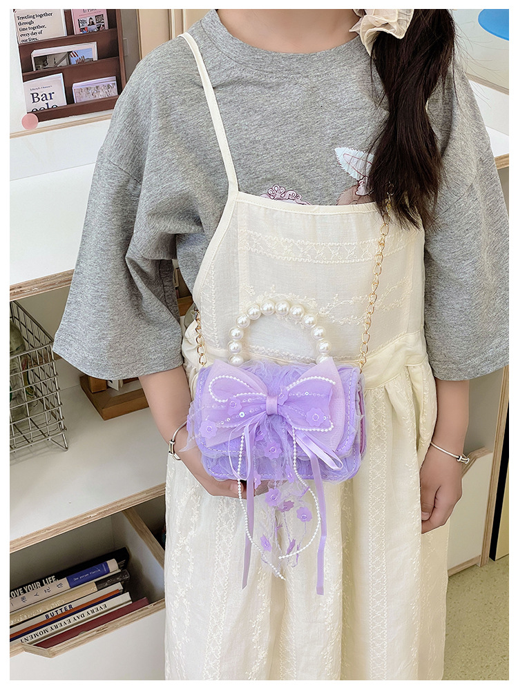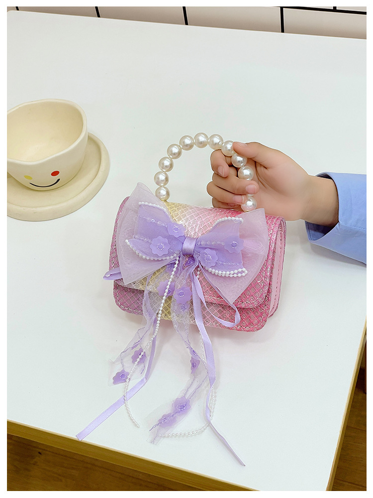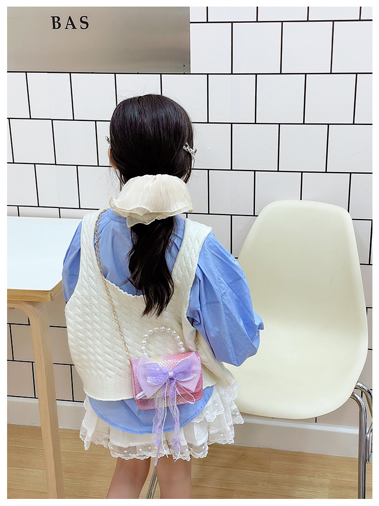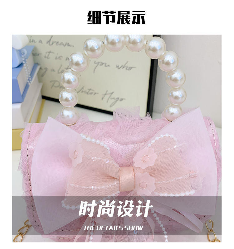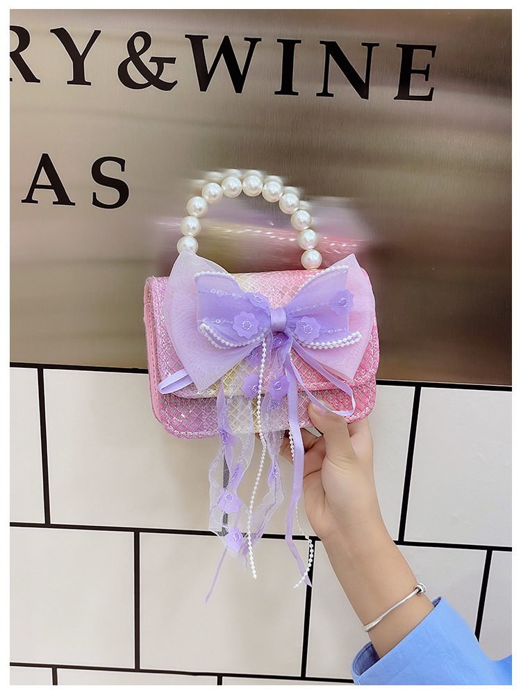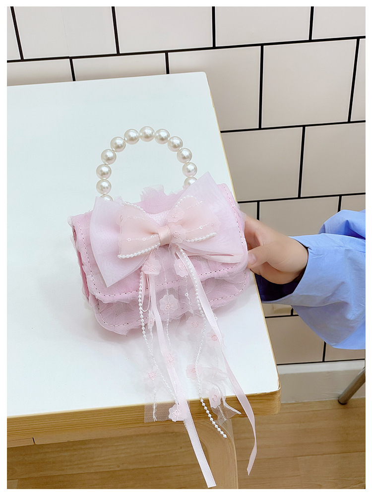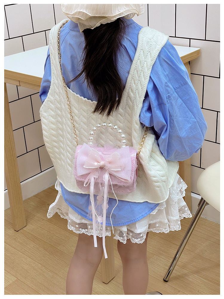 Bolsas infantiles lindas bolsas de hombro de arco pequeña fragancia accesorios princesa de perlas bolsas de cambio bolsas de mano