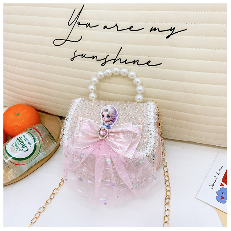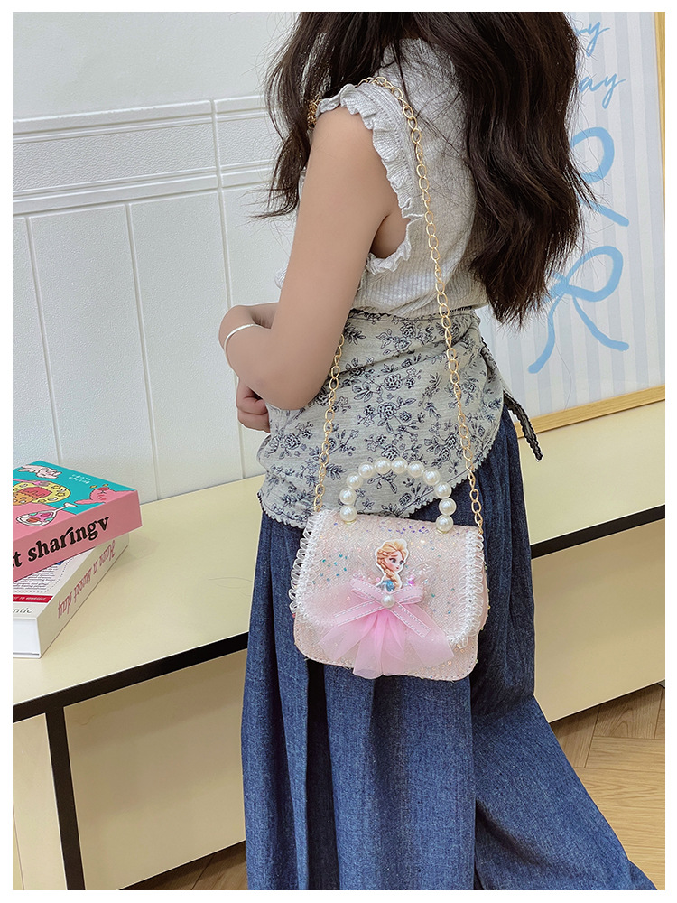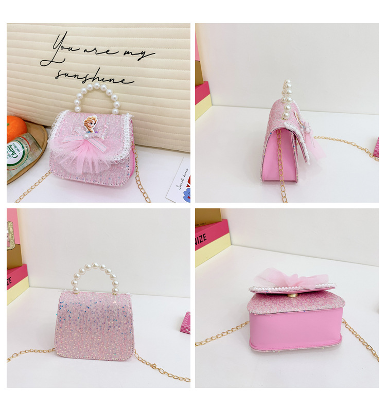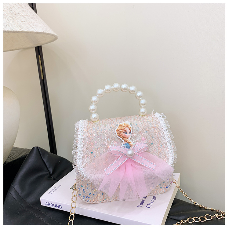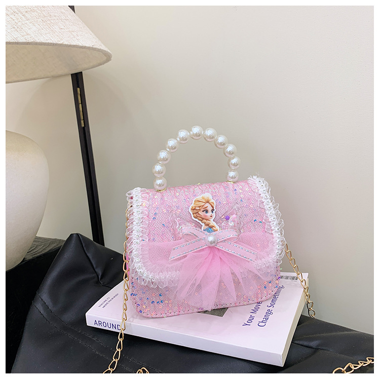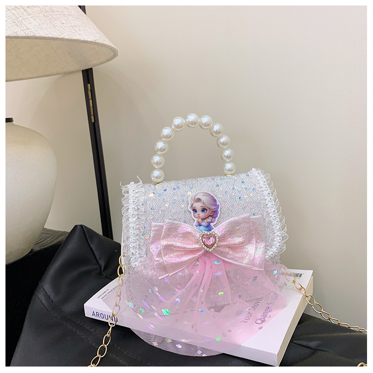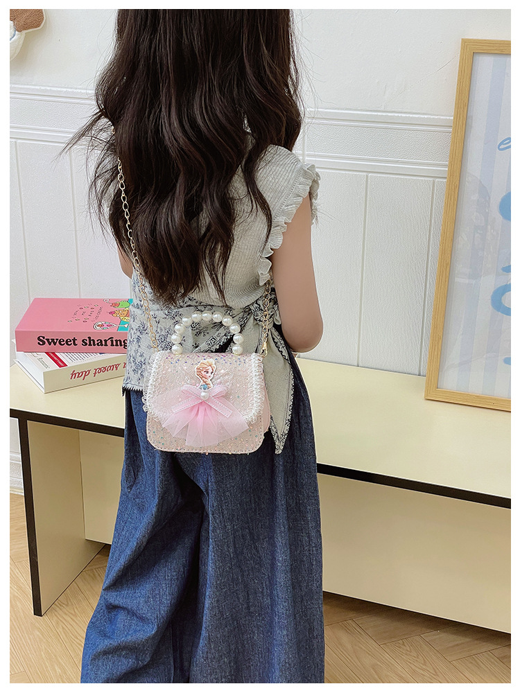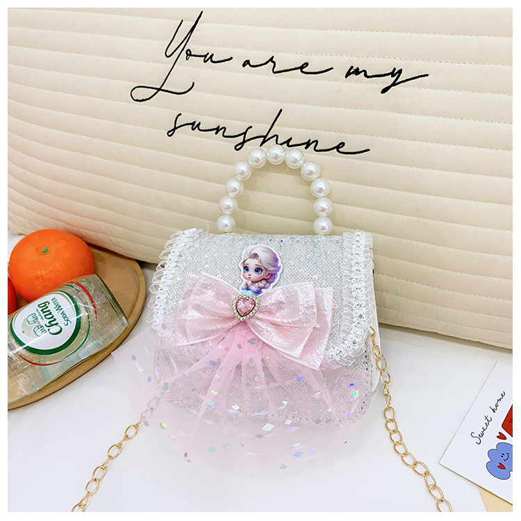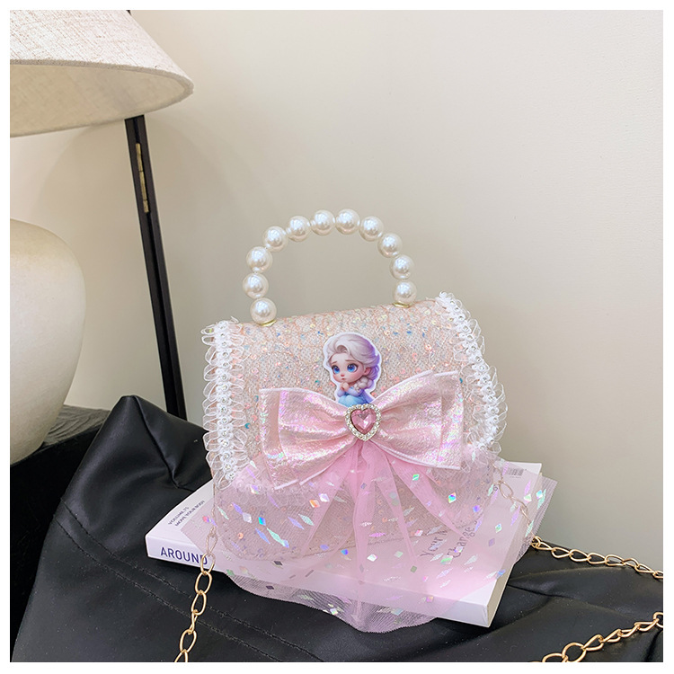 Nuevo bolso para niños niña pequeña bolso de cadena de perlas bolso de mano princesa de moda monedero de hombro
