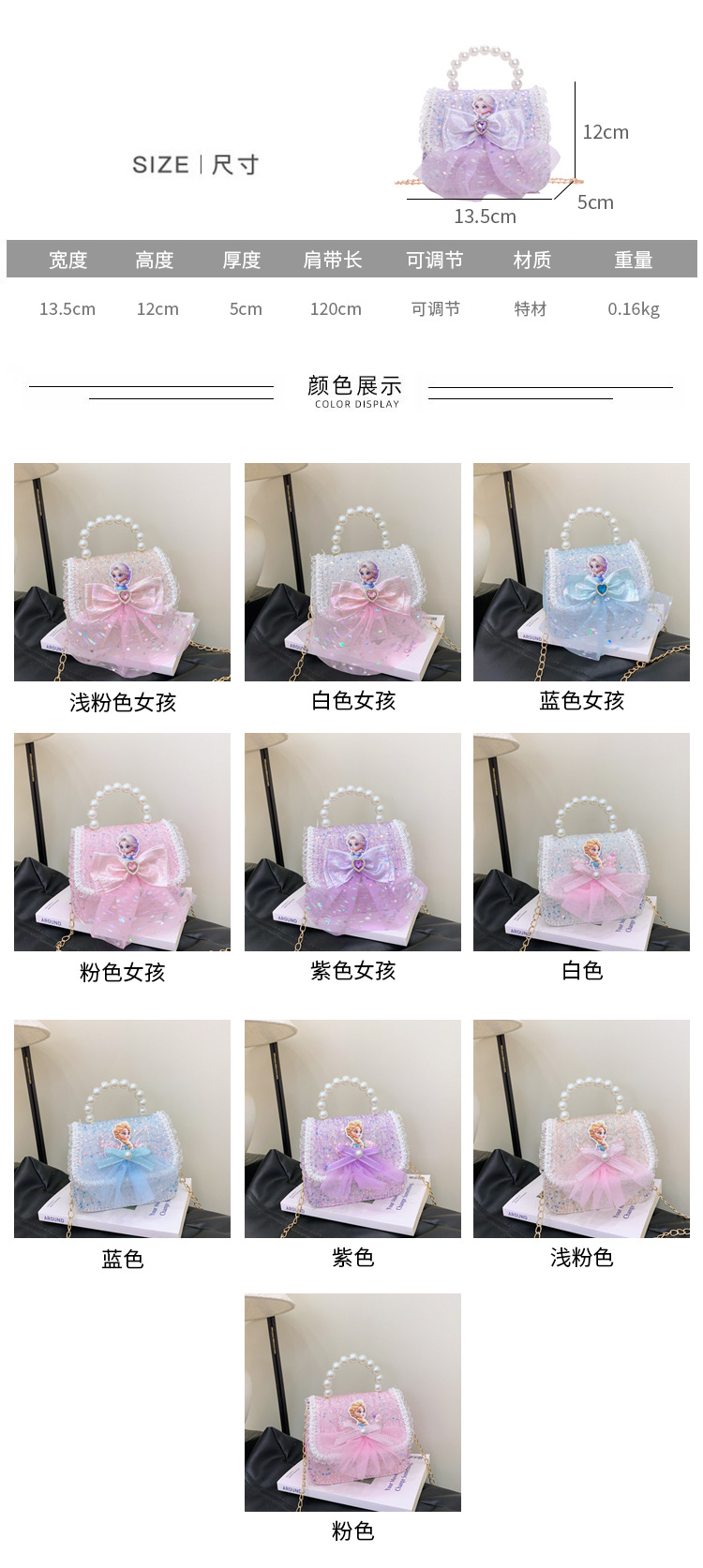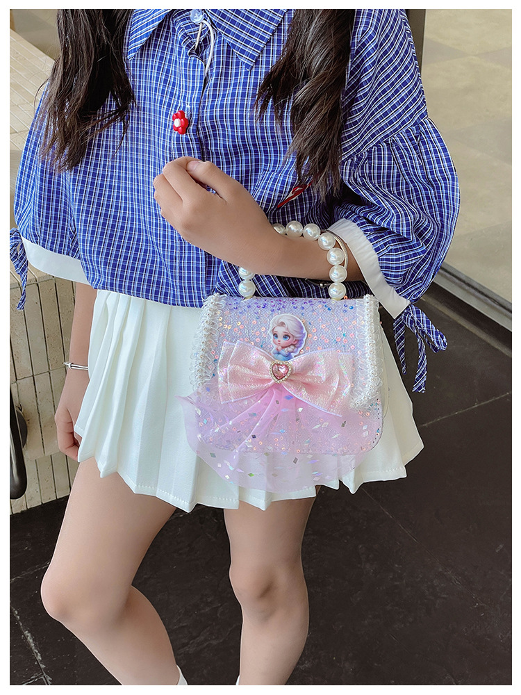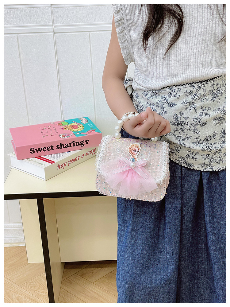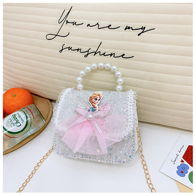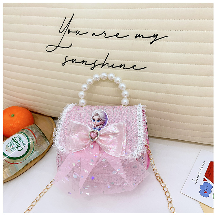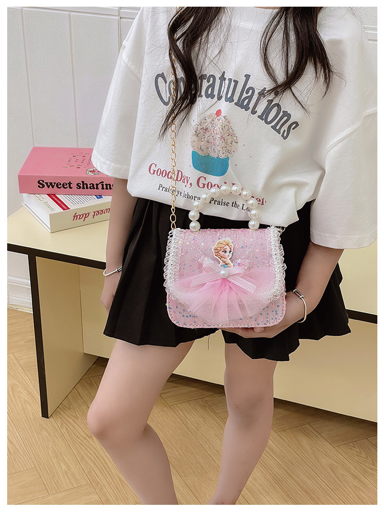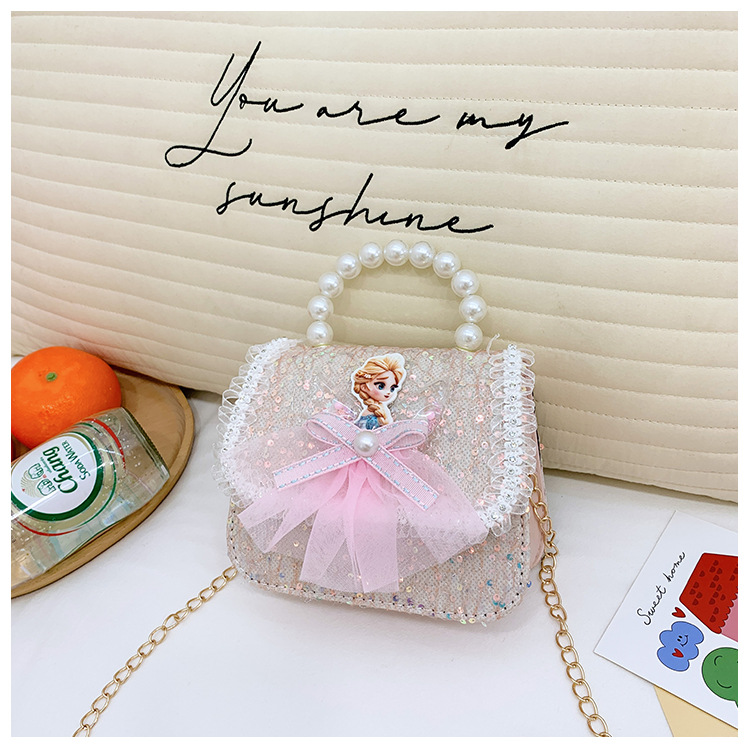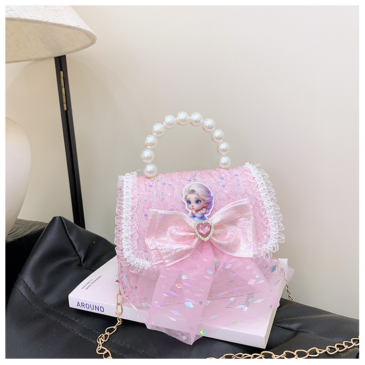 Nuevo bolso para niños niña pequeña bolso de cadena de perlas bolso de mano princesa de moda monedero de hombro