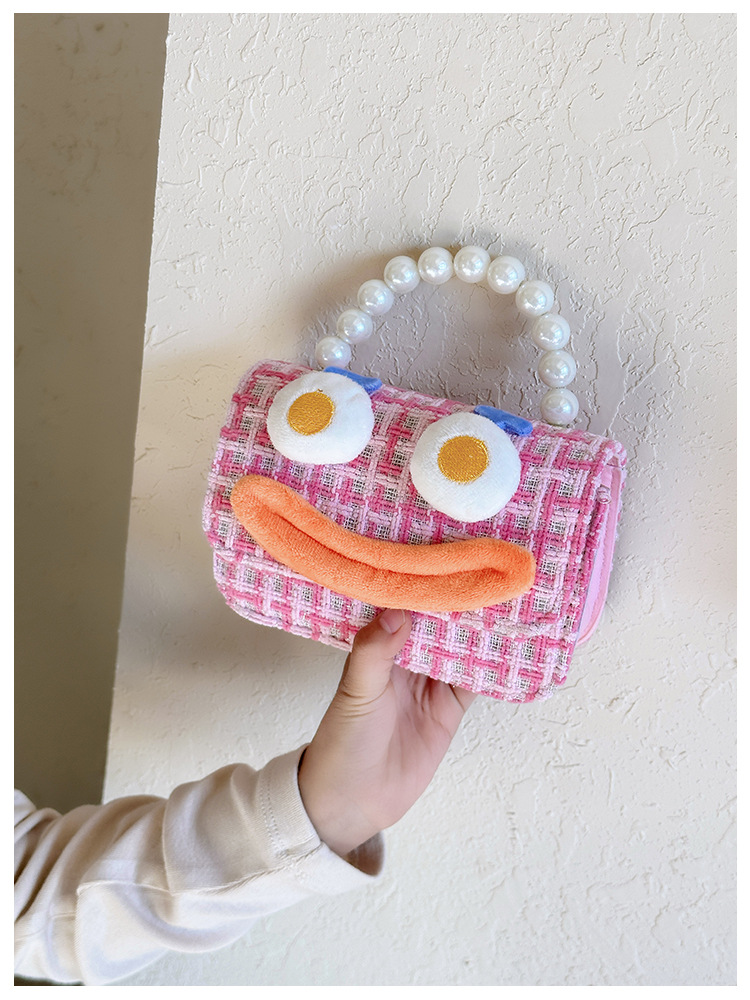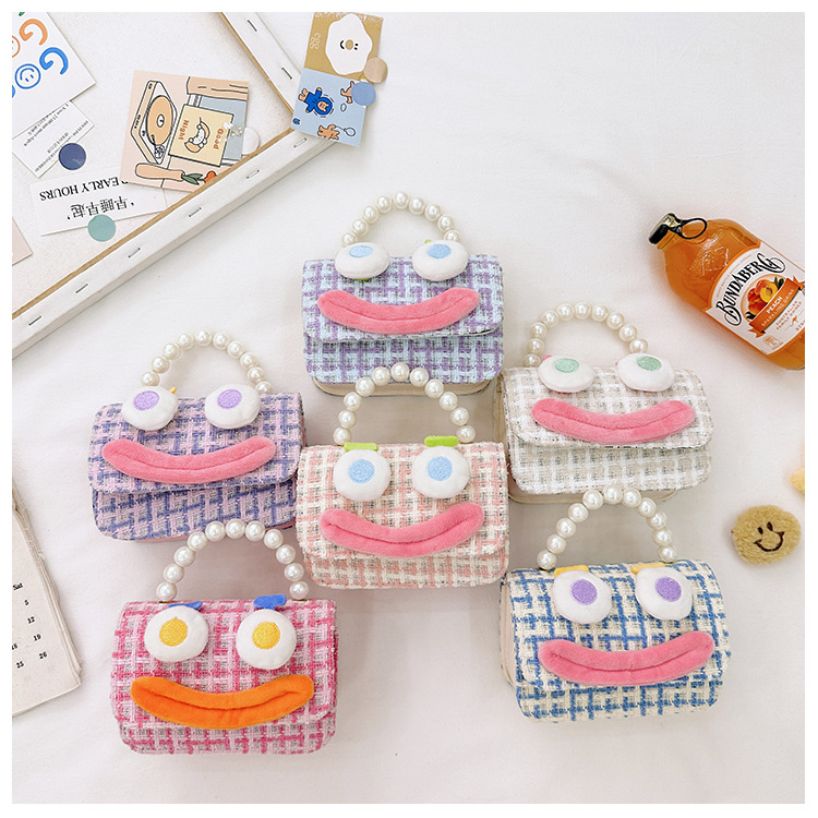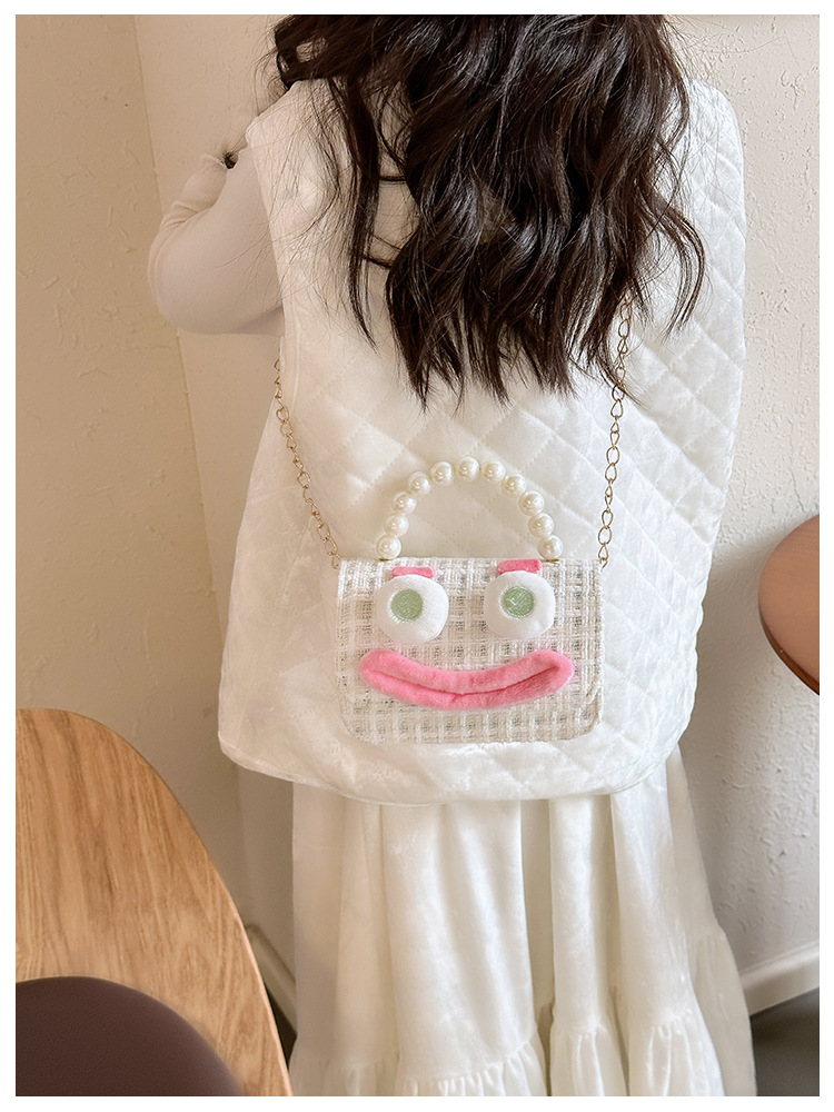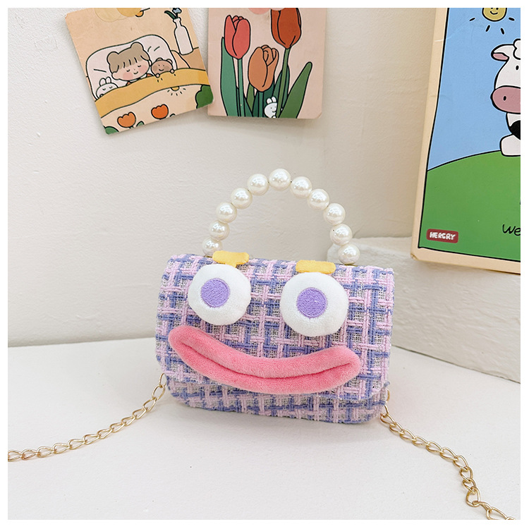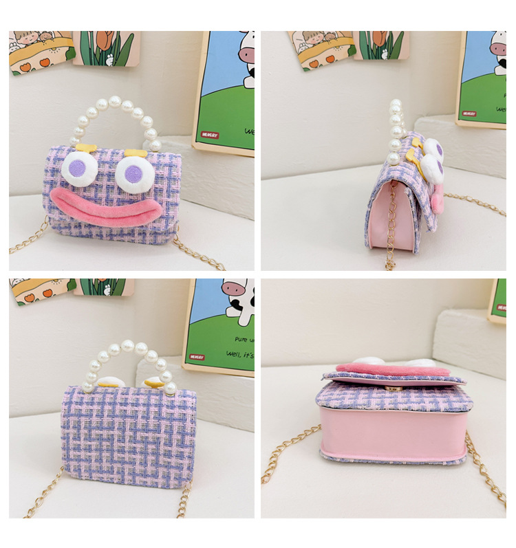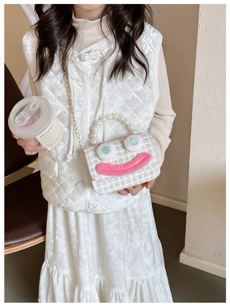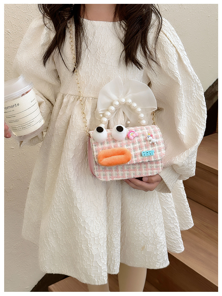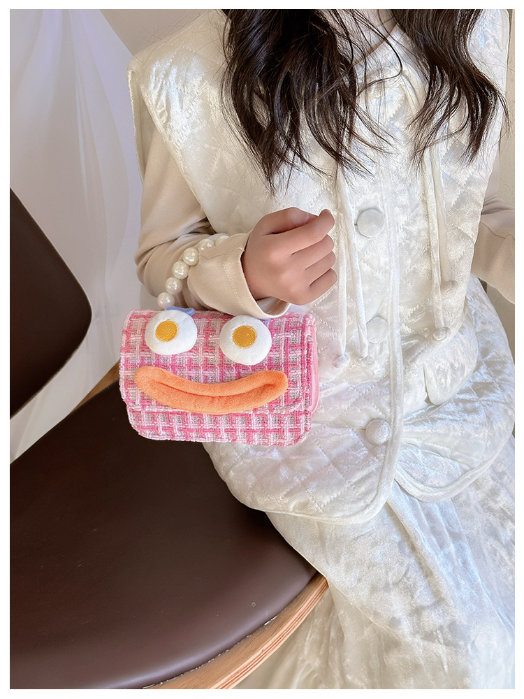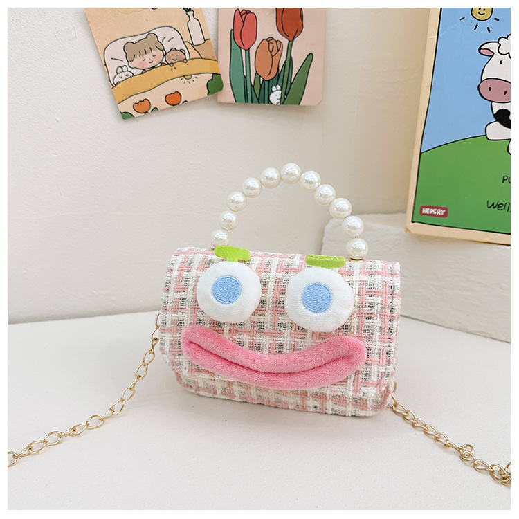 Bolso de perla para niños 2023 nuevo algodón y lino cadena pequeña bolsa cuadrada Linda fea linda chica bolsa decorativa bolsa de mensajero