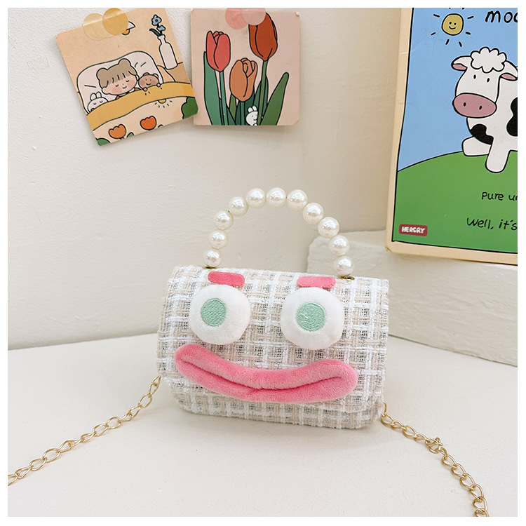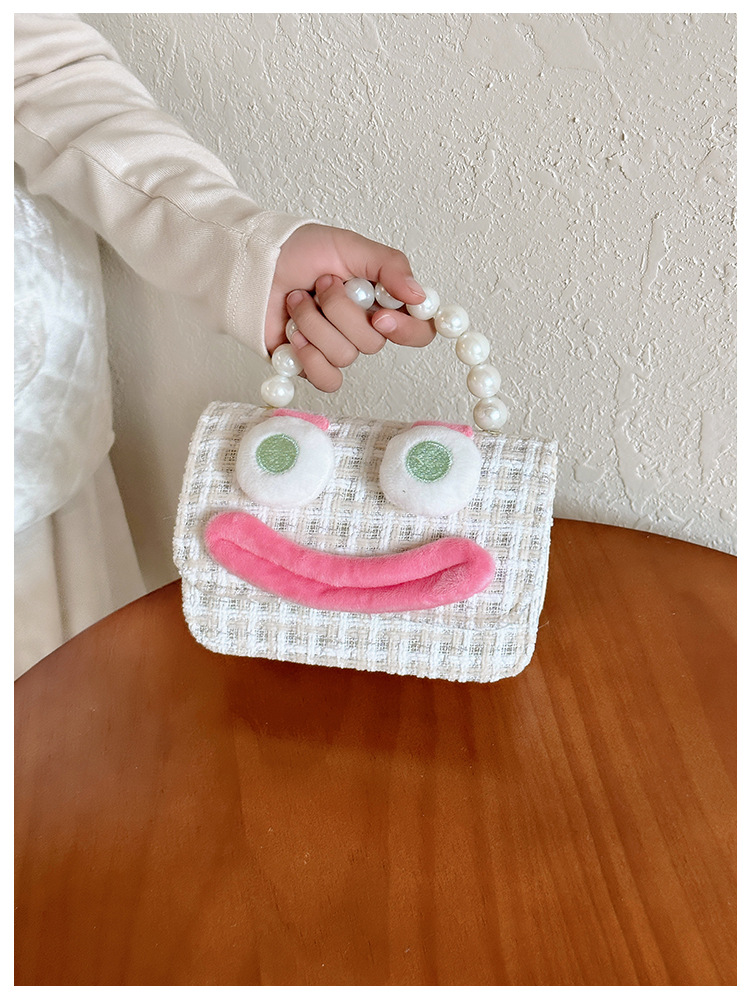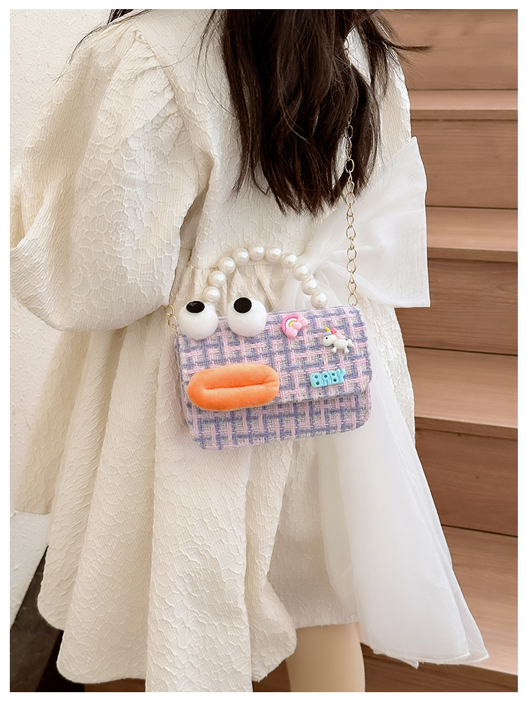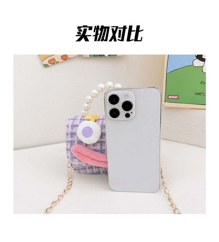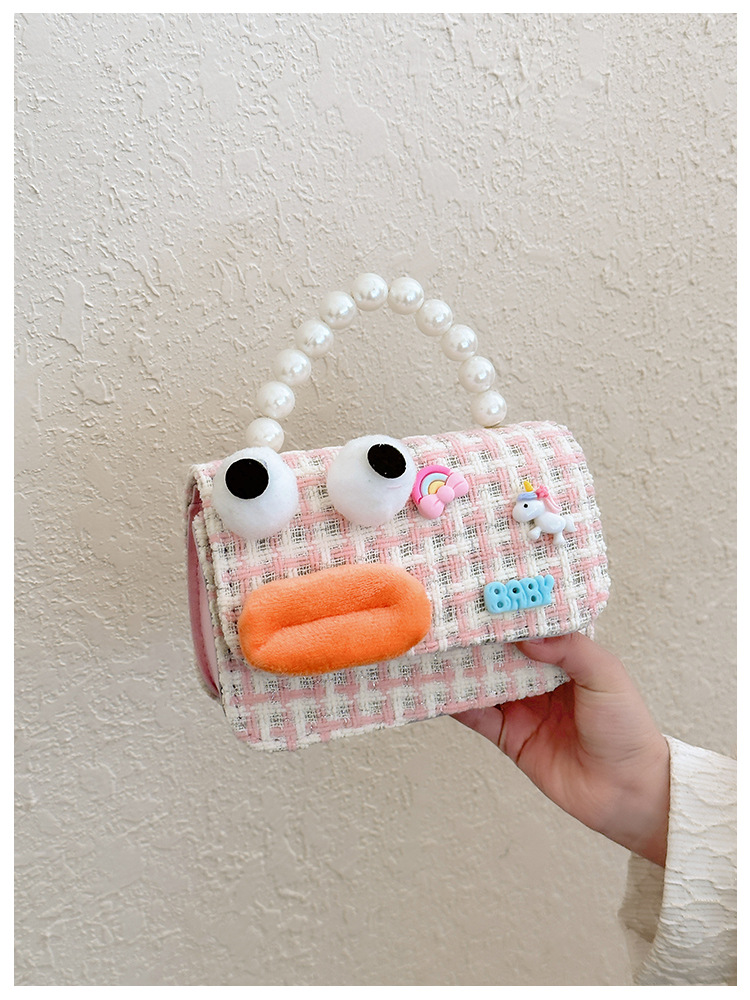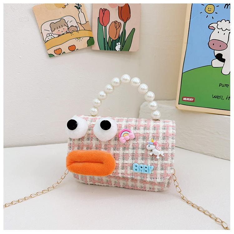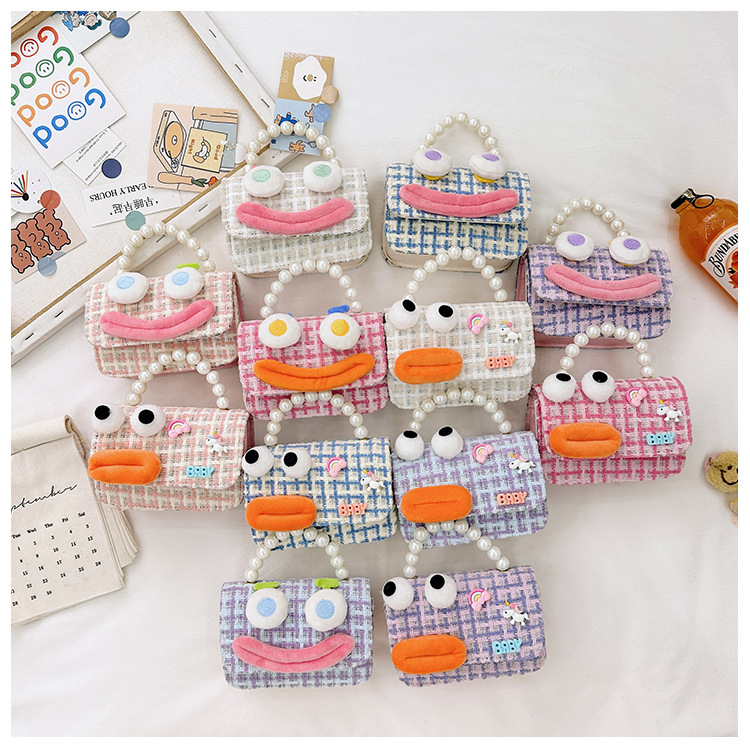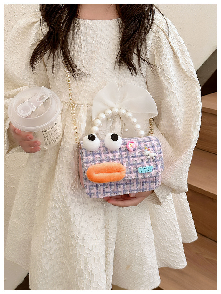 Bolso de perla para niños 2023 nuevo algodón y lino cadena pequeña bolsa cuadrada Linda fea linda chica bolsa decorativa bolsa de mensajero
