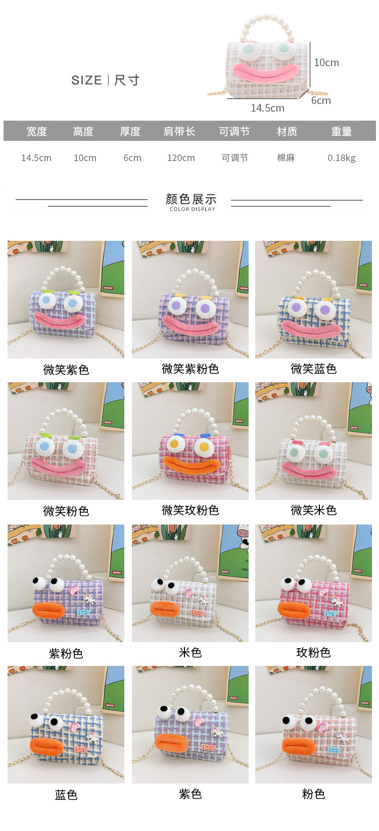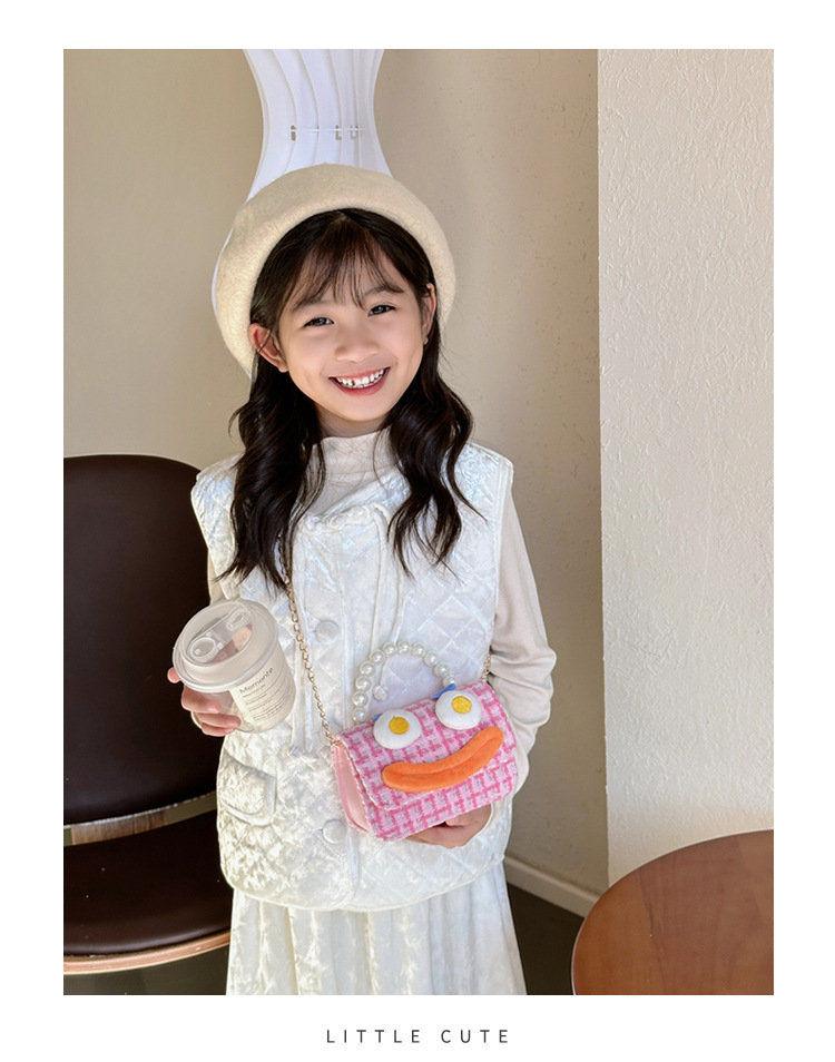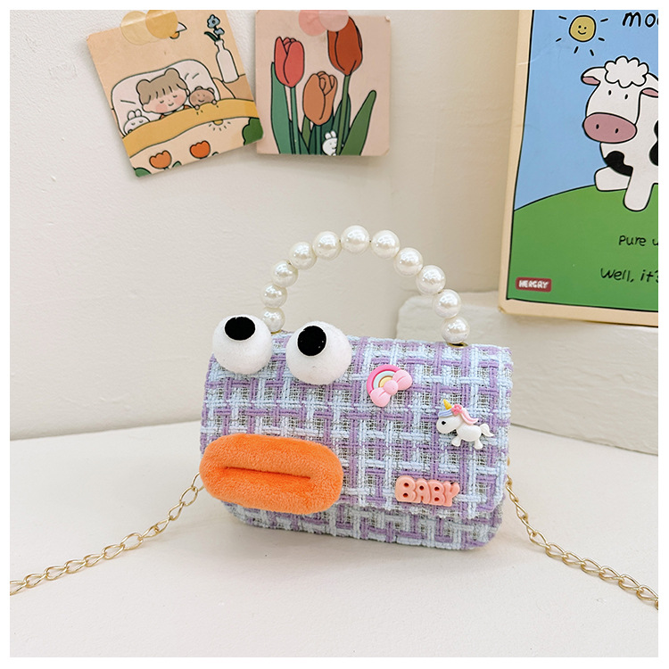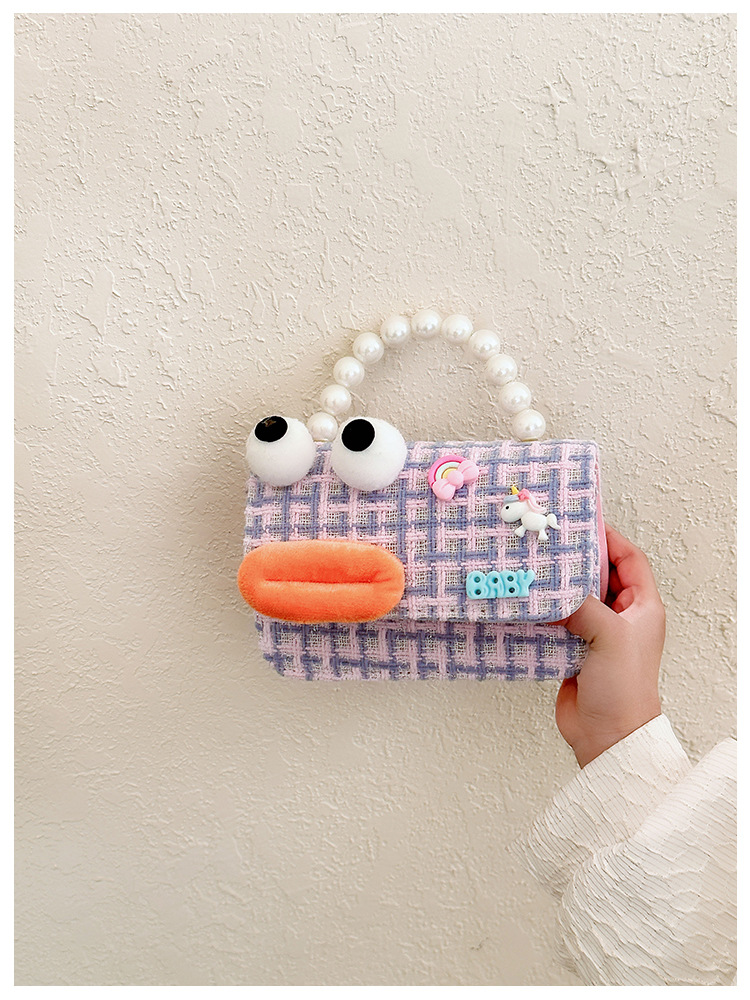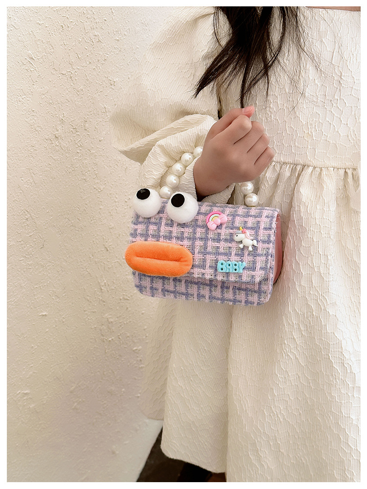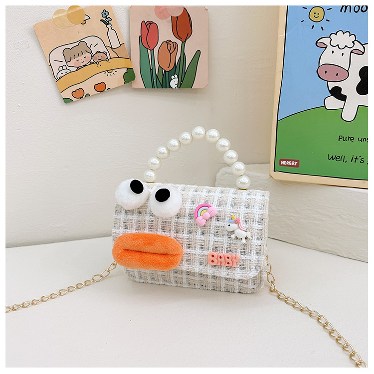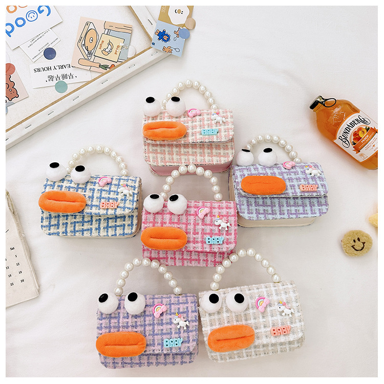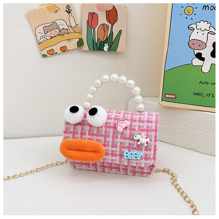 Bolso de perla para niños 2023 nuevo algodón y lino cadena pequeña bolsa cuadrada Linda fea linda chica bolsa decorativa bolsa de mensajero