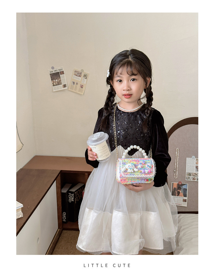 Otoño e Invierno nueva niña monedero dibujos animados lindo accesorios perla bolso versátil estilo occidental bebé bolsa de hombro