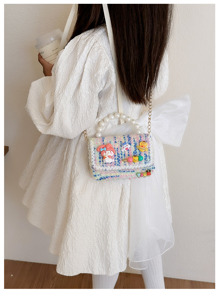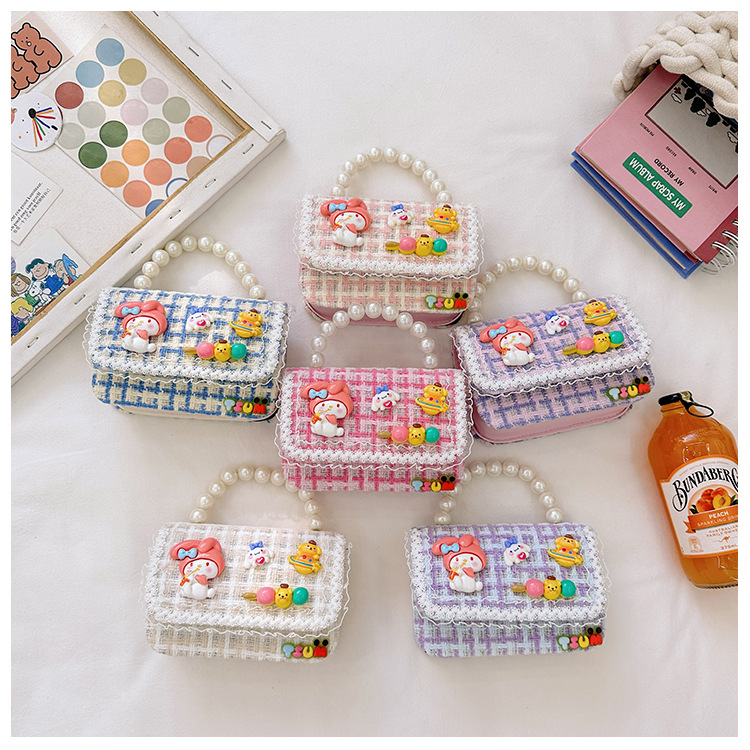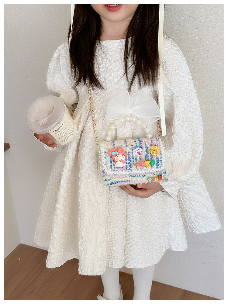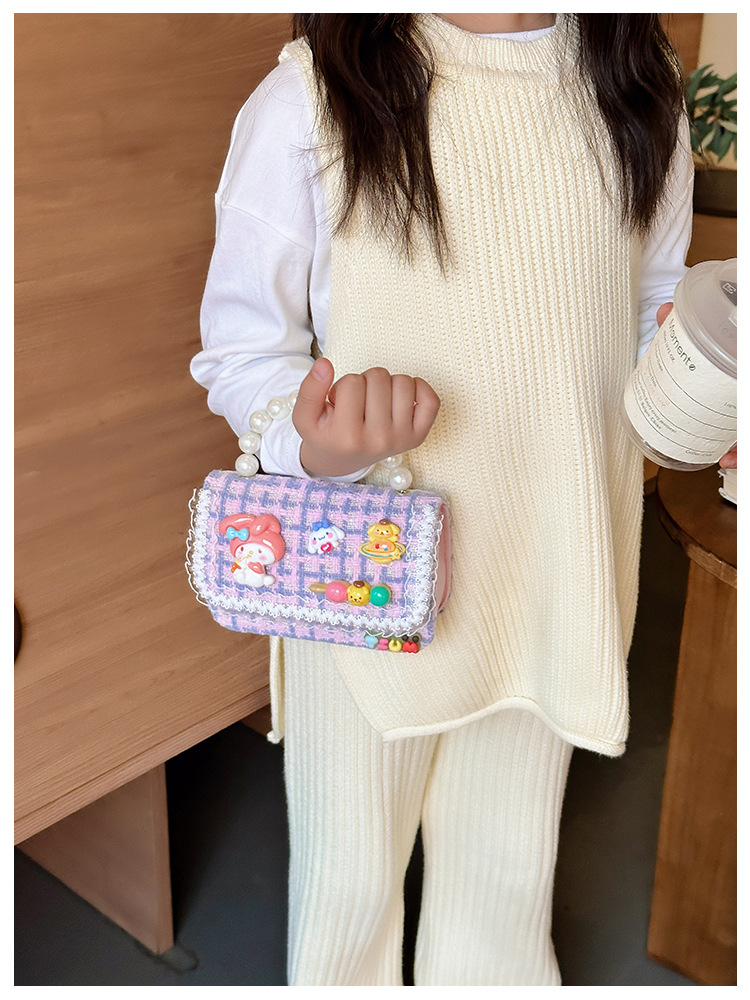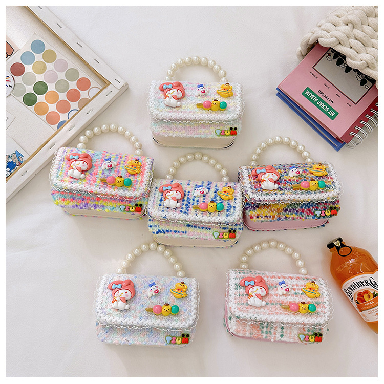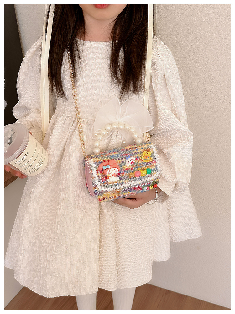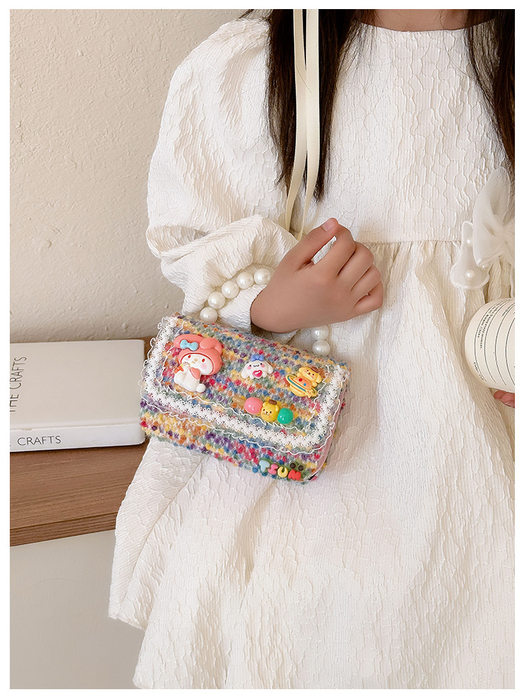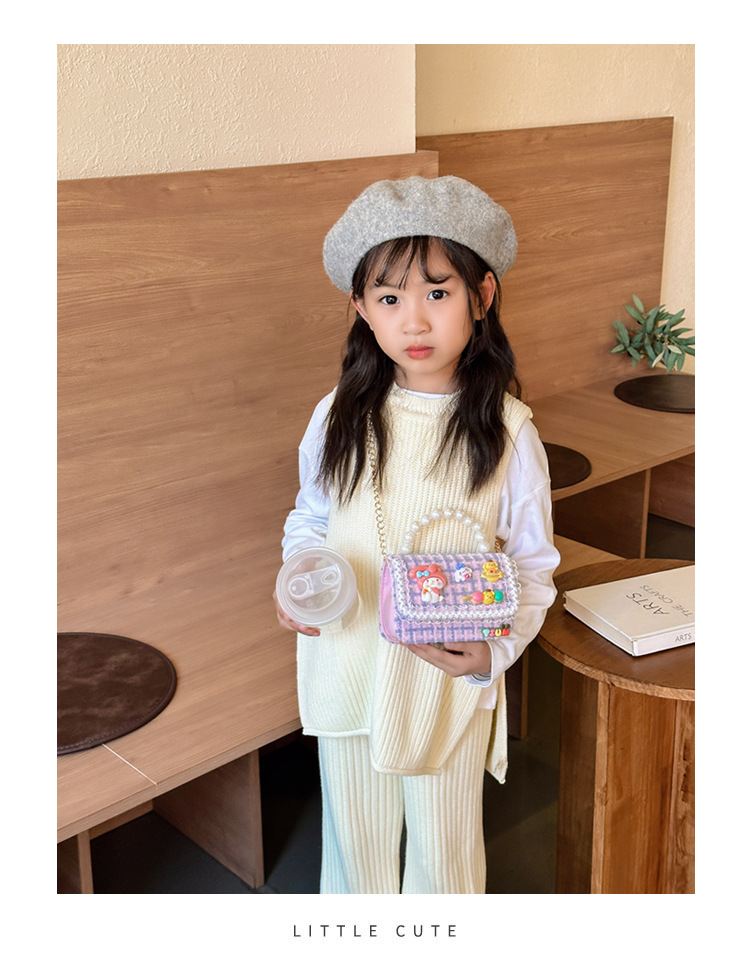Venta al por mayor Otoño e Invierno estilo occidental niños pequeño bolso cuadrado moda femenina niñas contraste color cadena bolso simple con cuentas