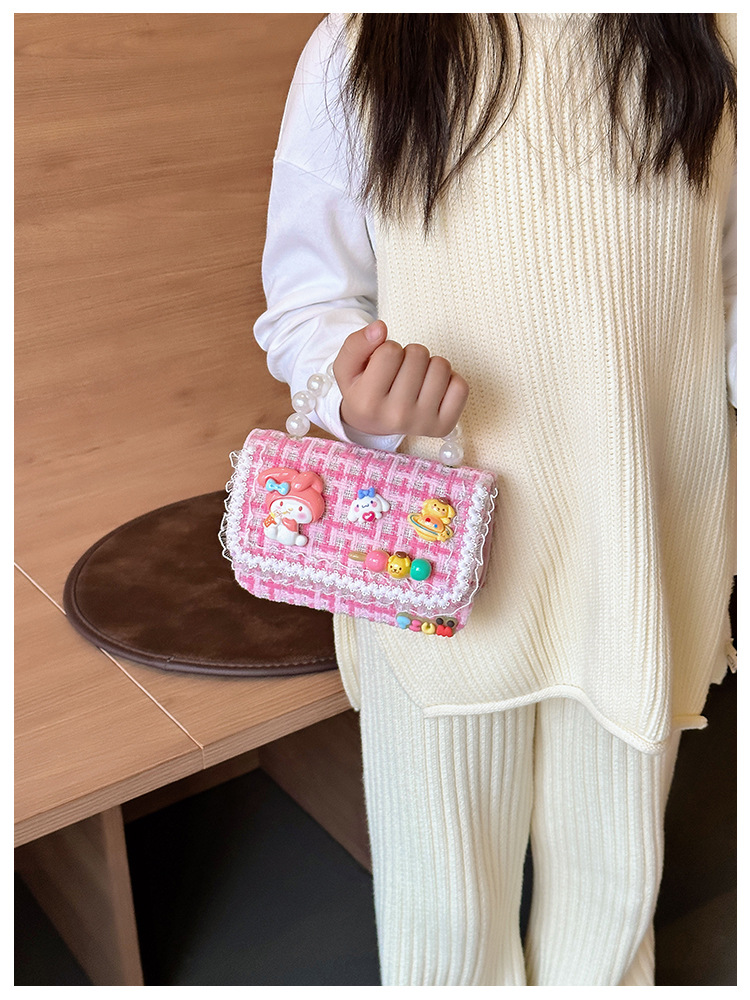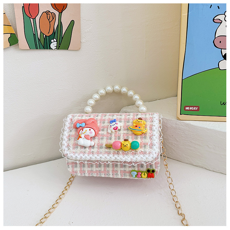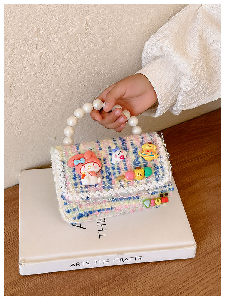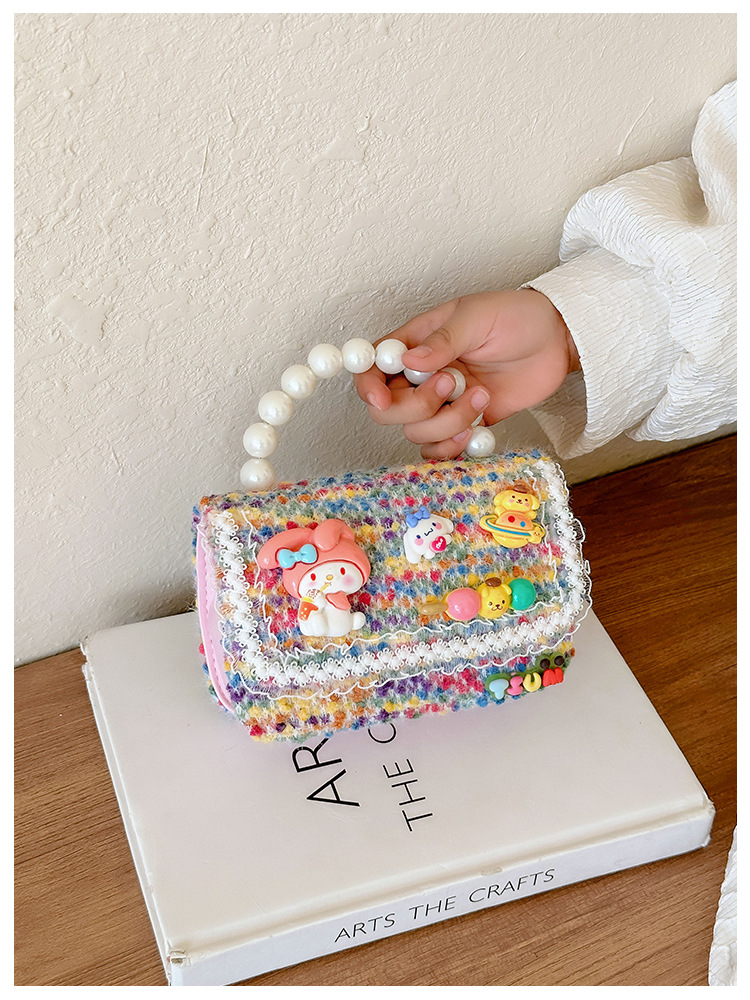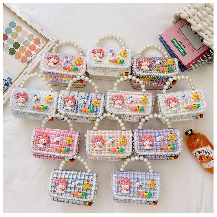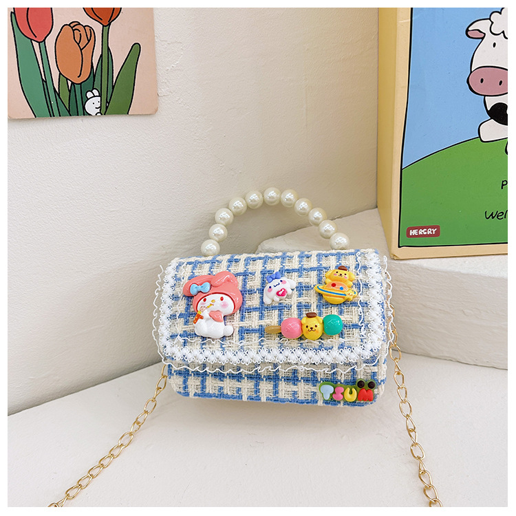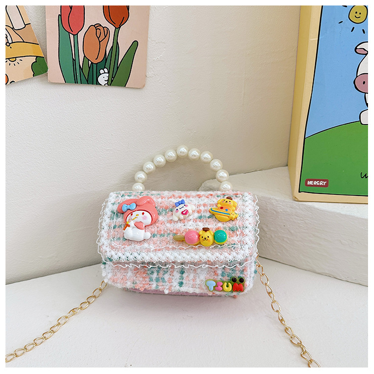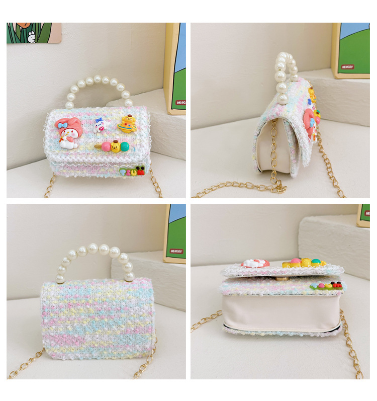 Venta al por mayor Otoño e Invierno estilo occidental niños pequeño bolso cuadrado moda femenina niñas contraste color cadena bolso simple con cuentas