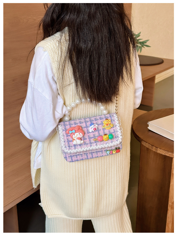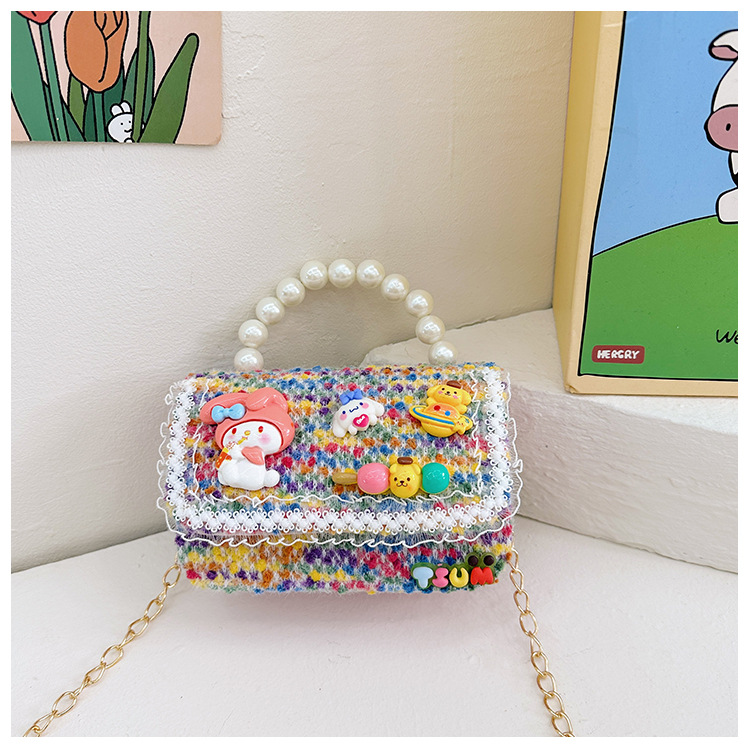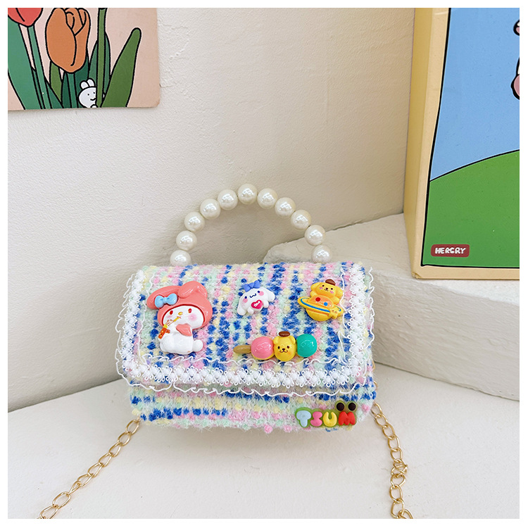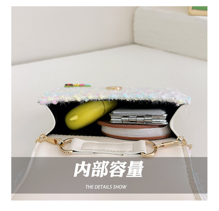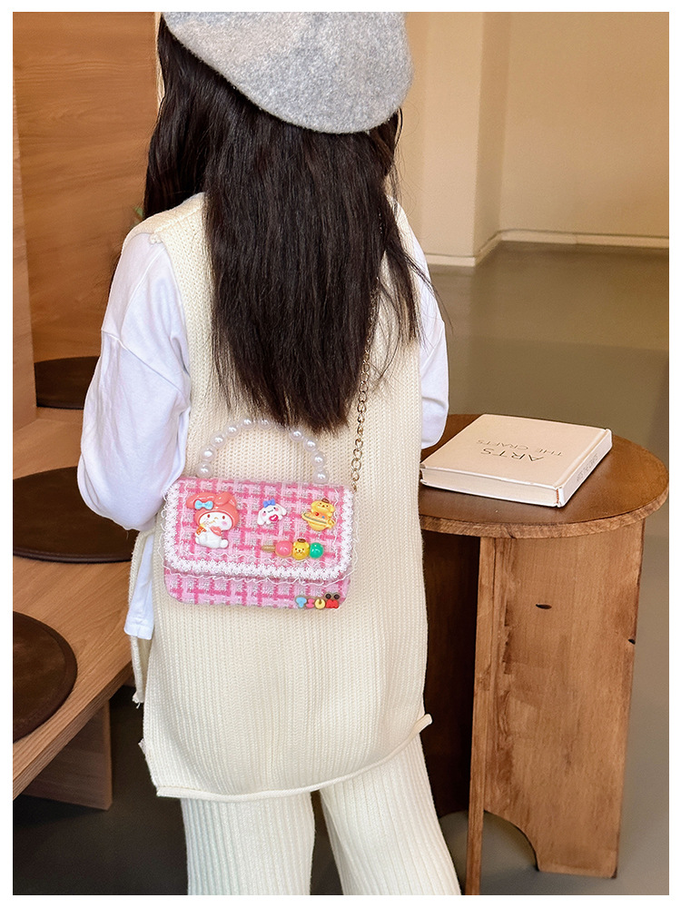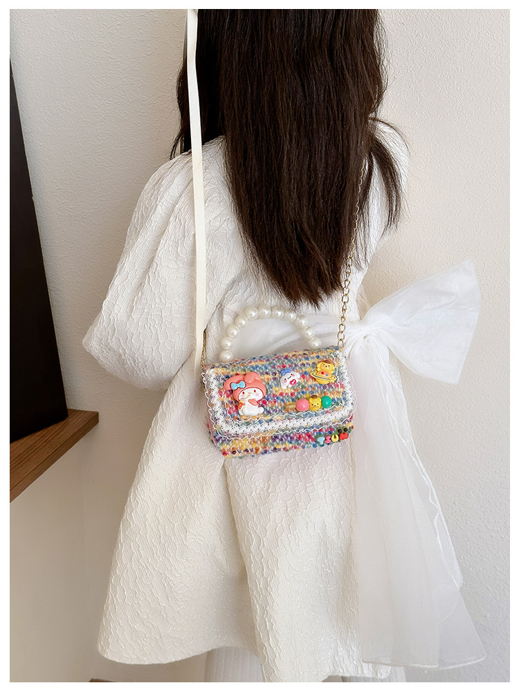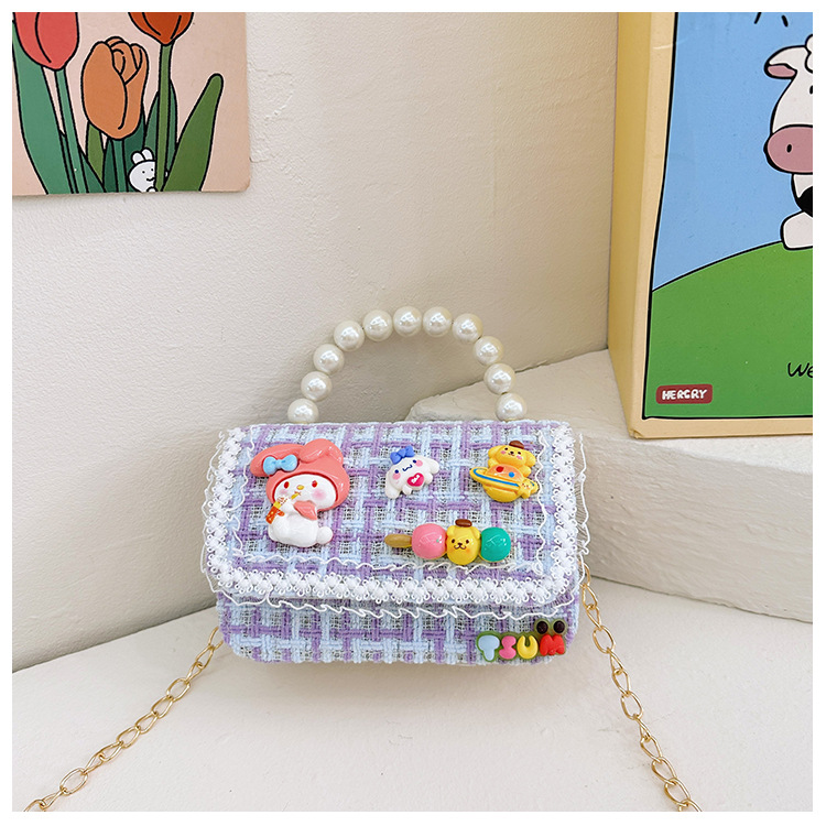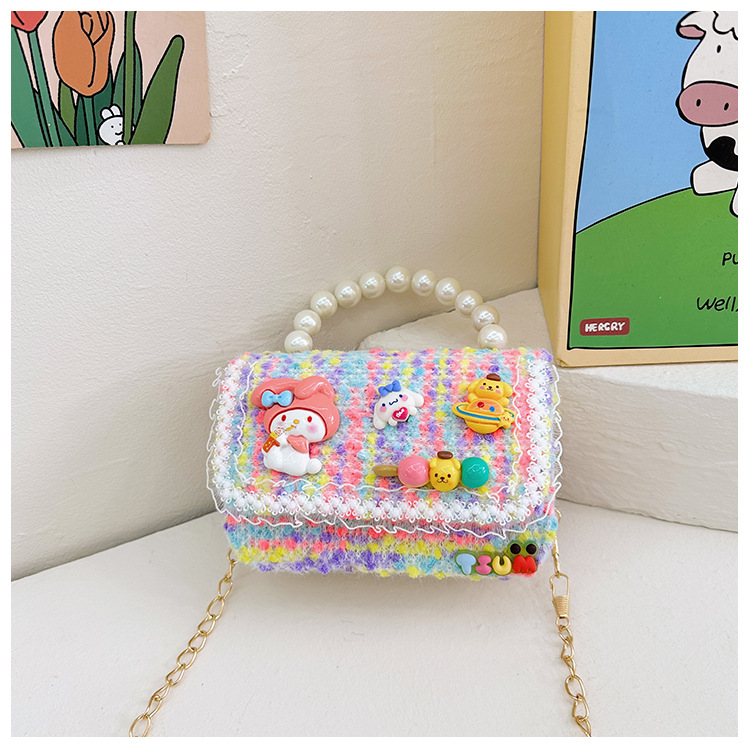 Venta al por mayor Otoño e Invierno estilo occidental niños pequeño bolso cuadrado moda femenina niñas contraste color cadena bolso simple con cuentas