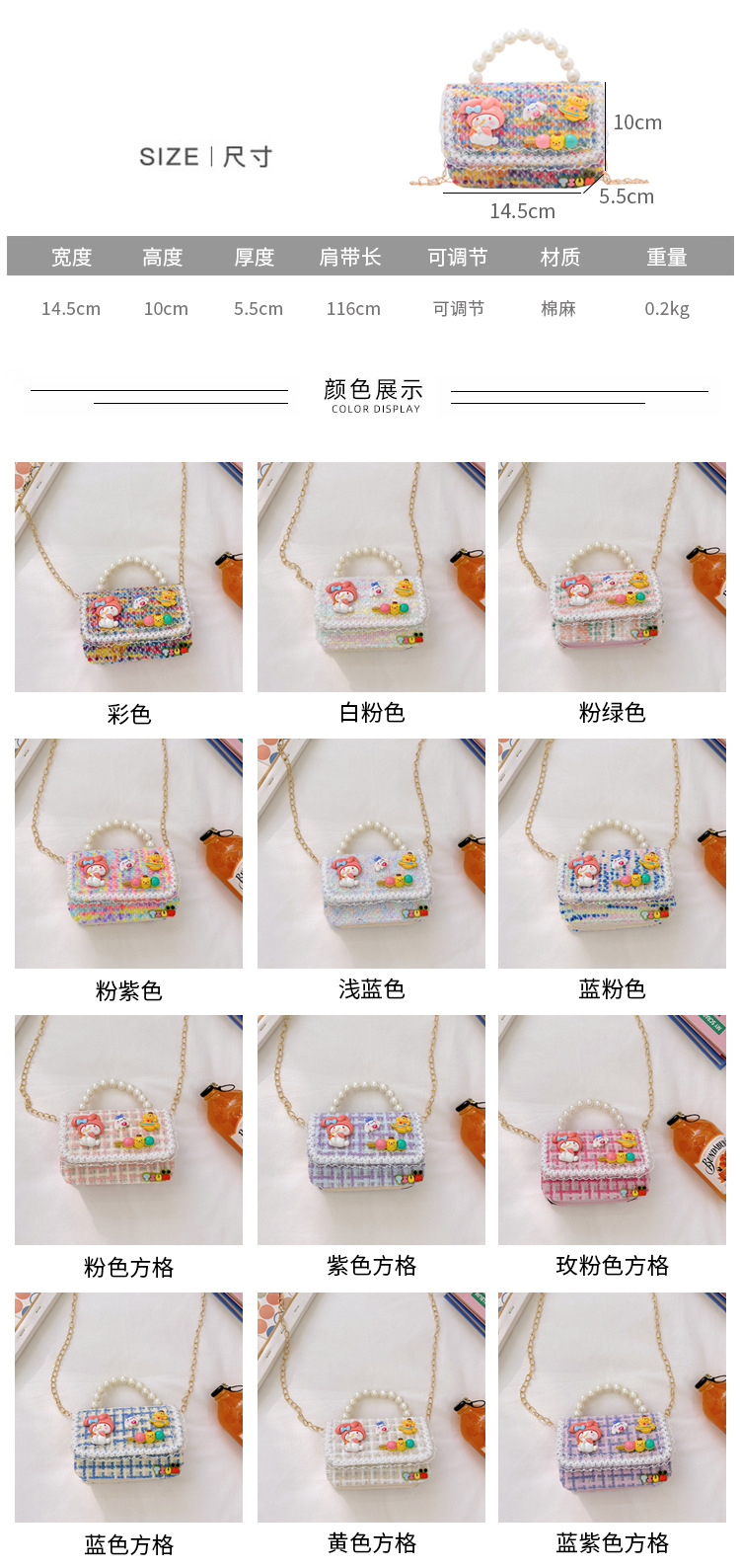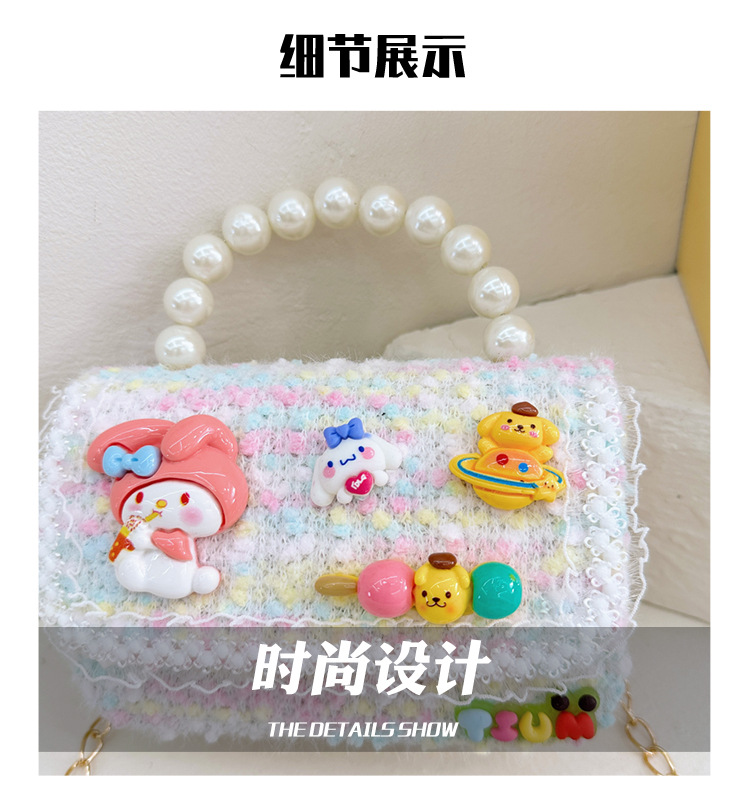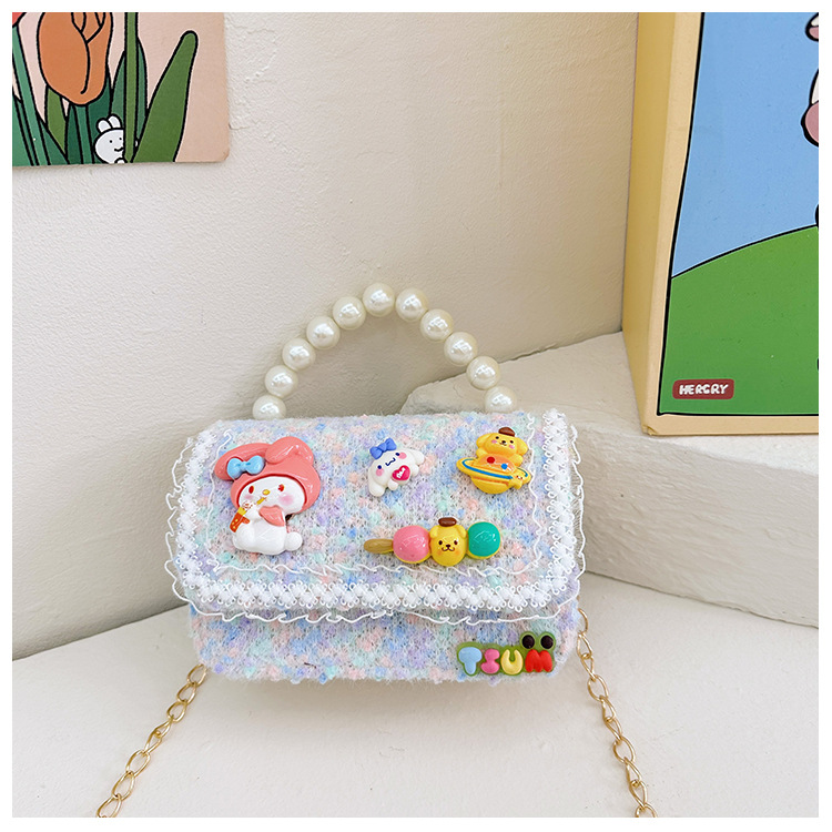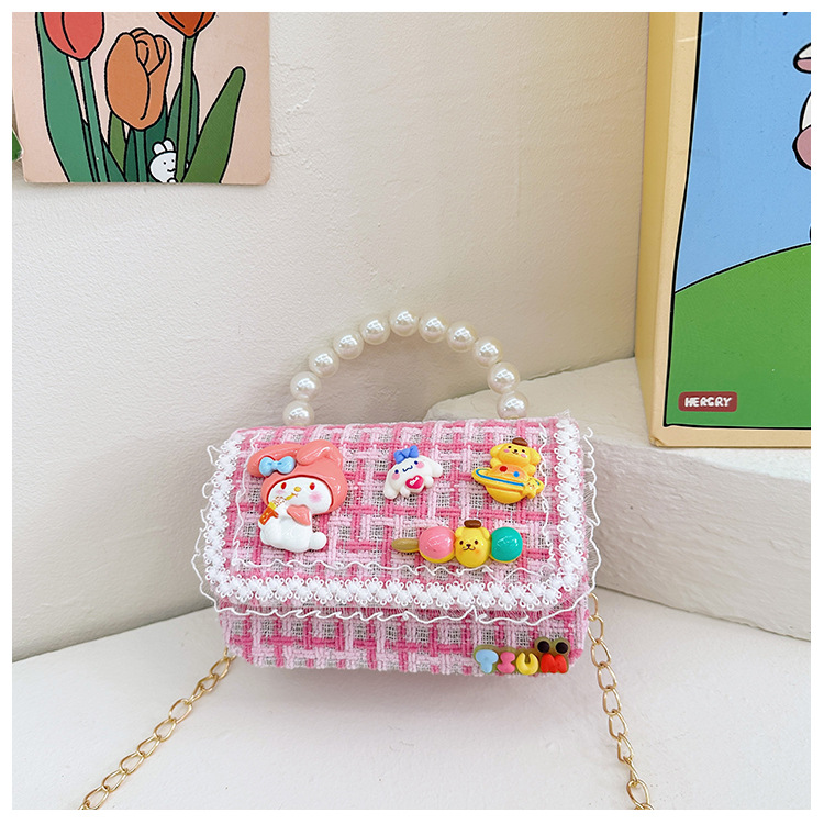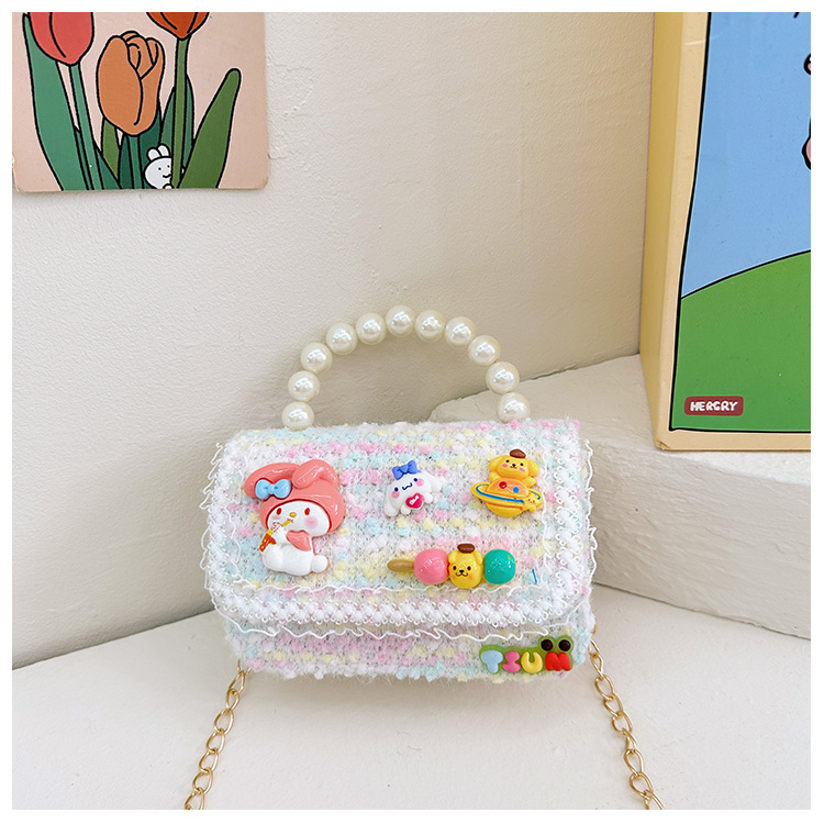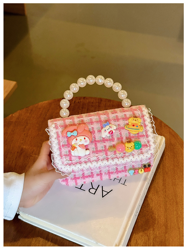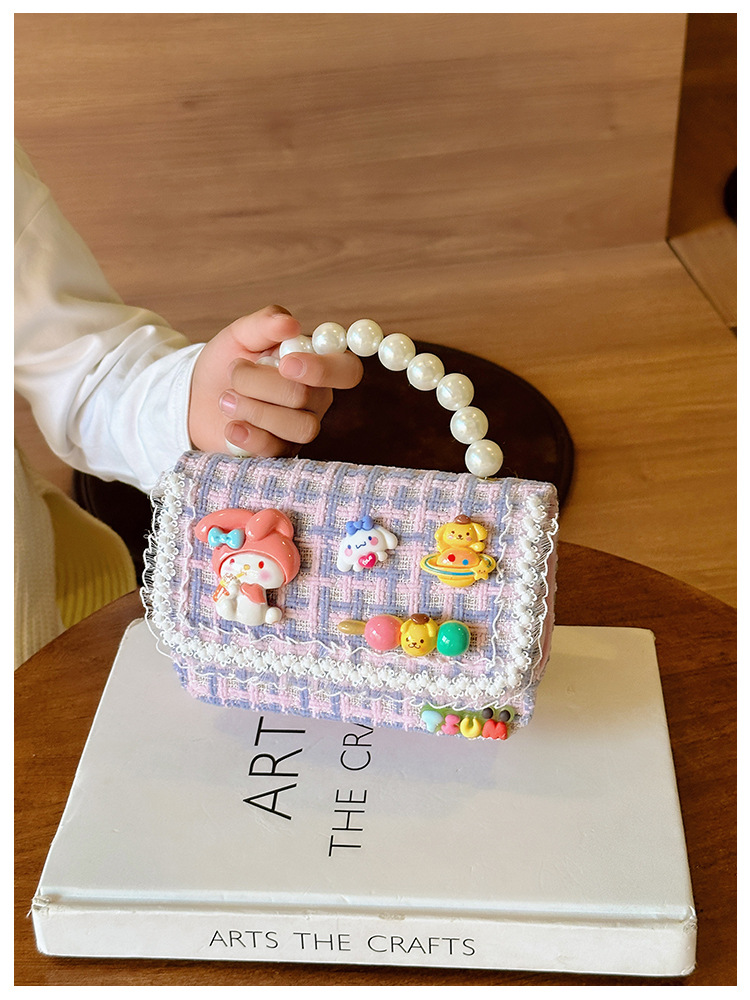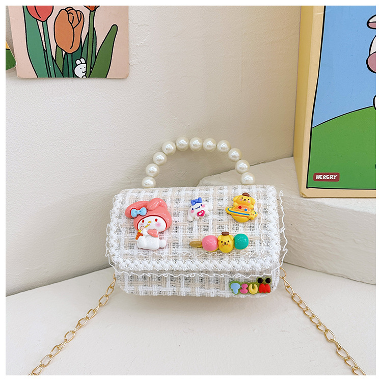 Venta al por mayor Otoño e Invierno estilo occidental niños pequeño bolso cuadrado moda femenina niñas contraste color cadena bolso simple con cuentas