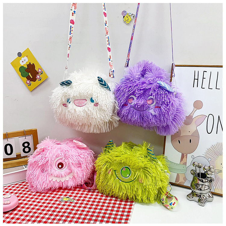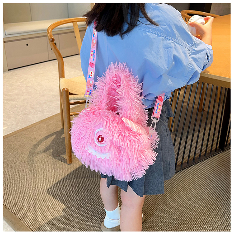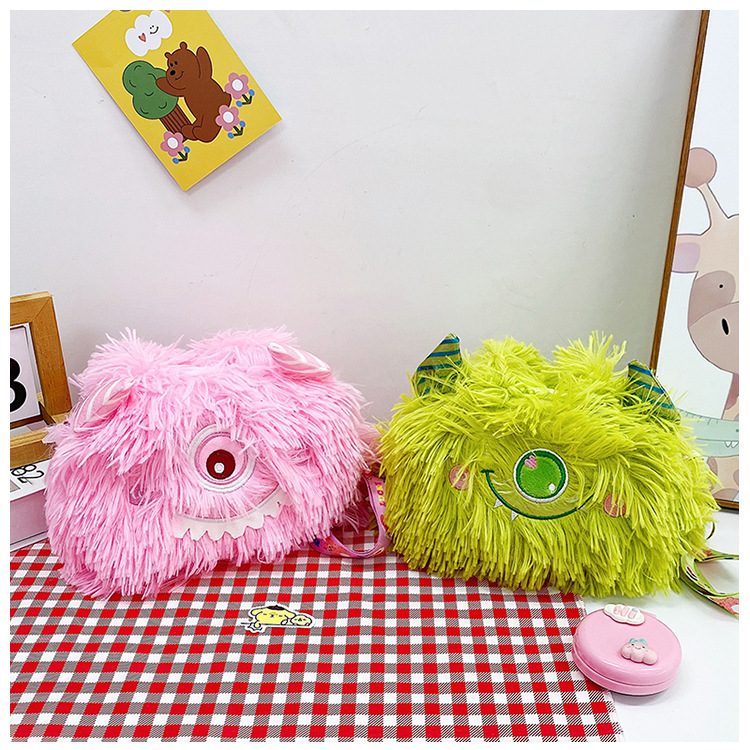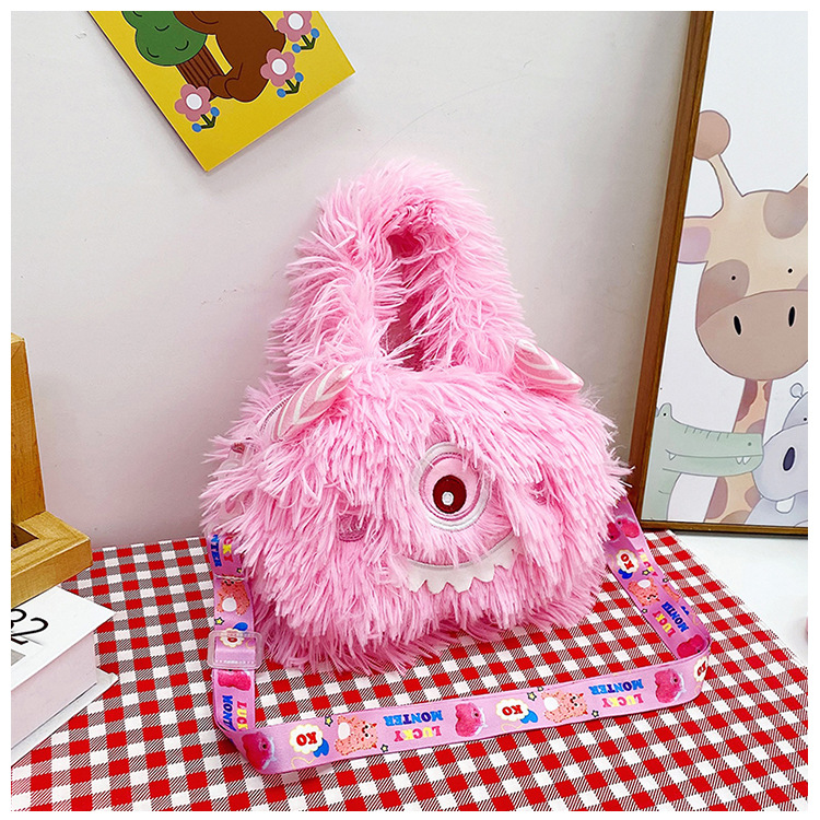Nueva chica Corazón de dibujos animados monstruo bolso lindo Monster de un solo ojo de peluche hombro bolsa de mensajero bolsa de teléfono móvil