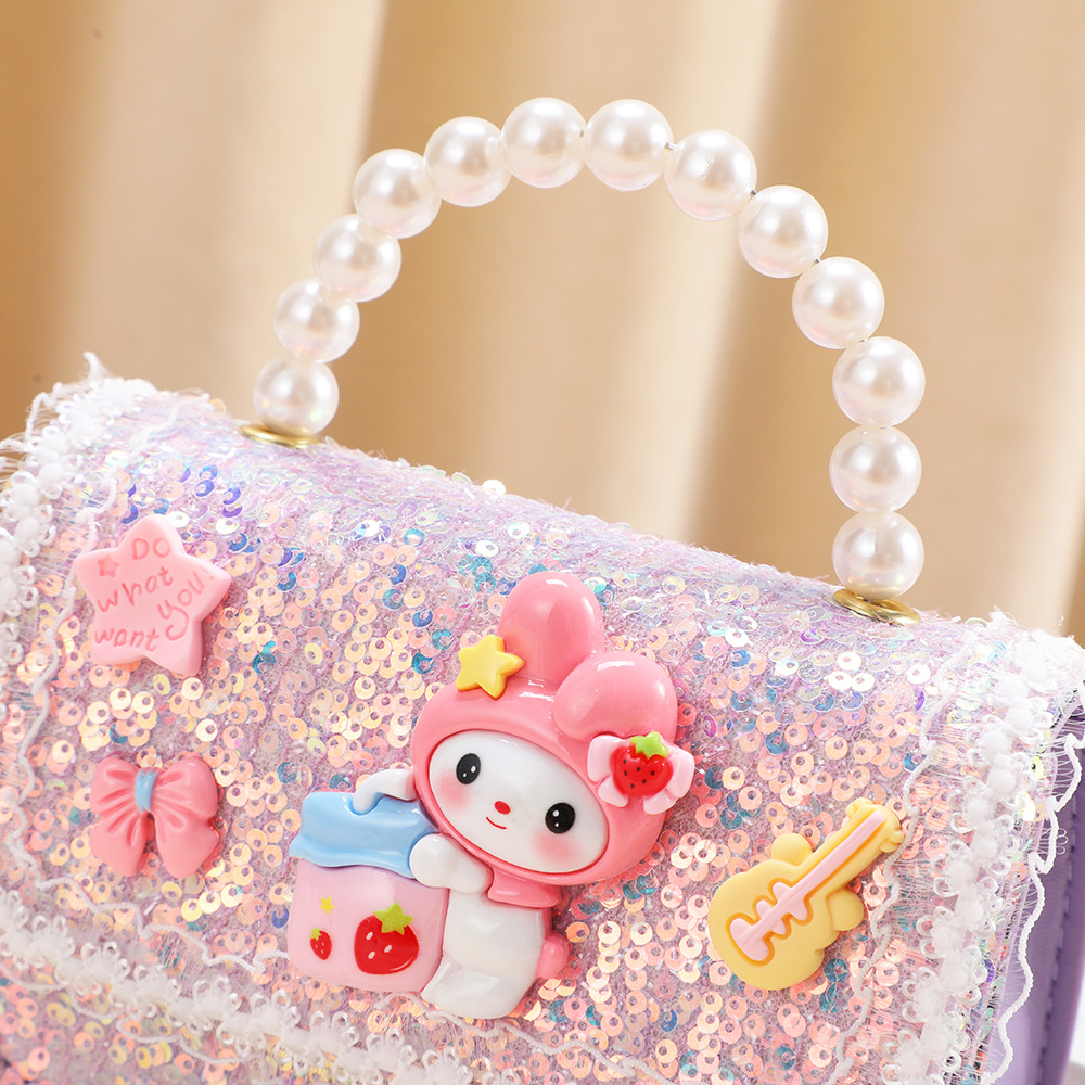 Monedero infantil con lazo, mochila pequeña, bolso bandolera de dibujos animados My Melody para niña, lentejuelas que reducen el peso