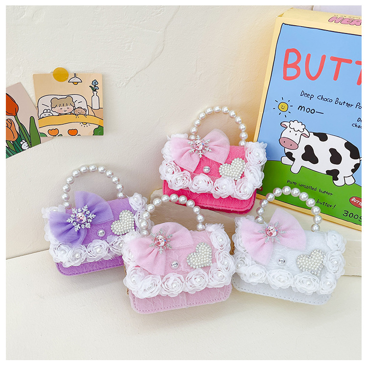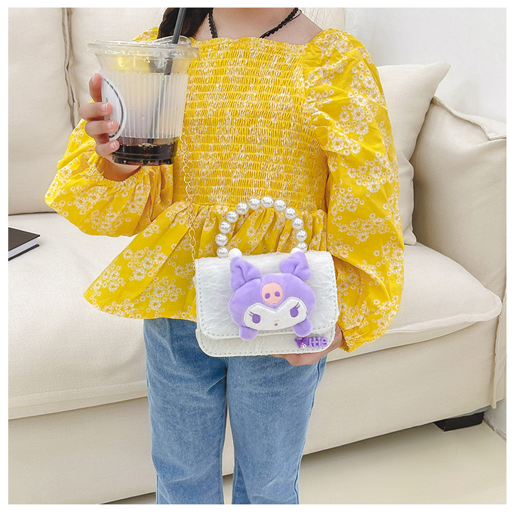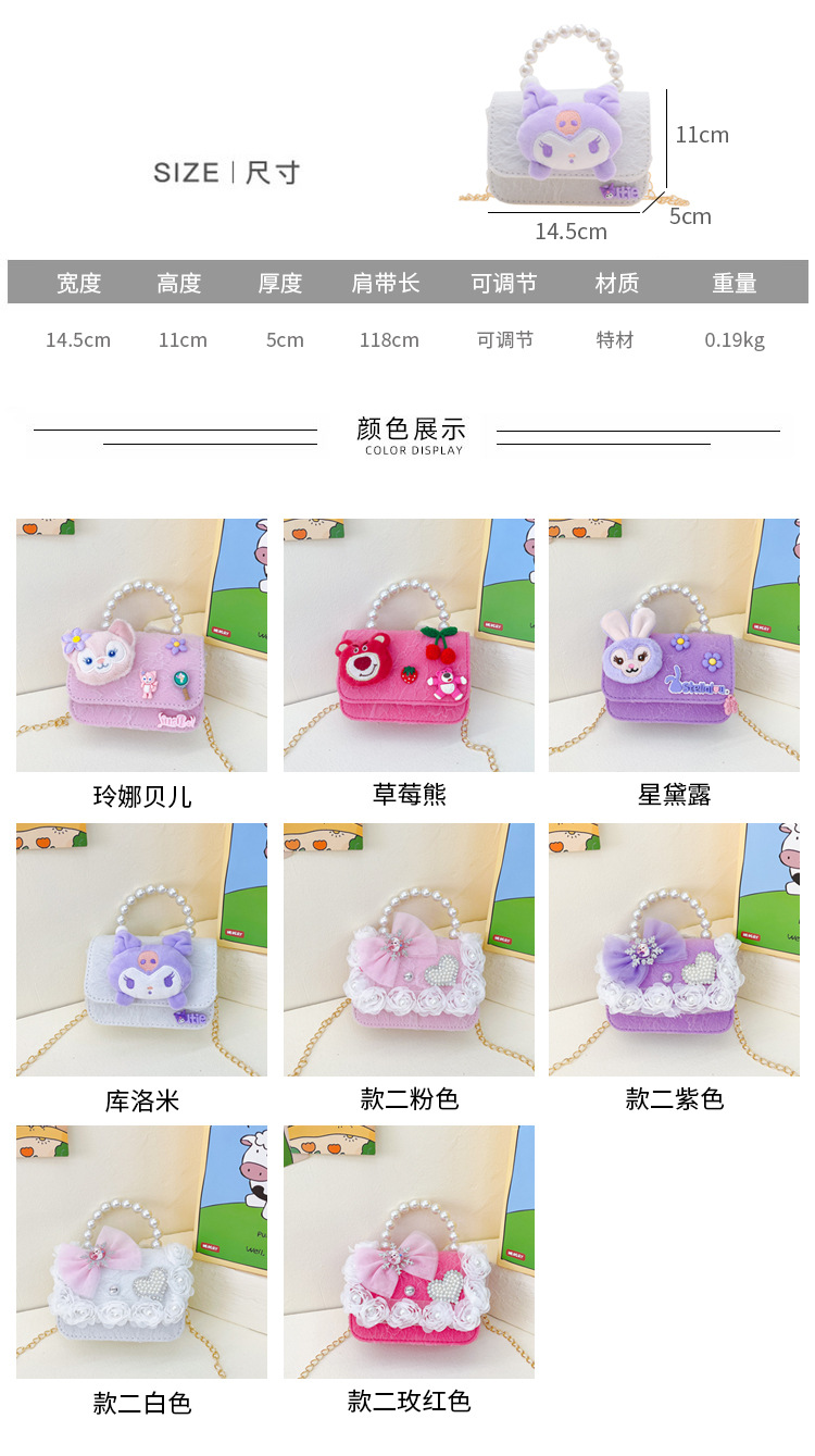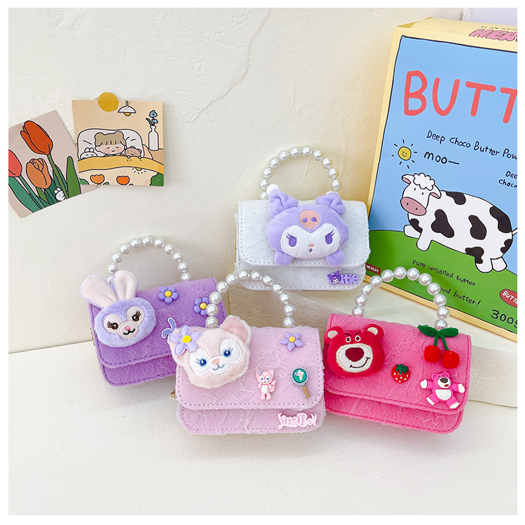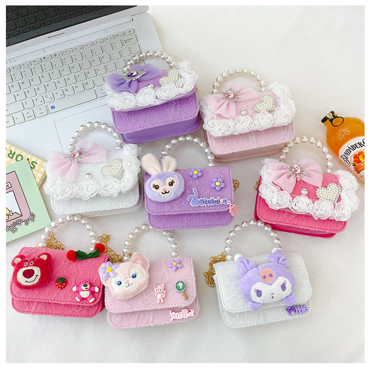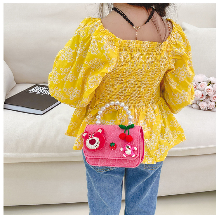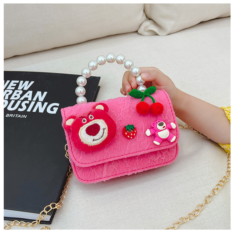 Nuevo en línea rojo perla portátil bolso de los niños lindo suave lindo dibujos animados moda mensajero bolsa niña estilo occidental bolso de hombro