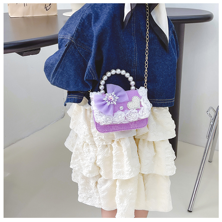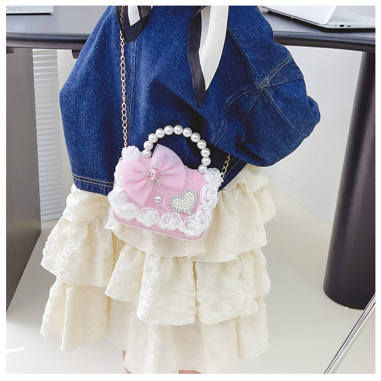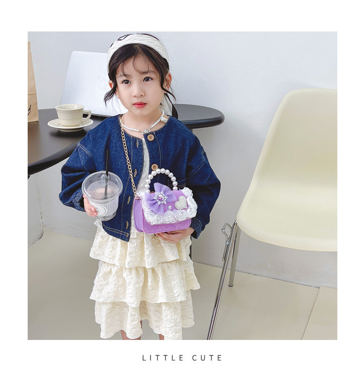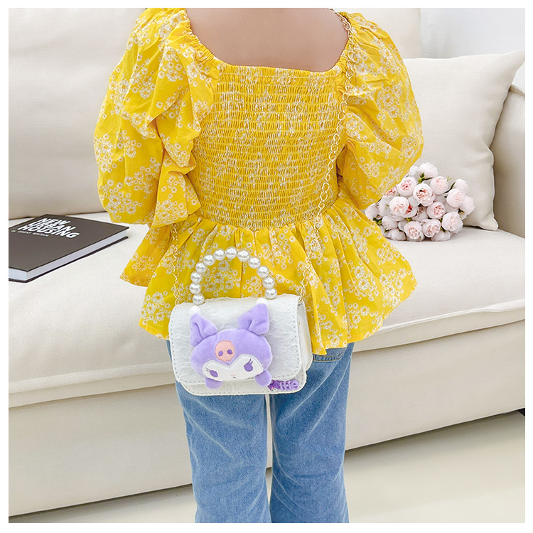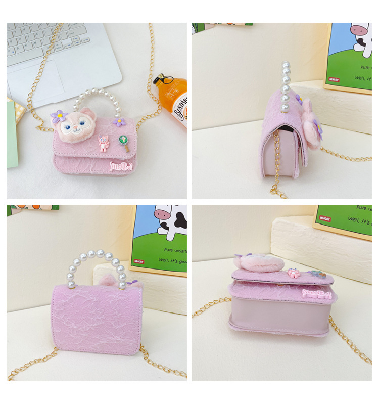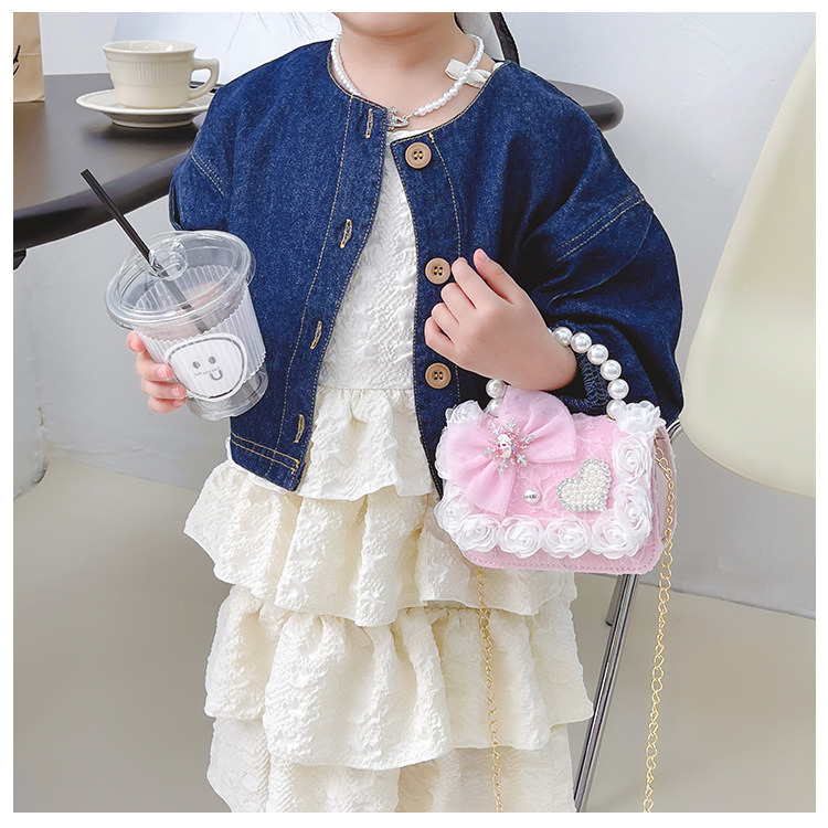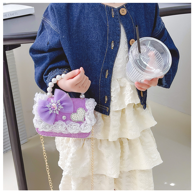 Nuevo en línea rojo perla portátil bolso de los niños lindo suave lindo dibujos animados moda mensajero bolsa niña estilo occidental bolso de hombro