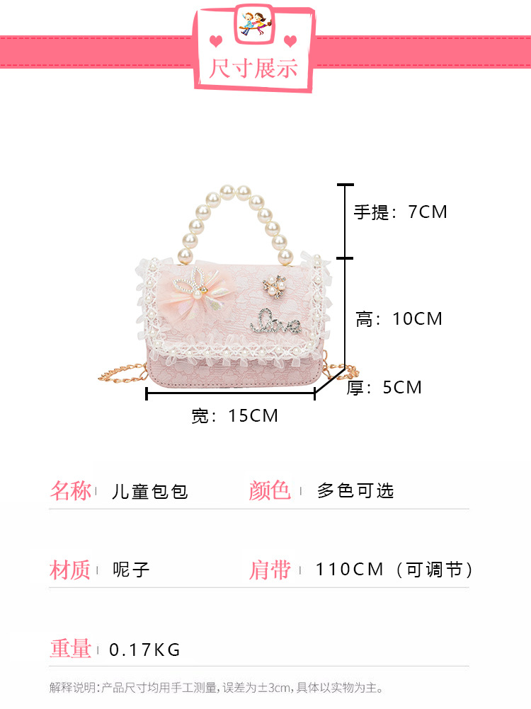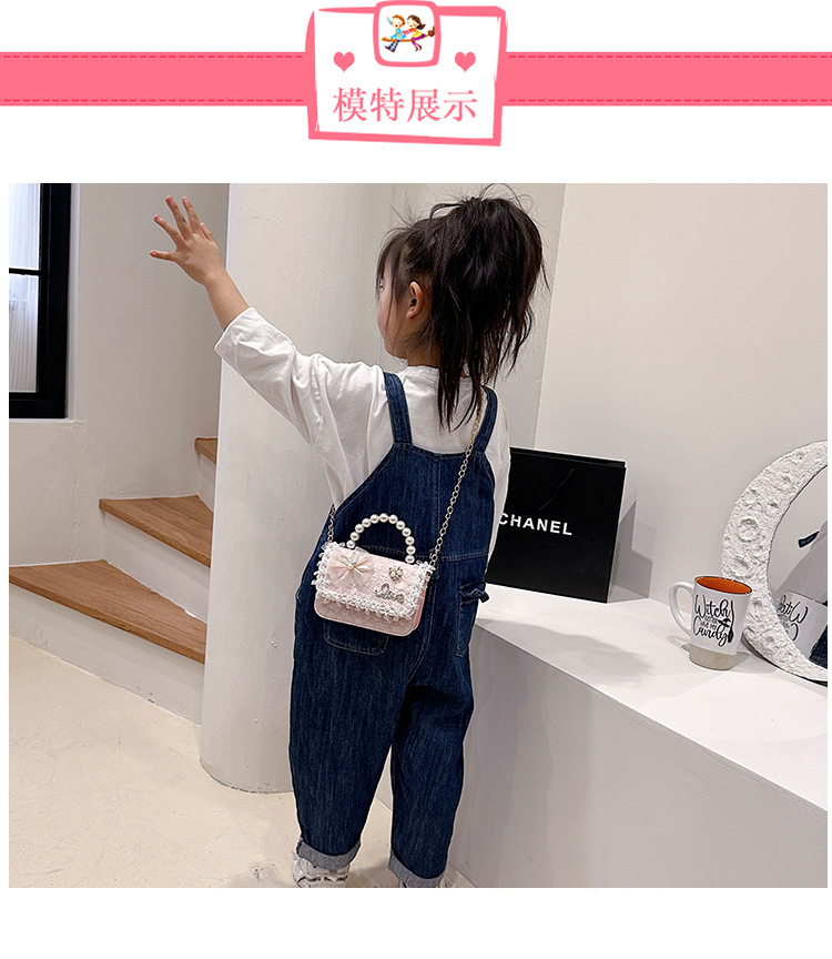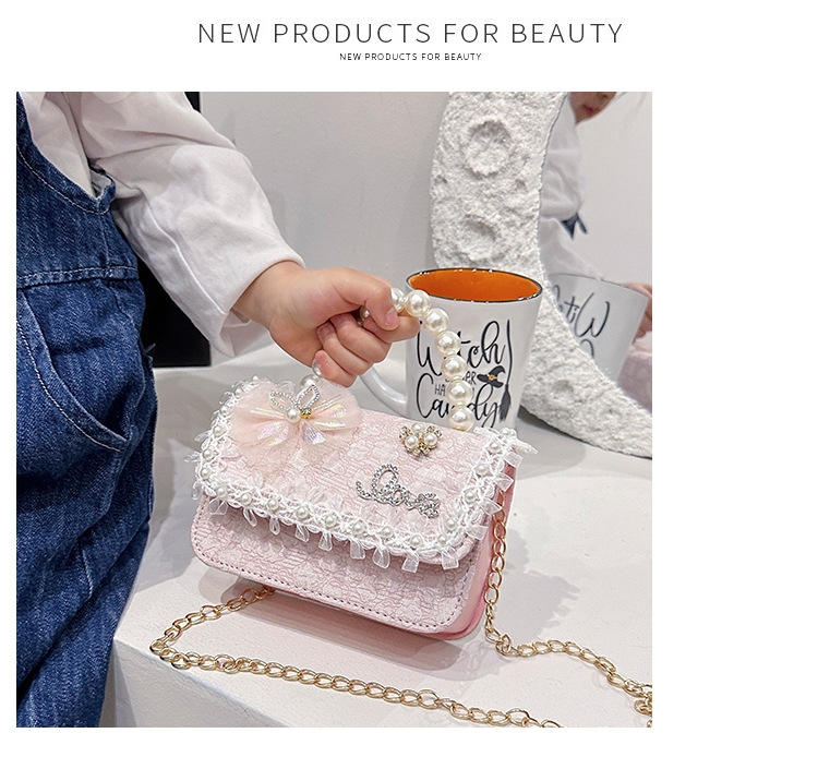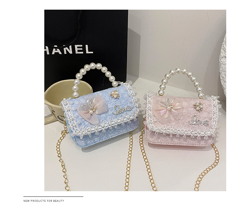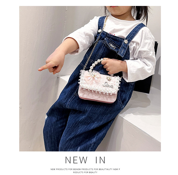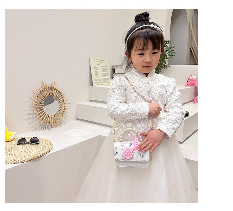 Nuevo tipo de bolso para niños, moda perla portátil, bolso de hombro de la princesa Aisha, estilo extranjero, bolso de hombro para niñas lindas