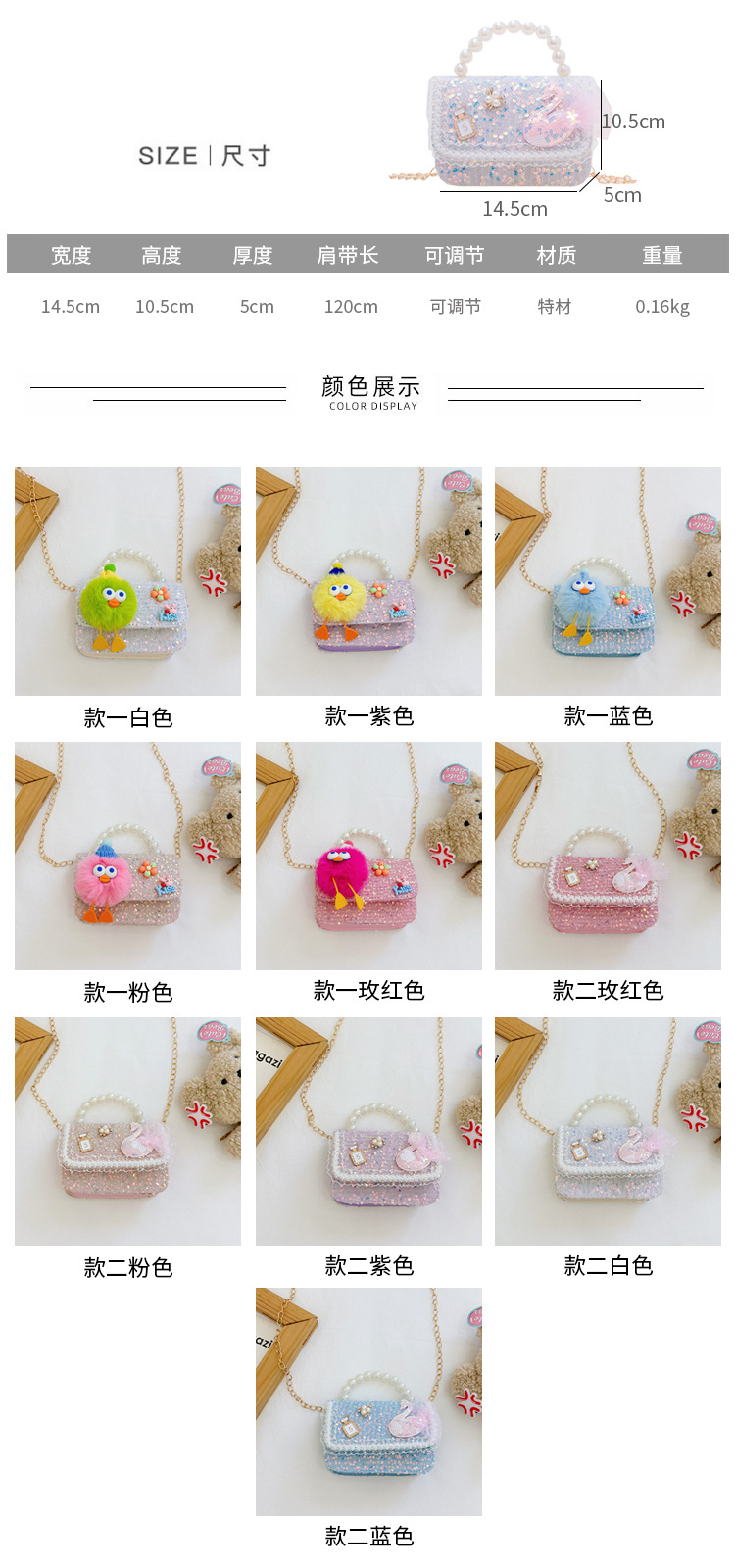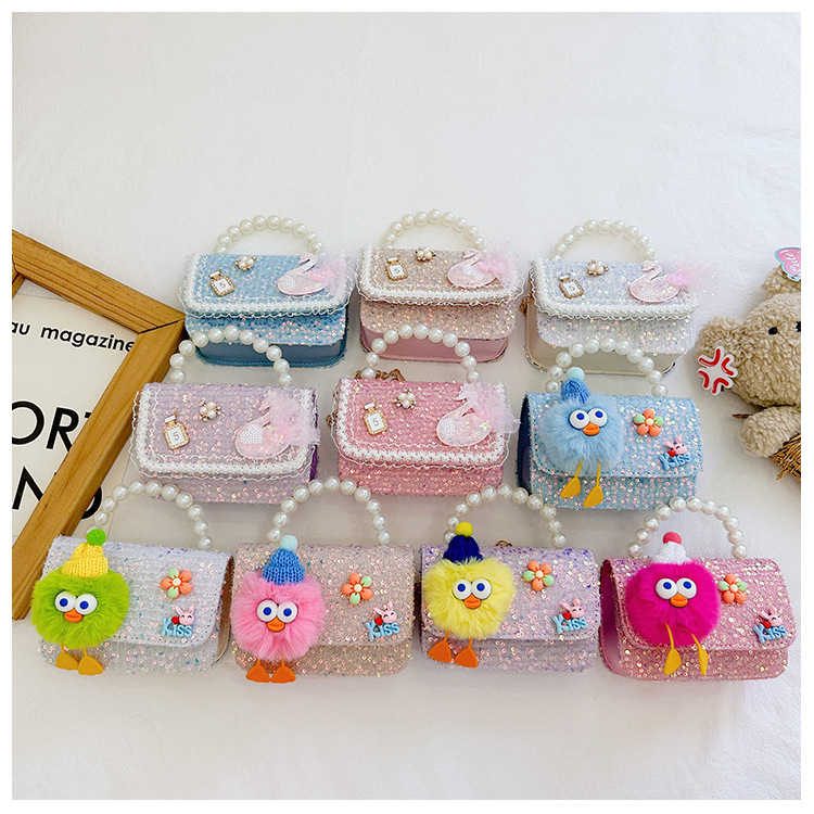Nuevo estilo occidental de los niños bolsa de estilo de dibujos animados de las muchachas bolsa de mensajero estilo coreano perla bolso niñas monedero