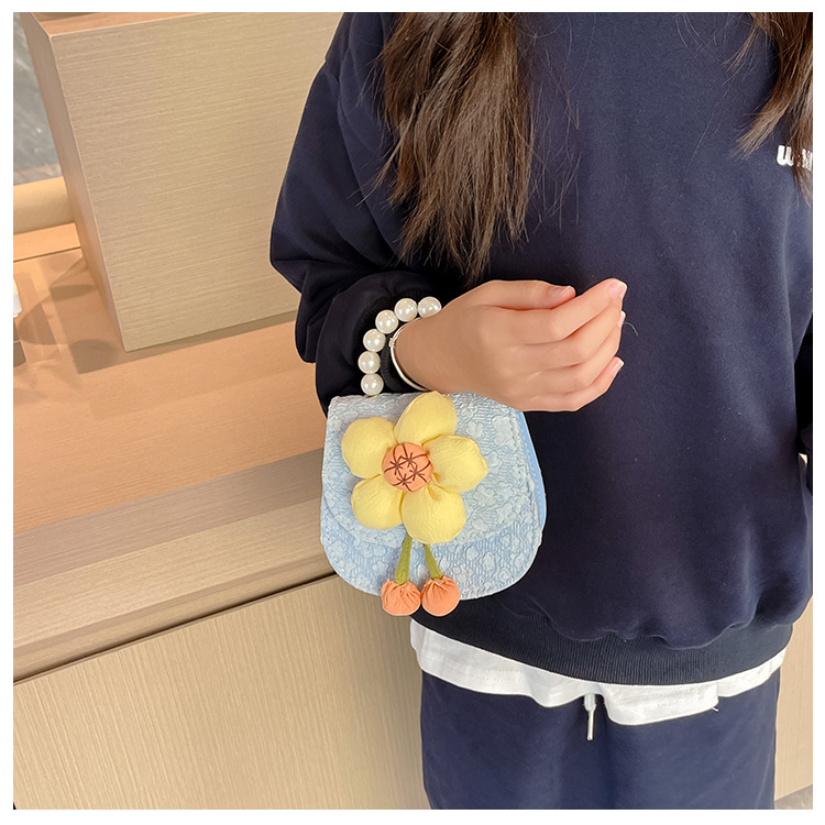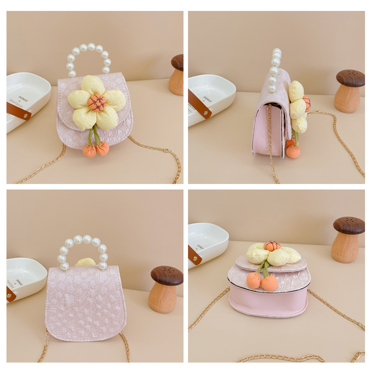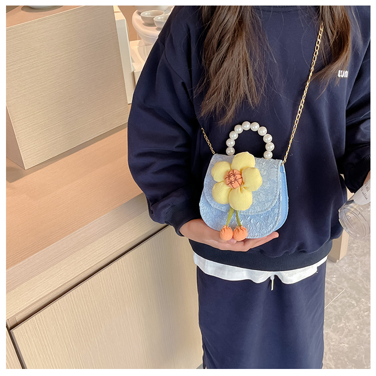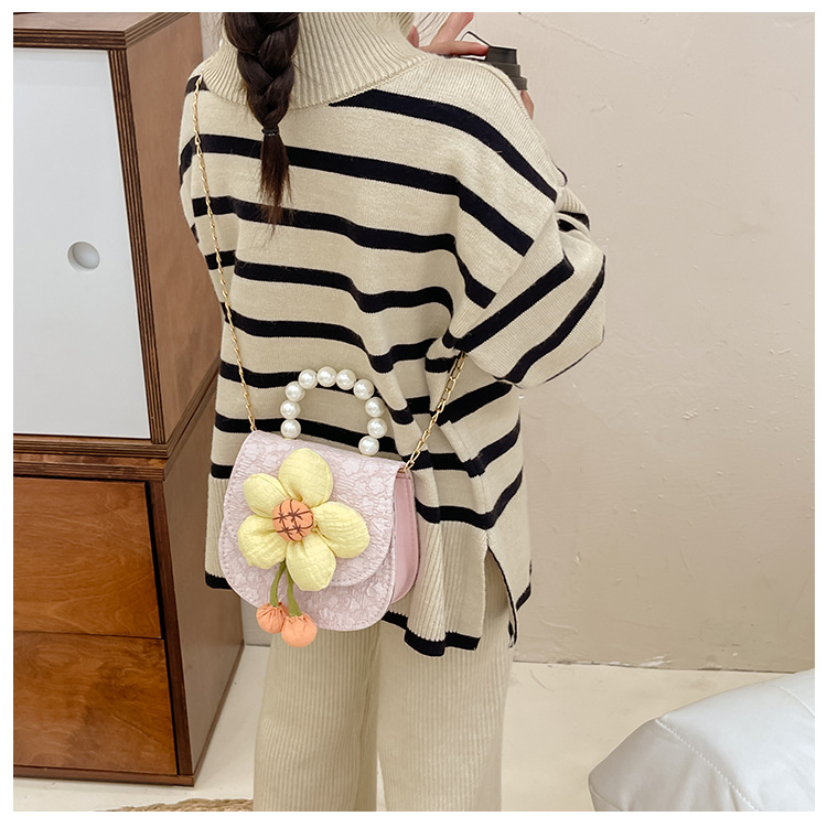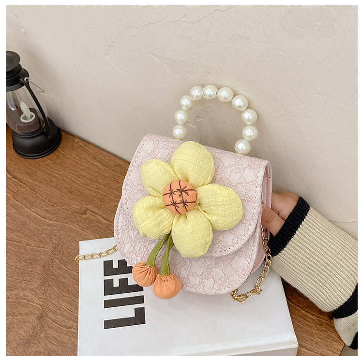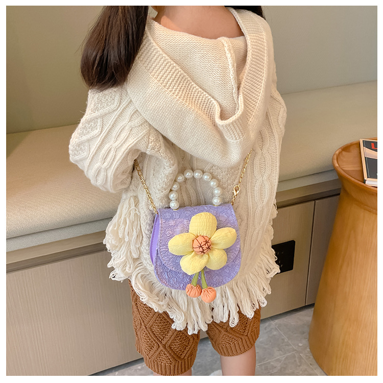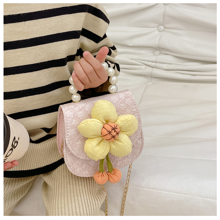 2023 nuevos niños de moda estilo occidental girasol perla bolso niña princesa hombro Messenger bolsa monedero