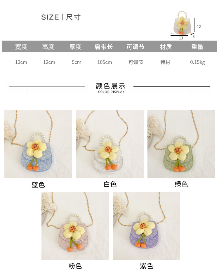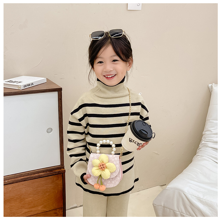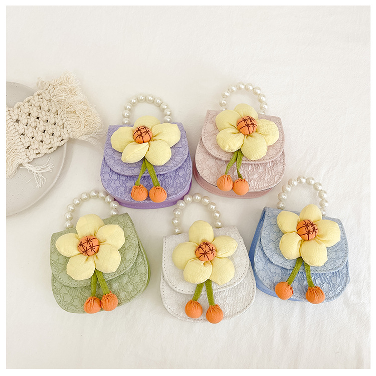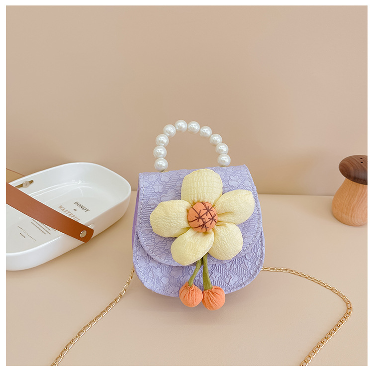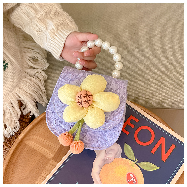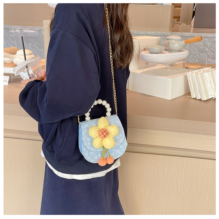 2023 nuevos niños de moda estilo occidental girasol perla bolso niña princesa hombro Messenger bolsa monedero