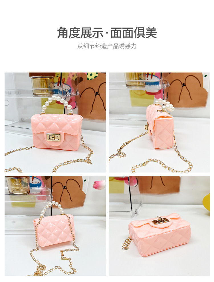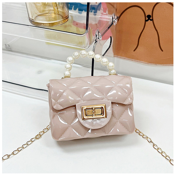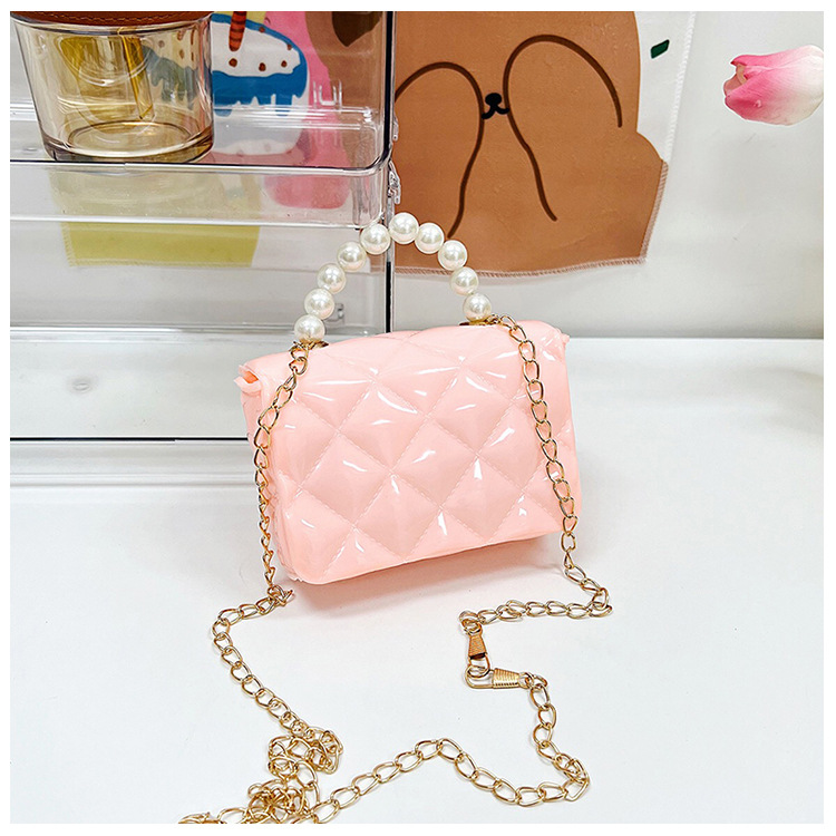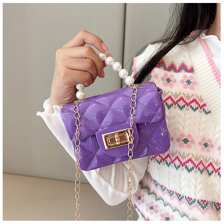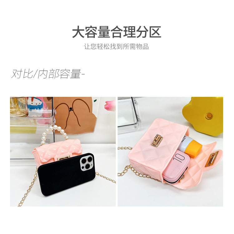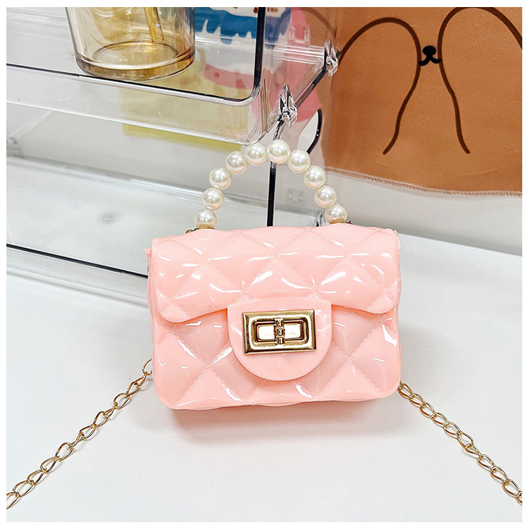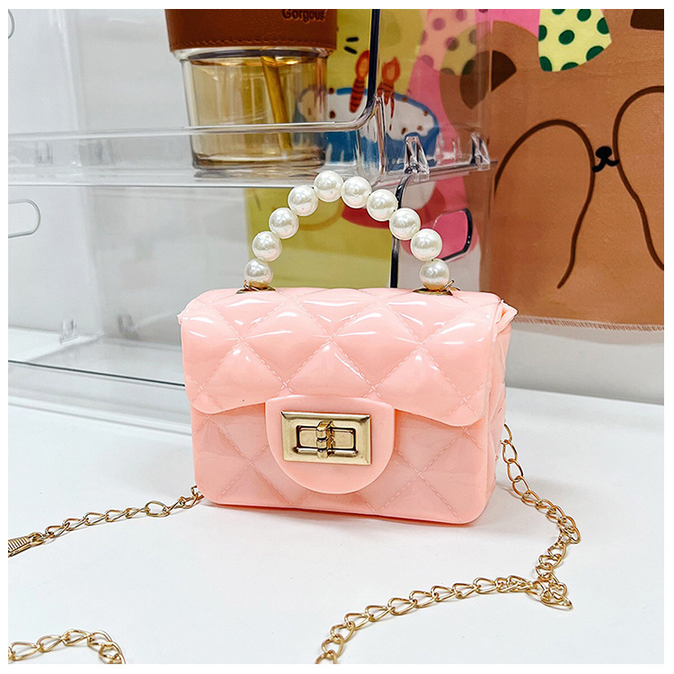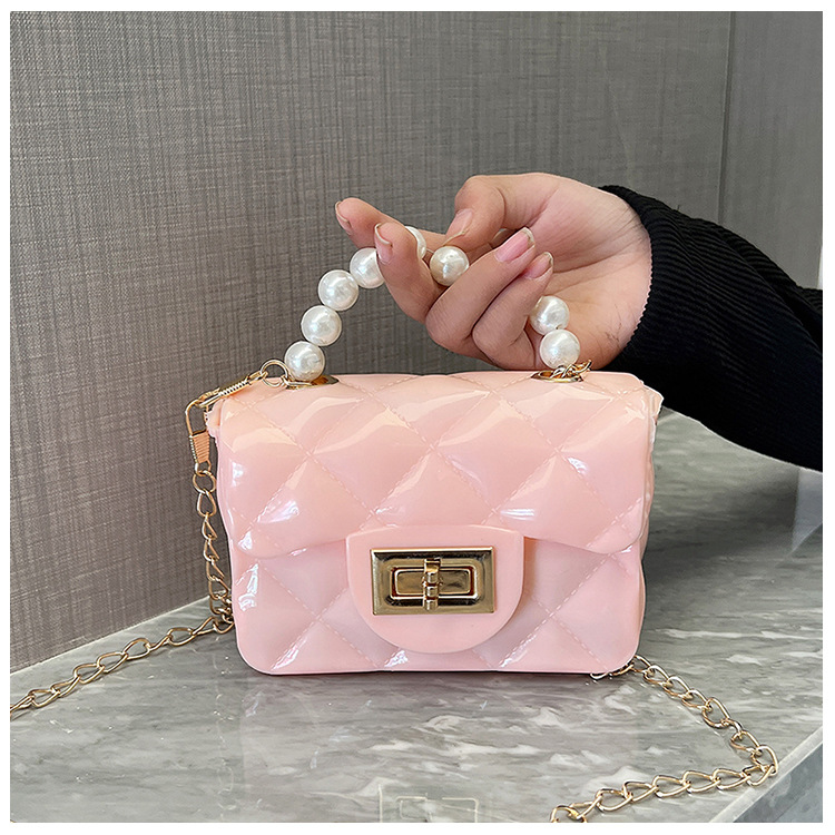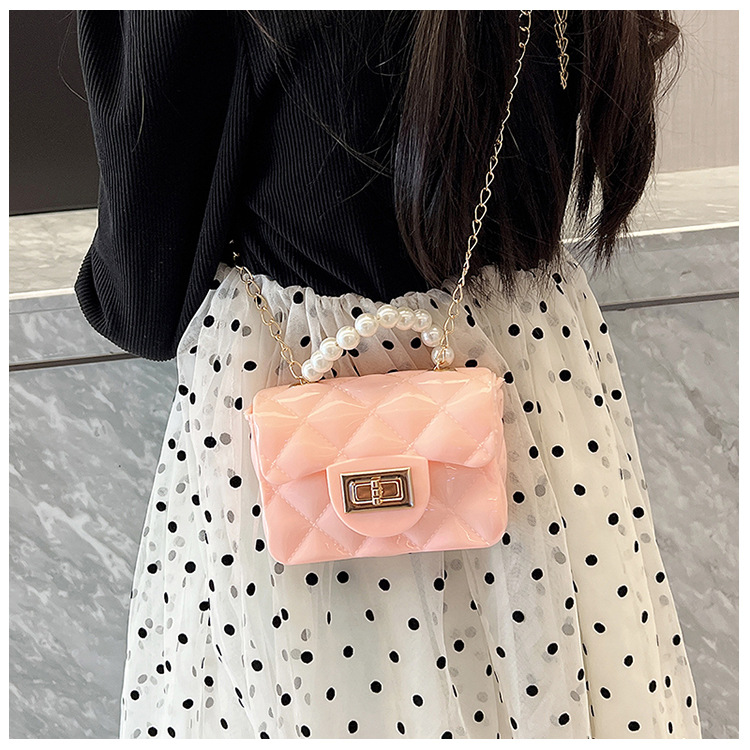 Bolso de los niños 2023 nuevo mini bolso de La jalea rombo estilo occidental pequeña bolsita Perla hombro crossbody bolsa de la cadena portátil
