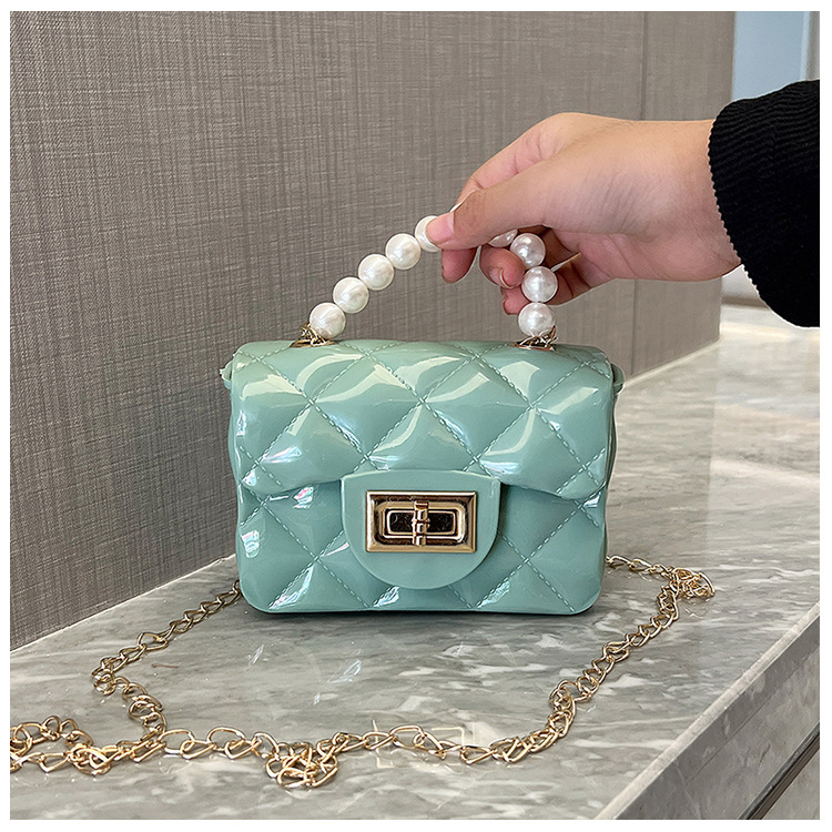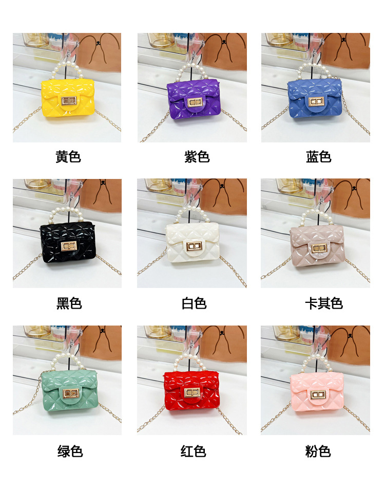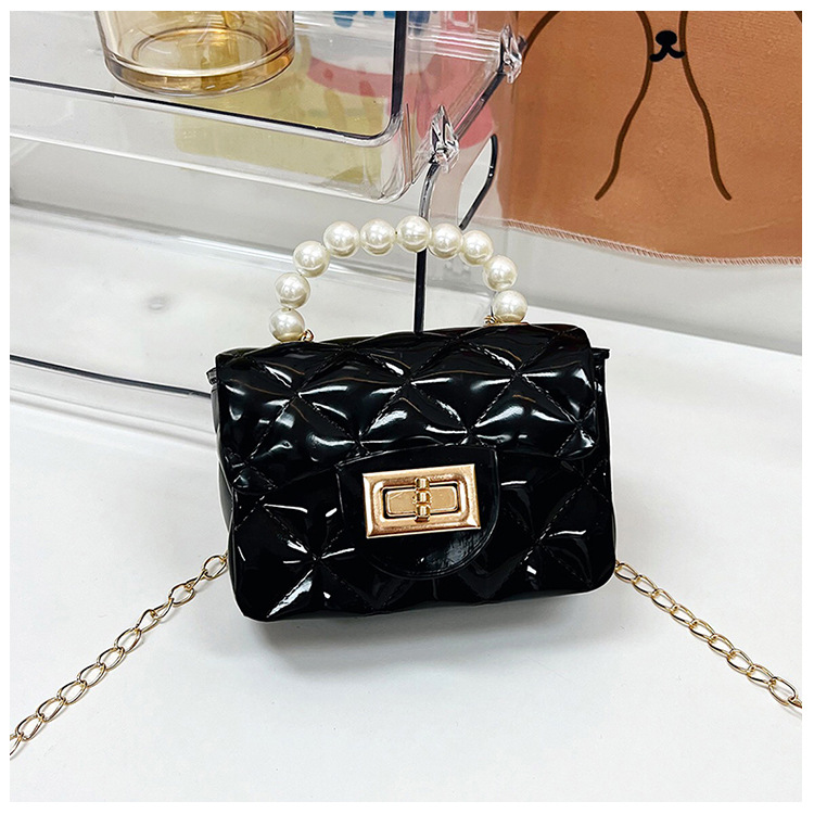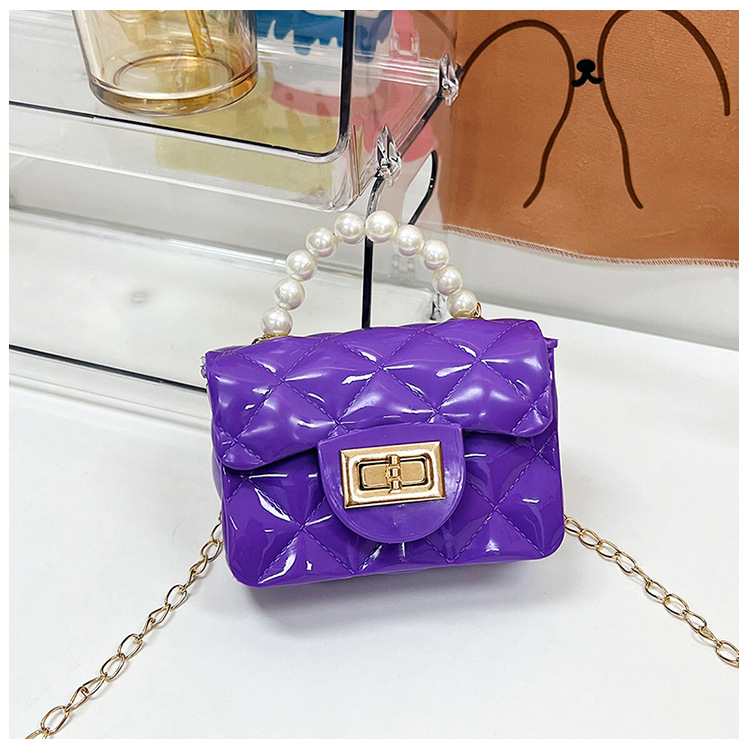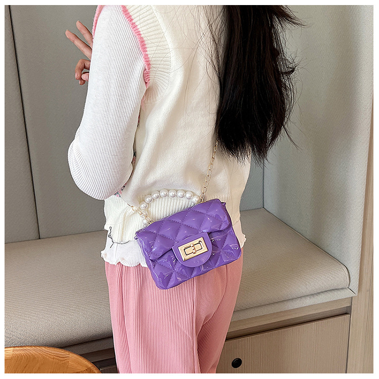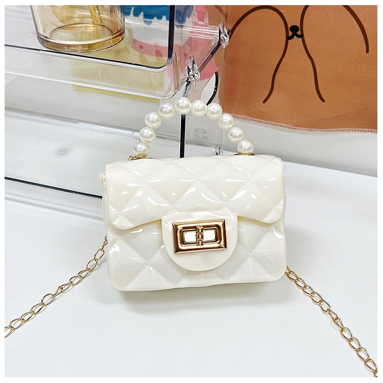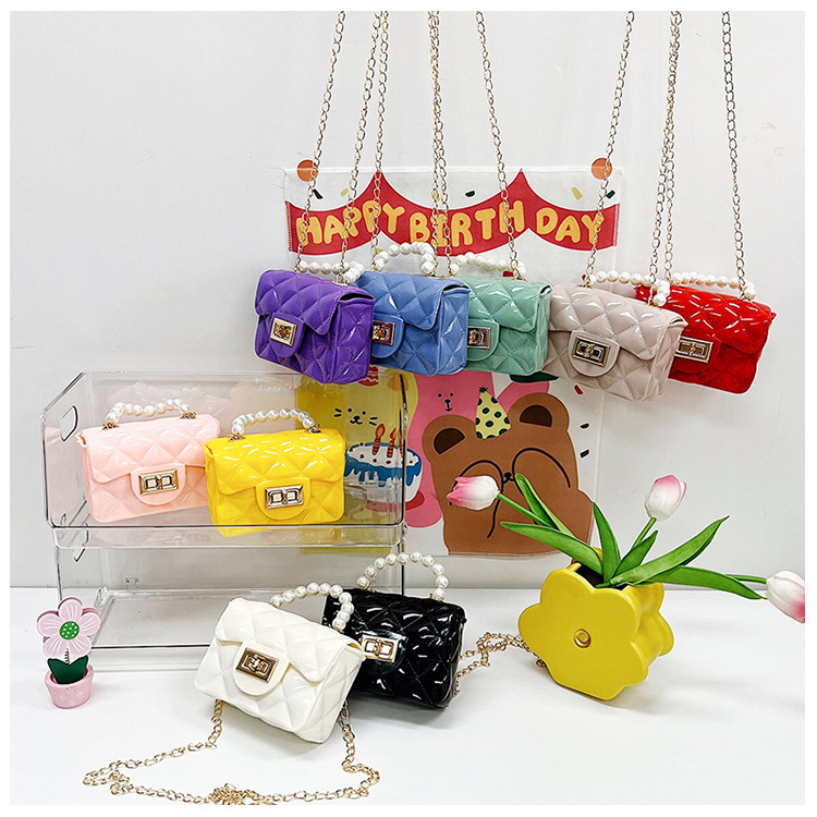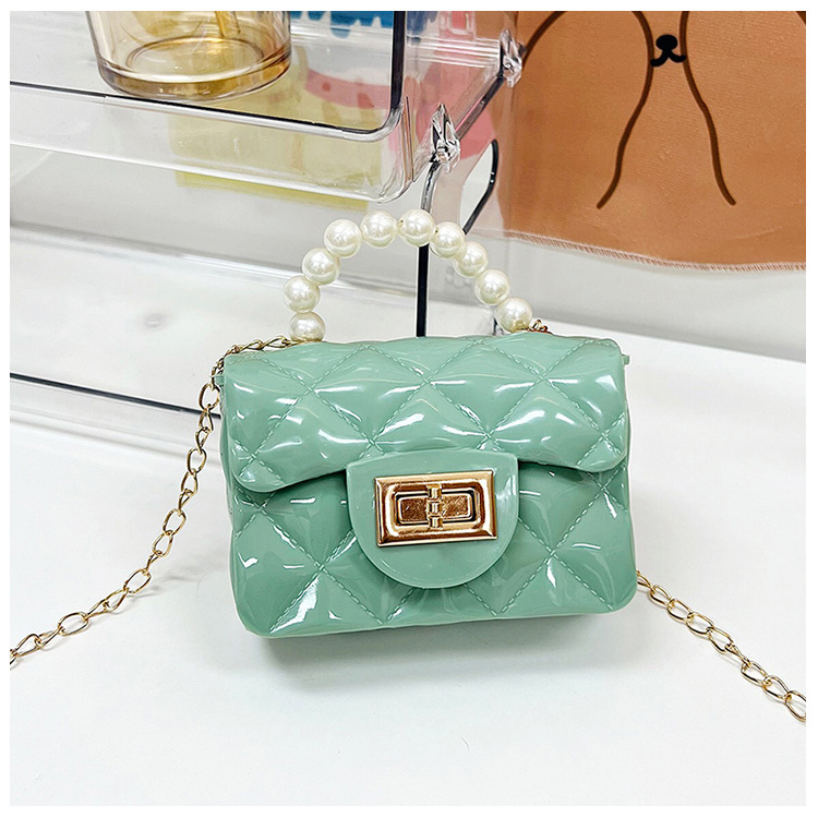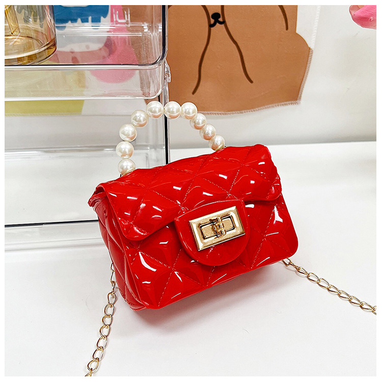 Bolso de los niños 2023 nuevo mini bolso de La jalea rombo estilo occidental pequeña bolsita Perla hombro crossbody bolsa de la cadena portátil
