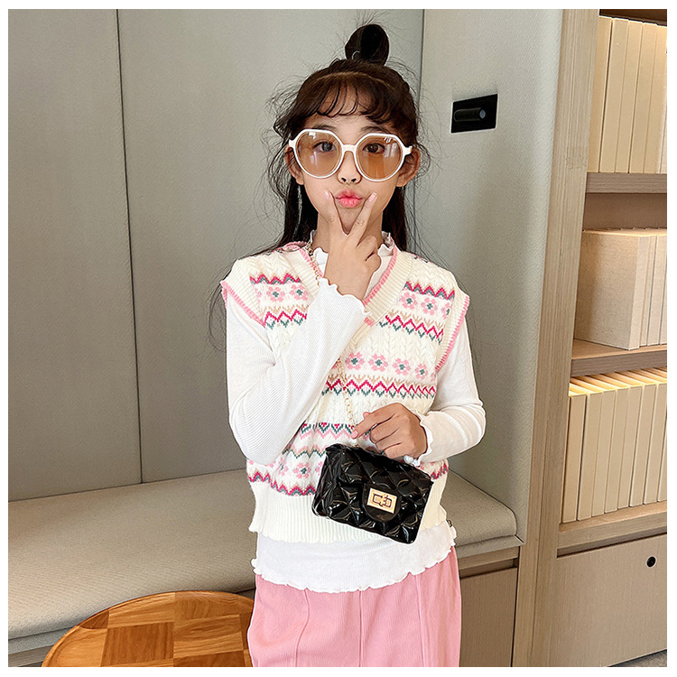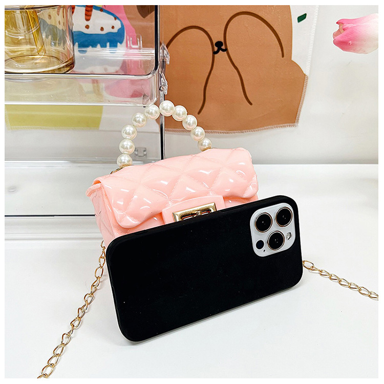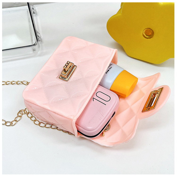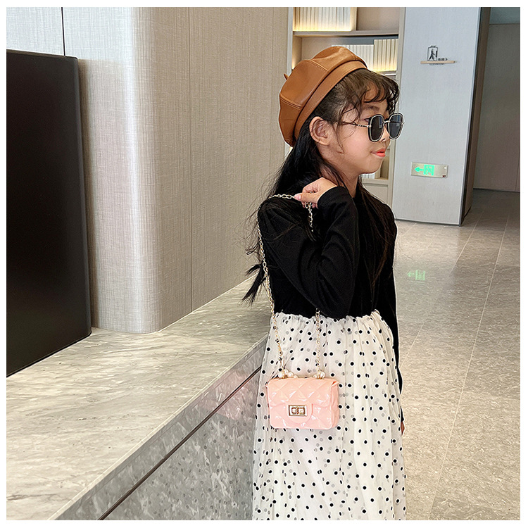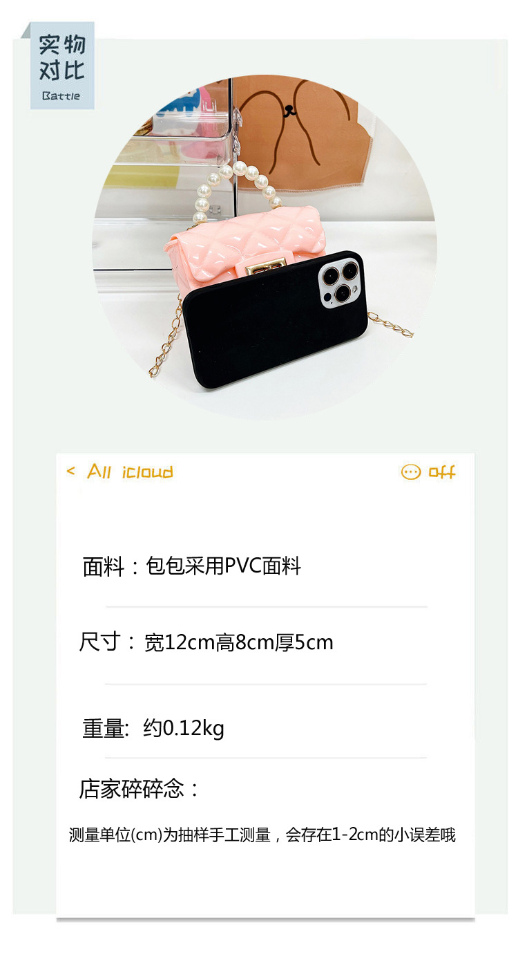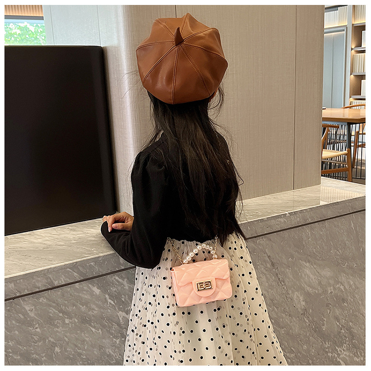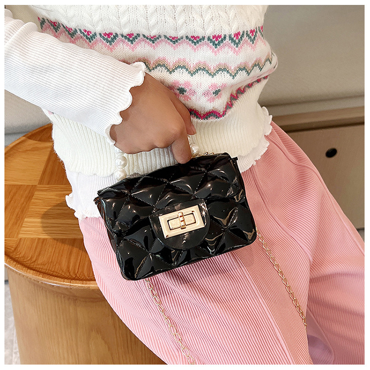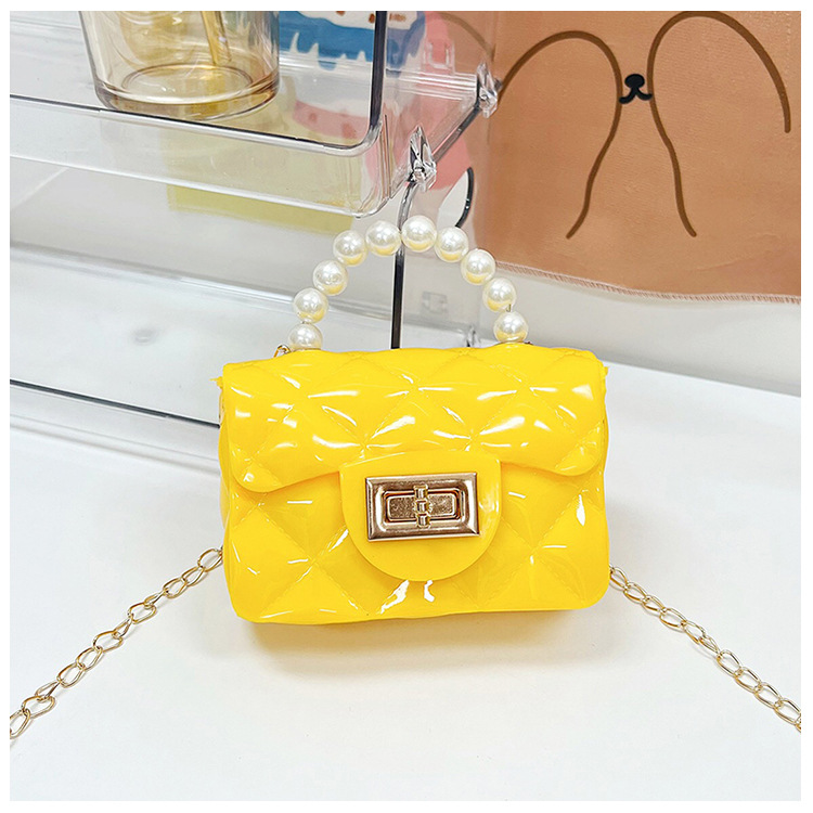 Bolso de los niños 2023 nuevo mini bolso de La jalea rombo estilo occidental pequeña bolsita Perla hombro crossbody bolsa de la cadena portátil