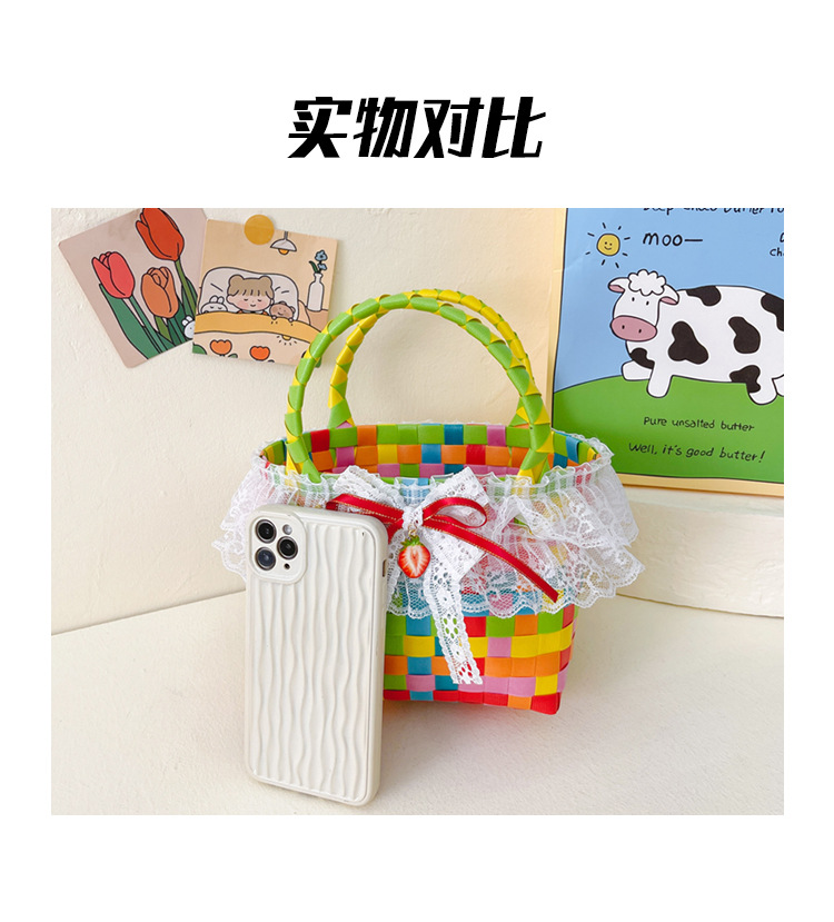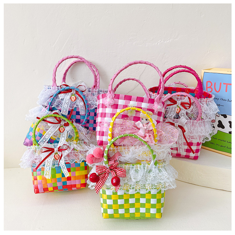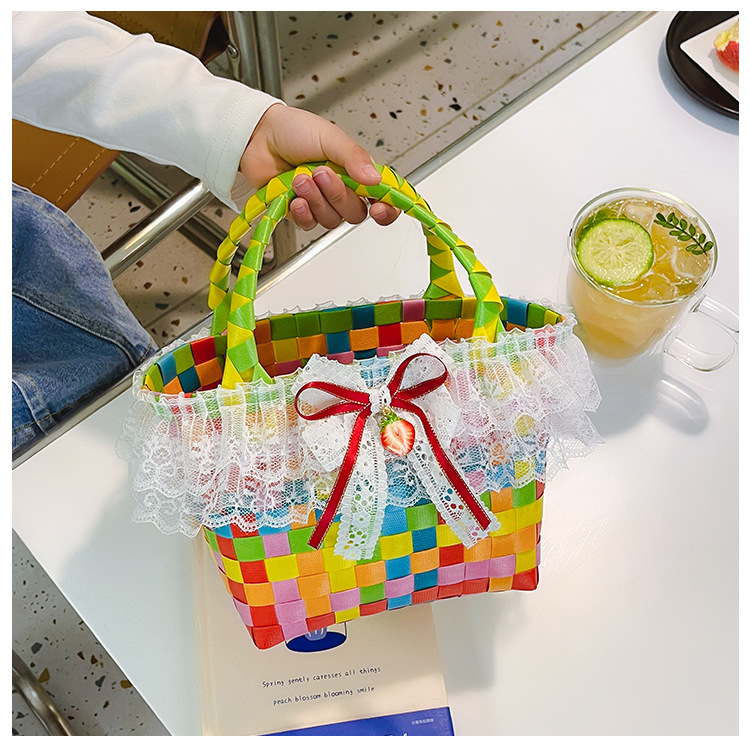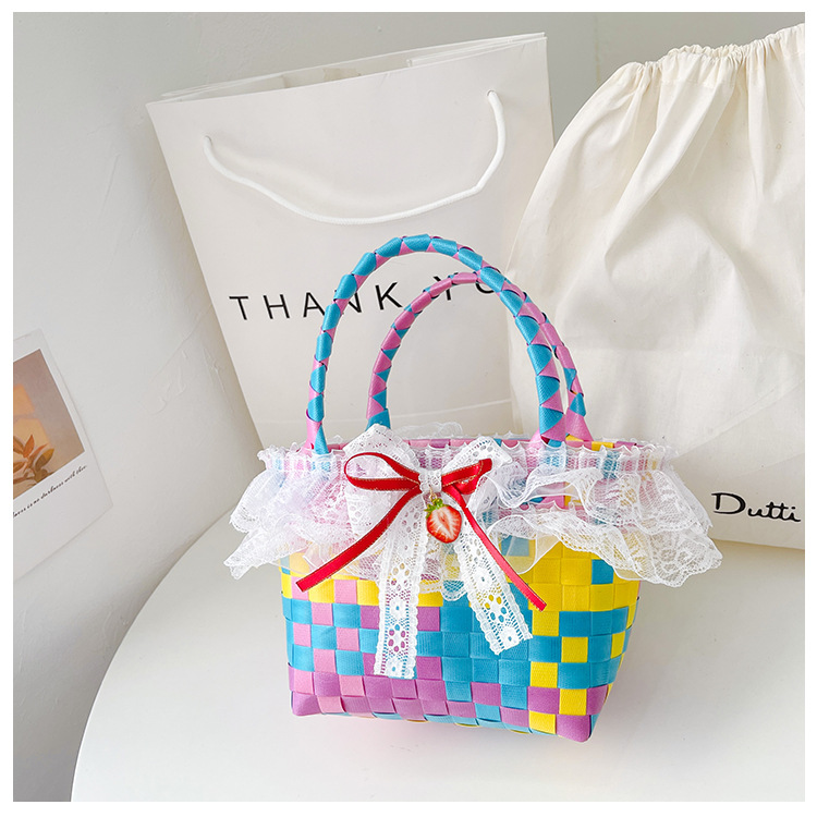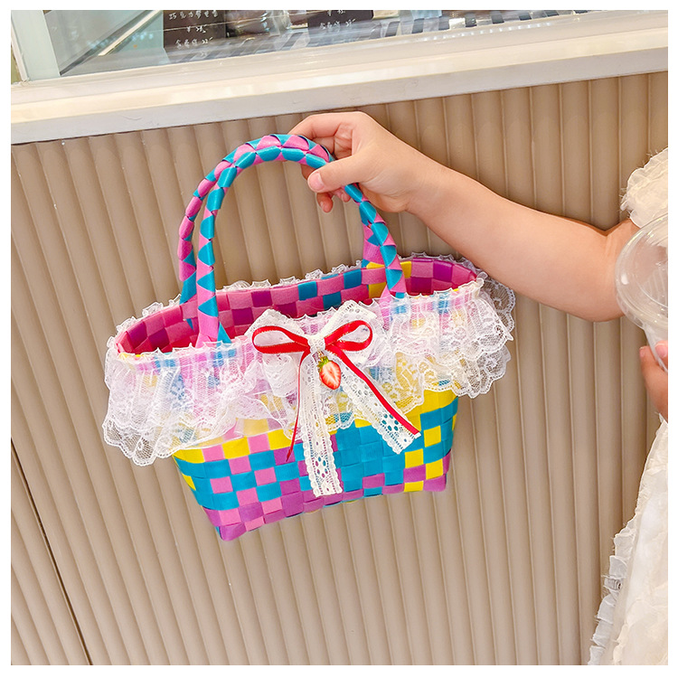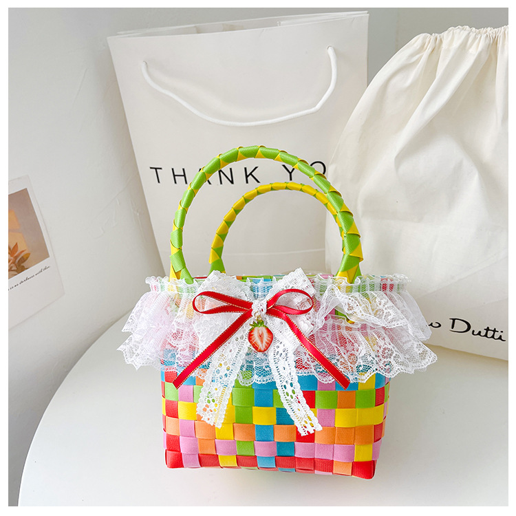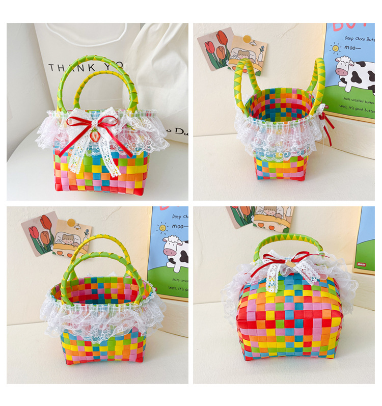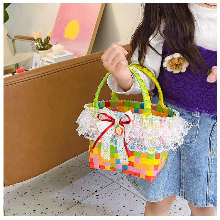 Al por mayor pastoral cesta de verduras niña los niños dibujos animados conejo fresco color tejido bolso la muchacha