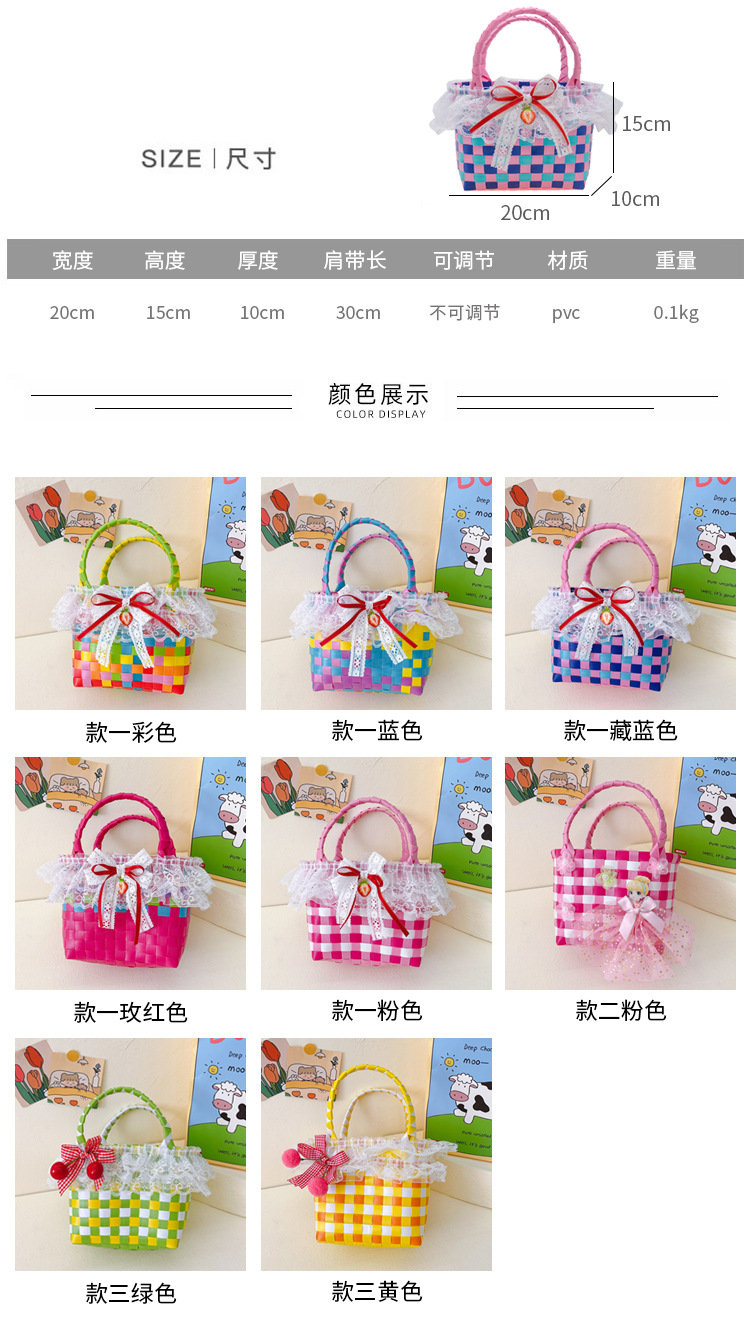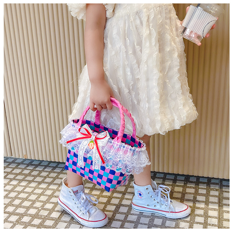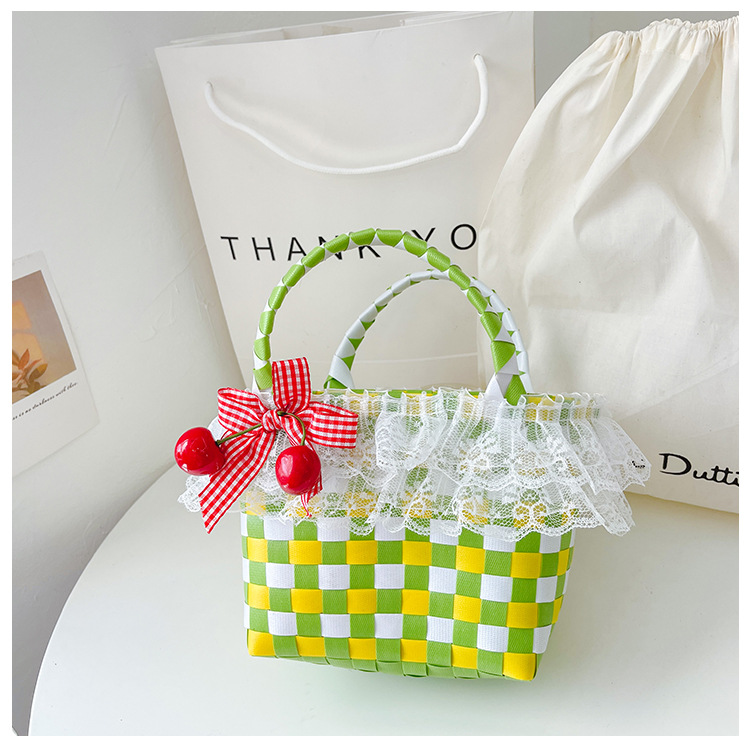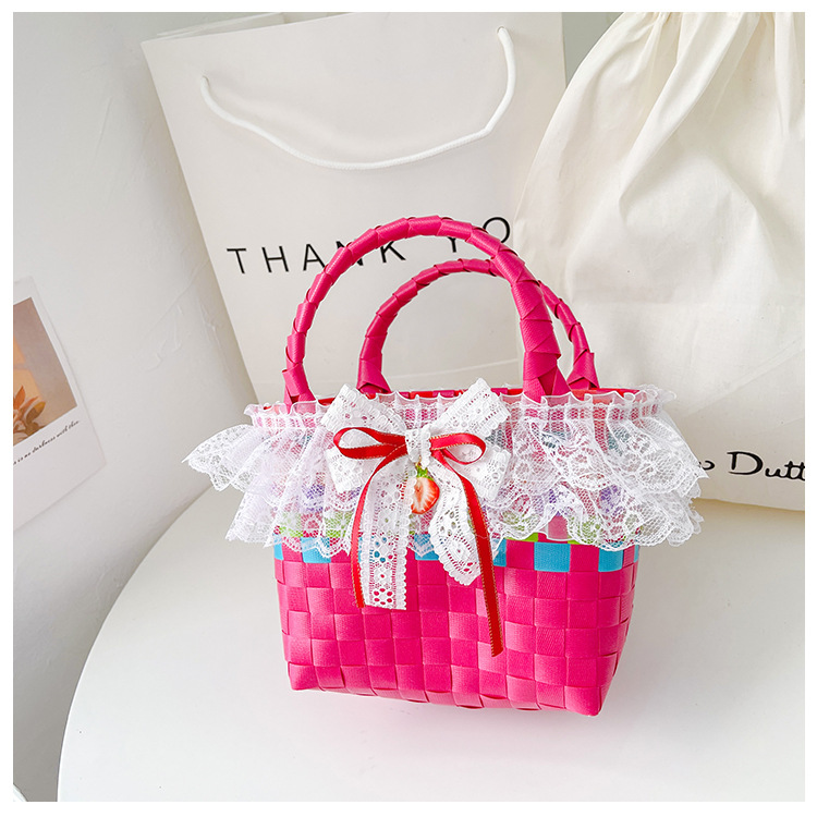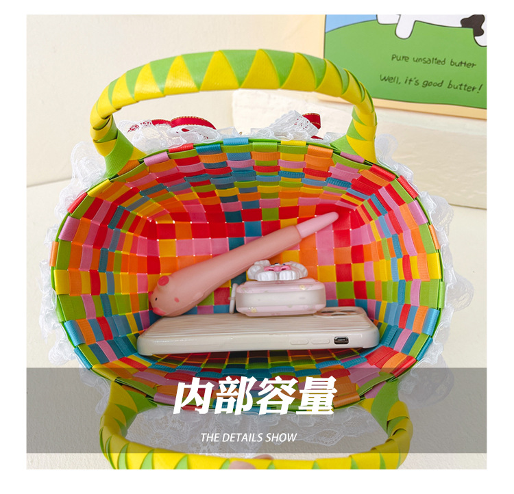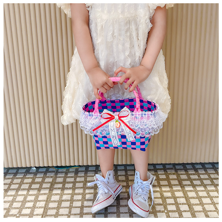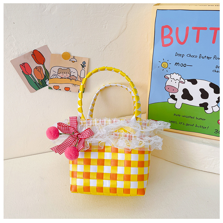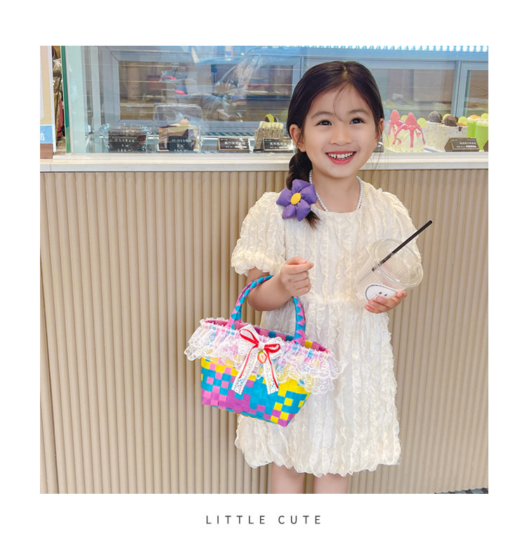 Al por mayor pastoral cesta de verduras niña los niños dibujos animados conejo fresco color tejido bolso la muchacha