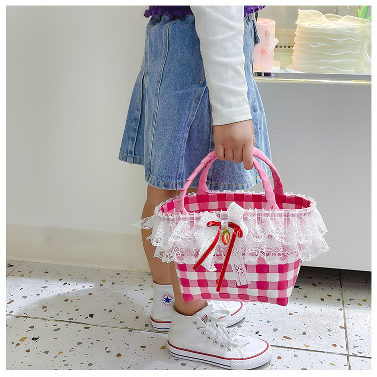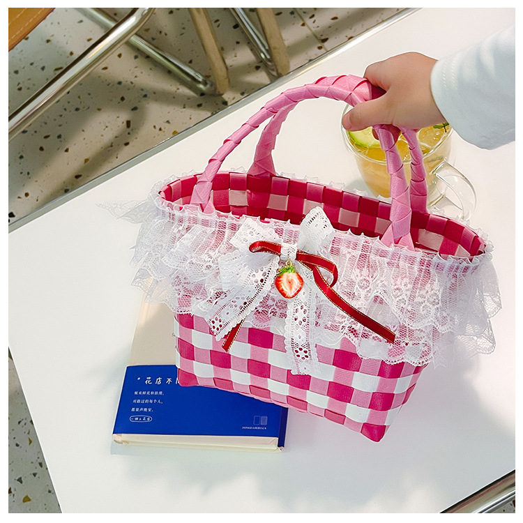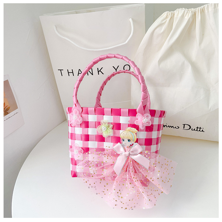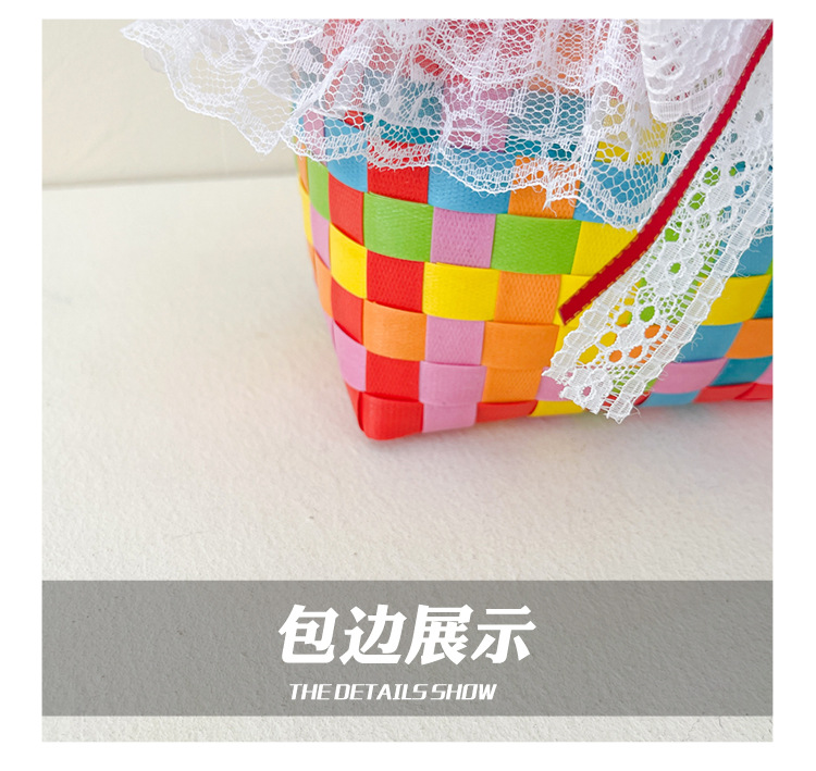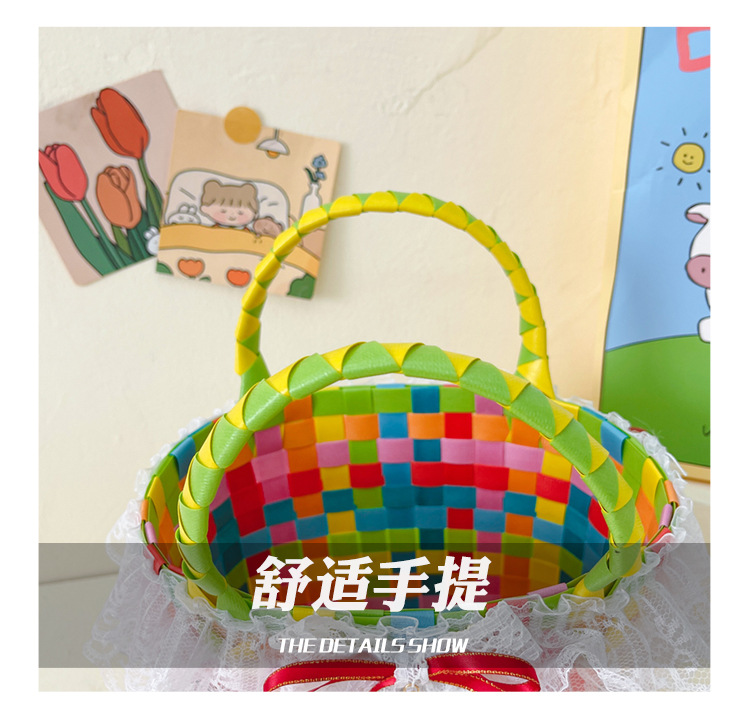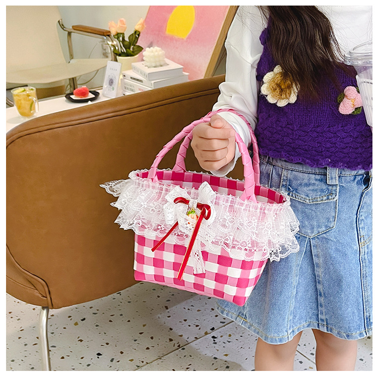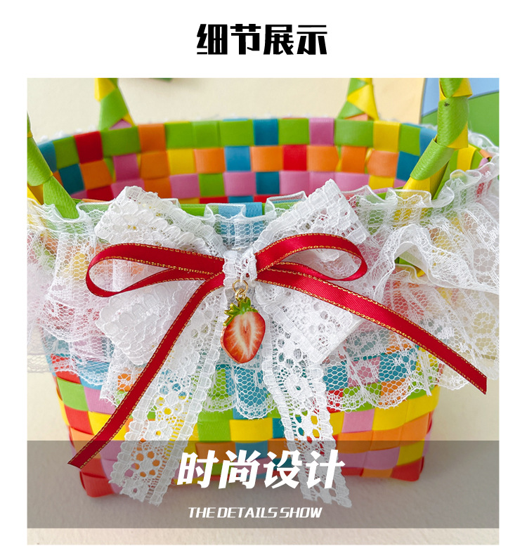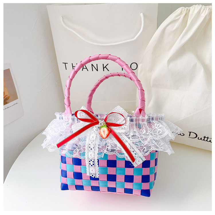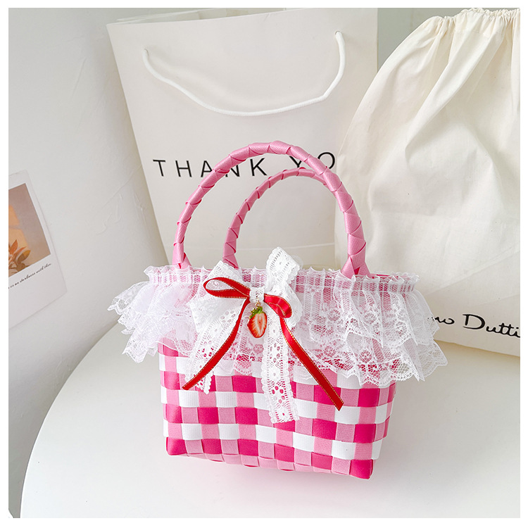 Al por mayor pastoral cesta de verduras niña los niños dibujos animados conejo fresco color tejido bolso la muchacha