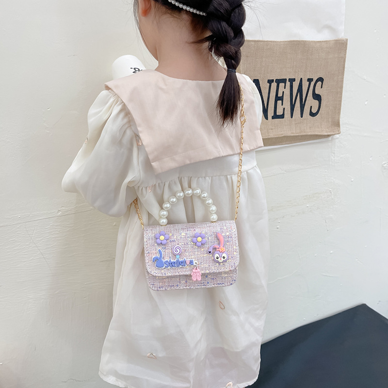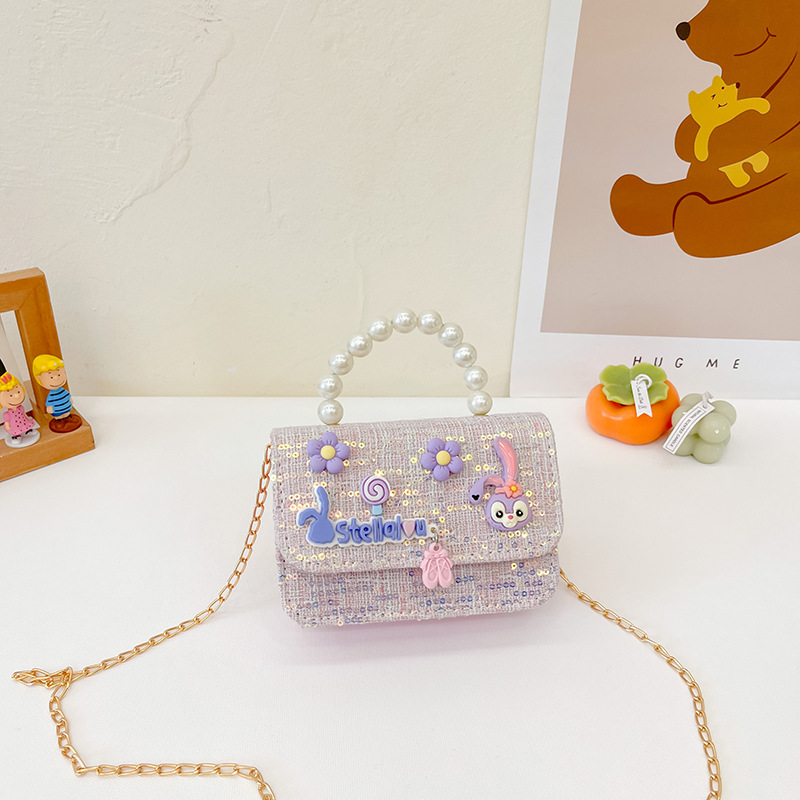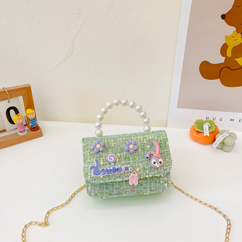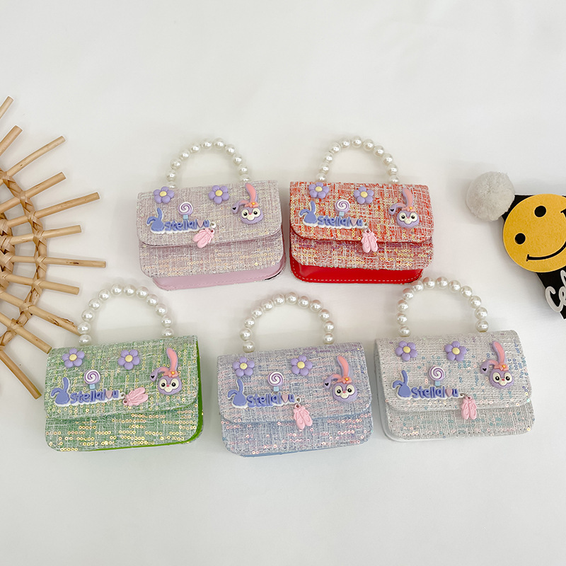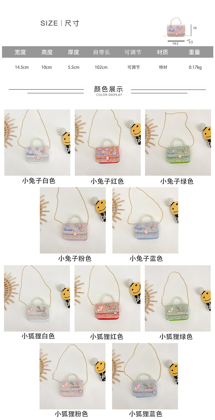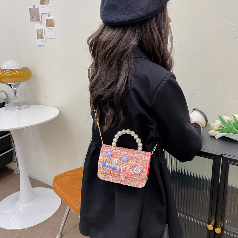 Transfronterizo nuevo bolso para niños estilo occidental perla portátil estilo Chanel moda cadena bolso de hombro conejito bolsa de mensajero