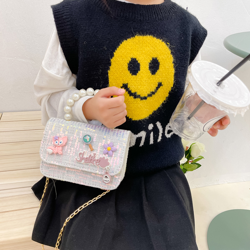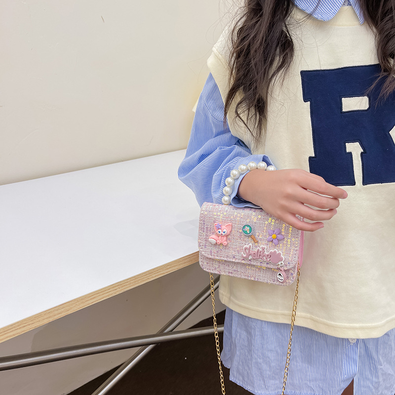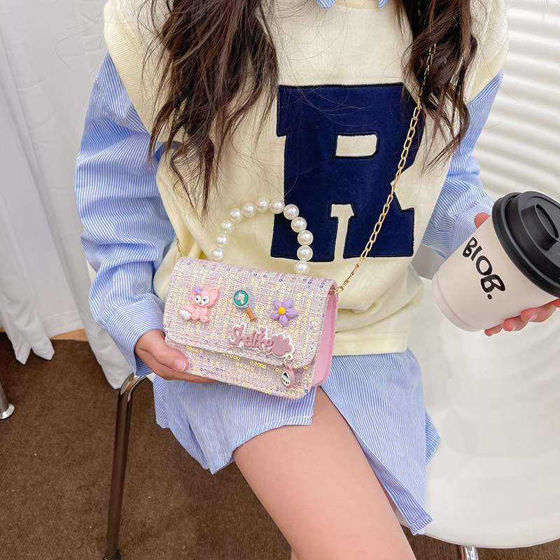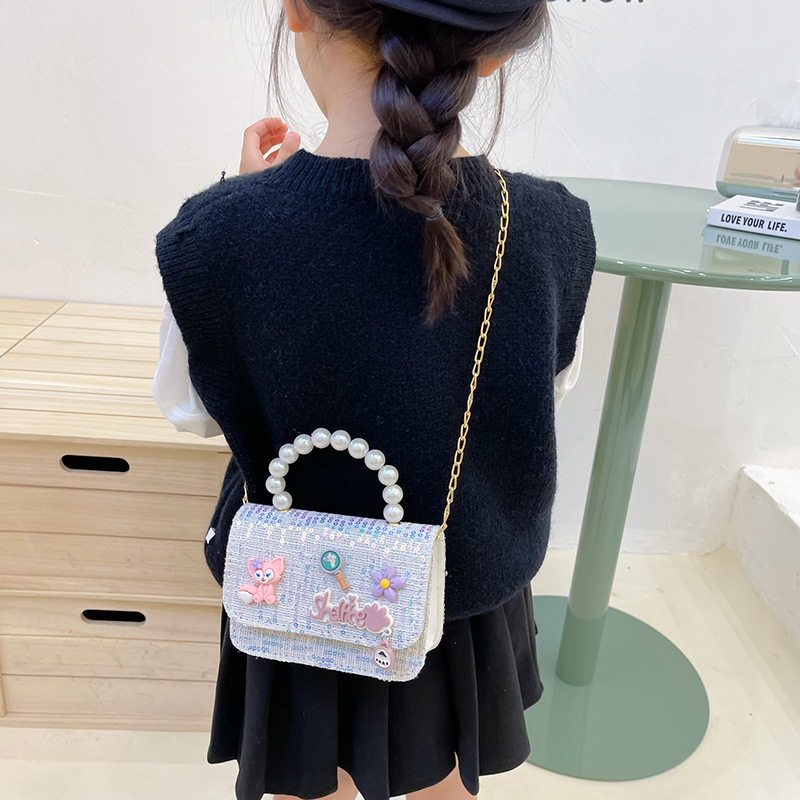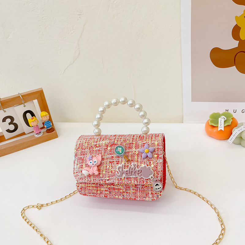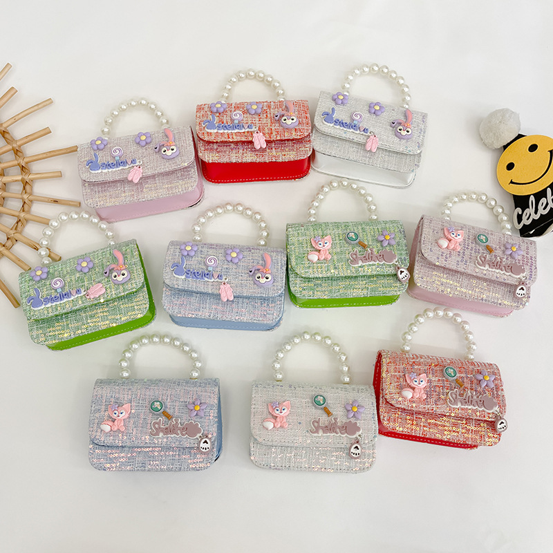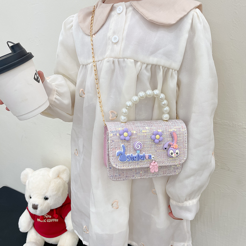 Transfronterizo nuevo bolso para niños estilo occidental perla portátil estilo Chanel moda cadena bolso de hombro conejito bolsa de mensajero