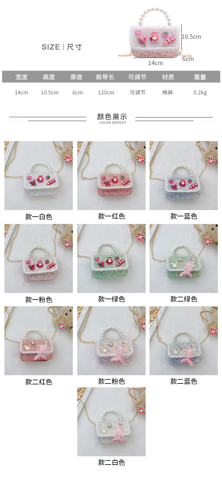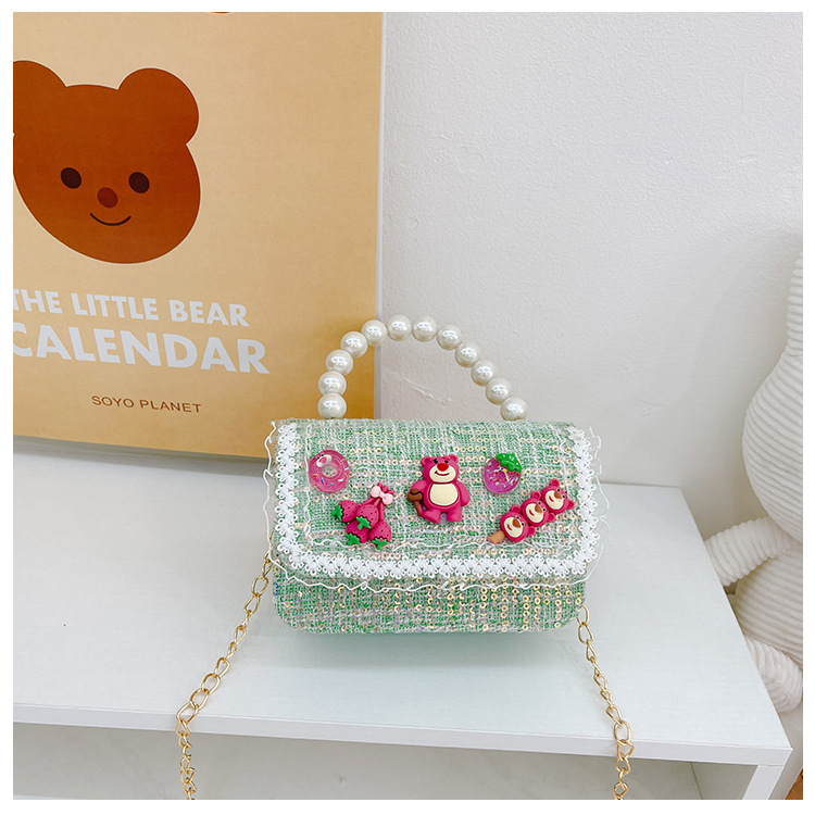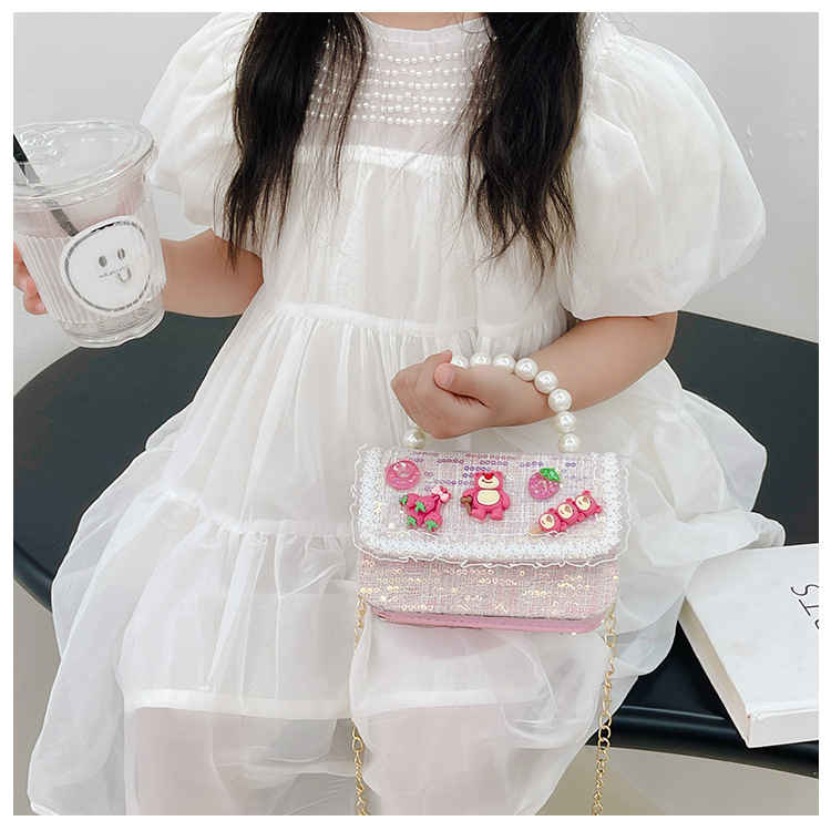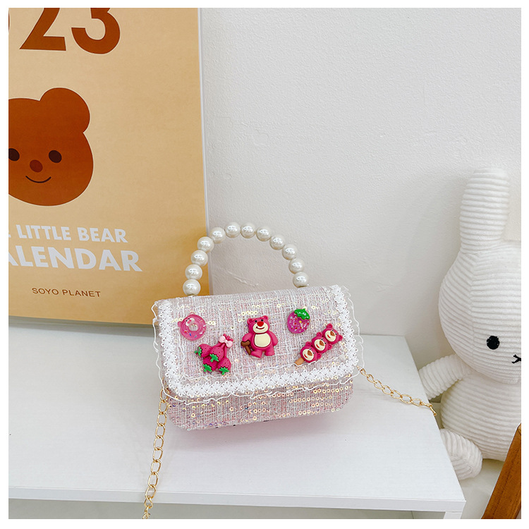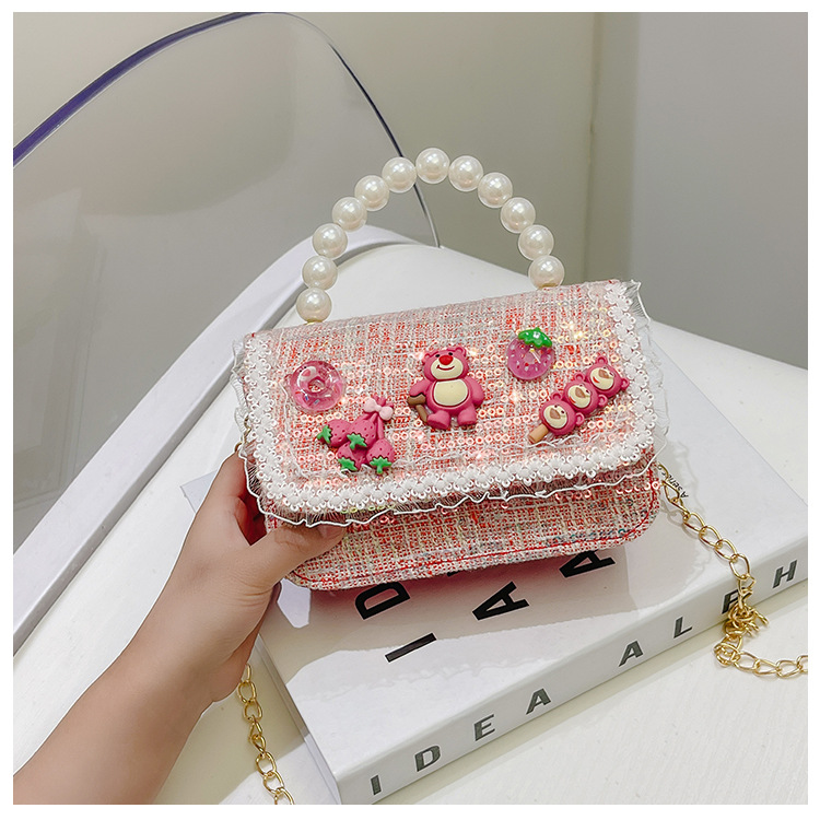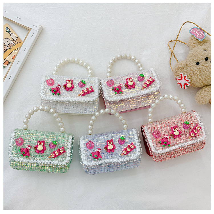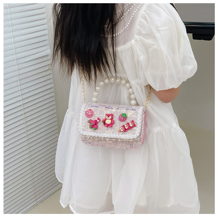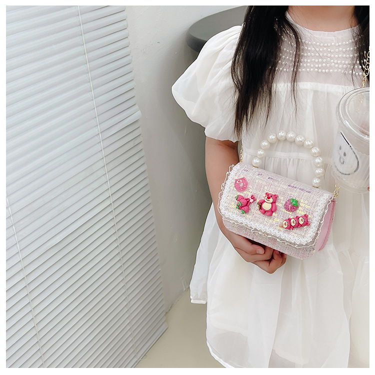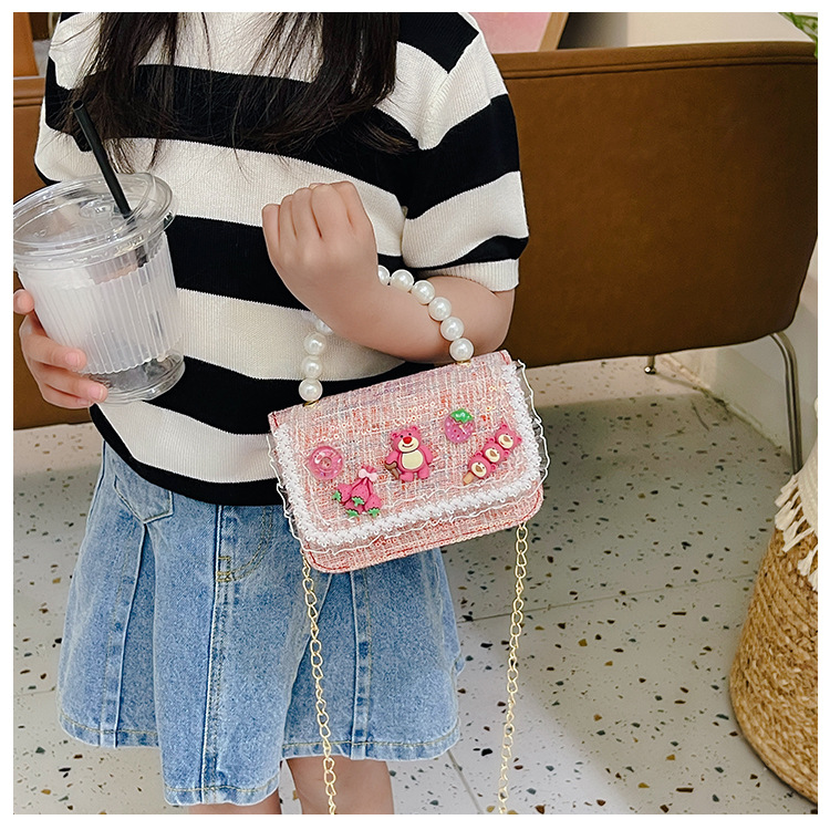 Bolso de los niños del verano de la nueva manera de La Perla de las niñas bolsa de mensajero oso Lindo bolso de las mujeres estilo de la princesa monedero de la moneda