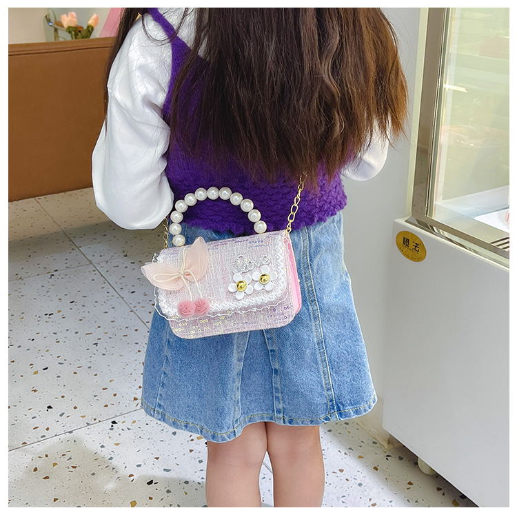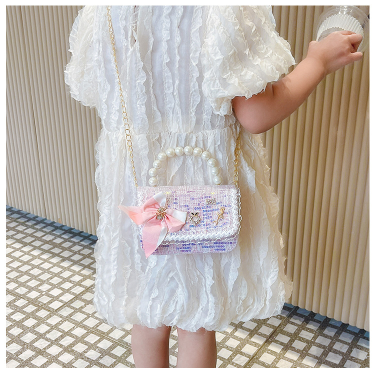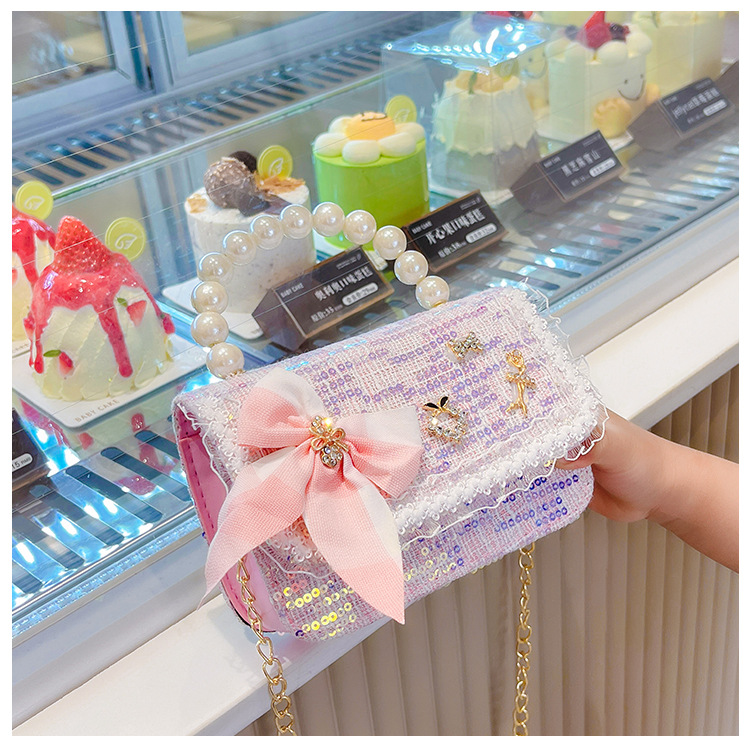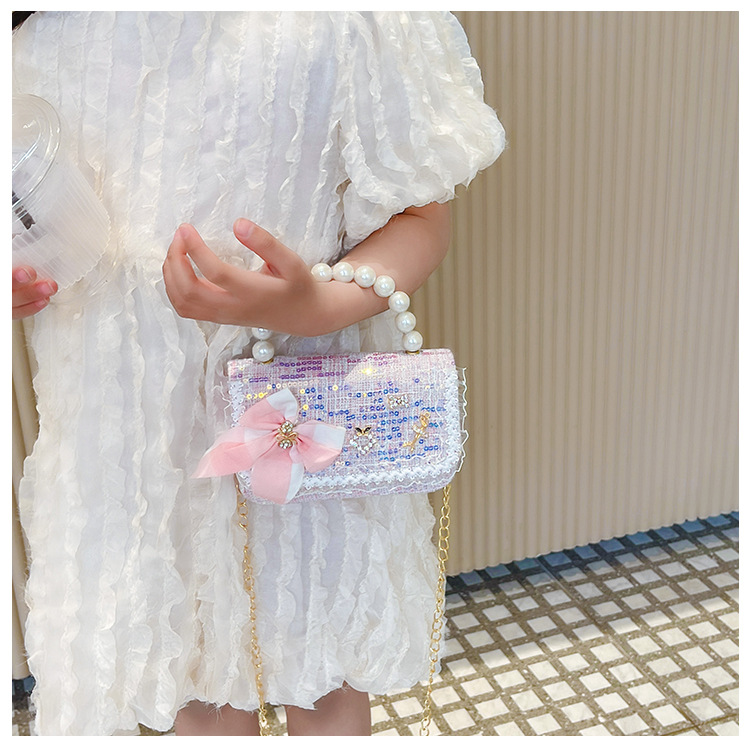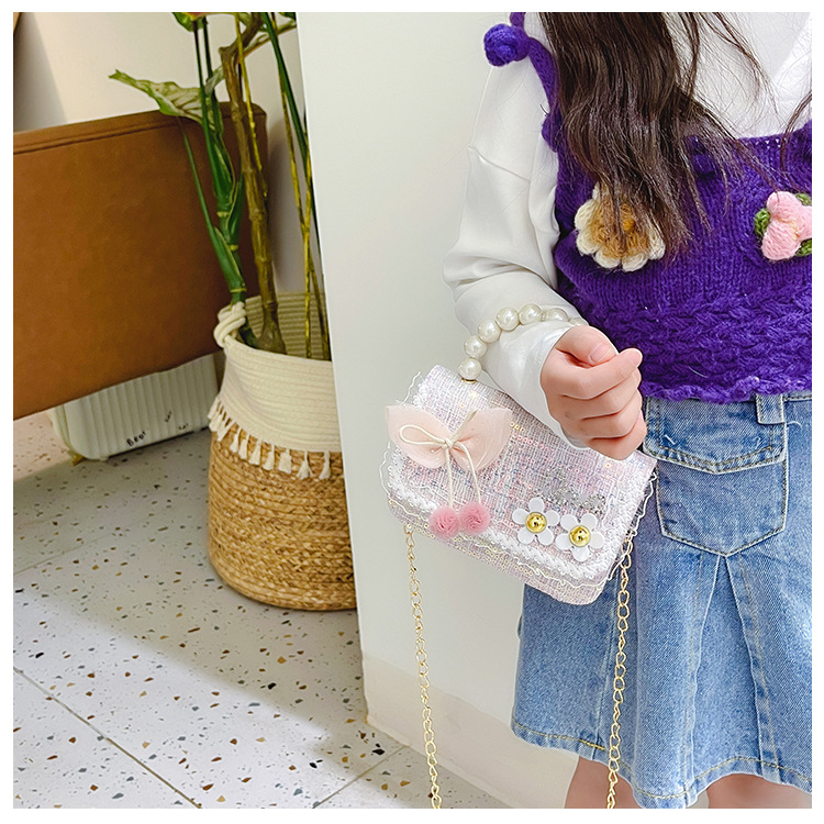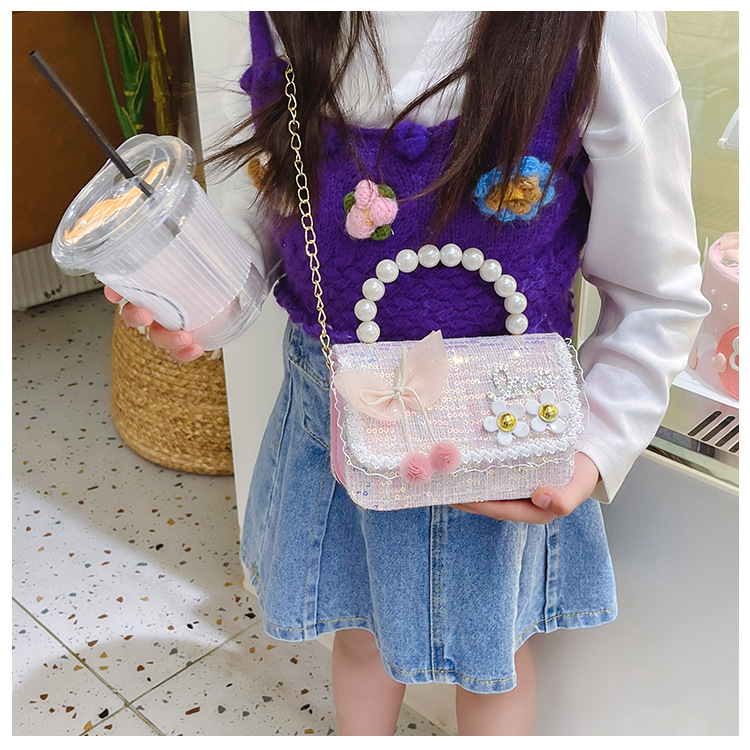 Bolso de hombro de los niños nuevo comercio exterior al por mayor bolso de La Perla de las niñas moda coreana pequeña princesa lentejuelas bolsa de mensajero