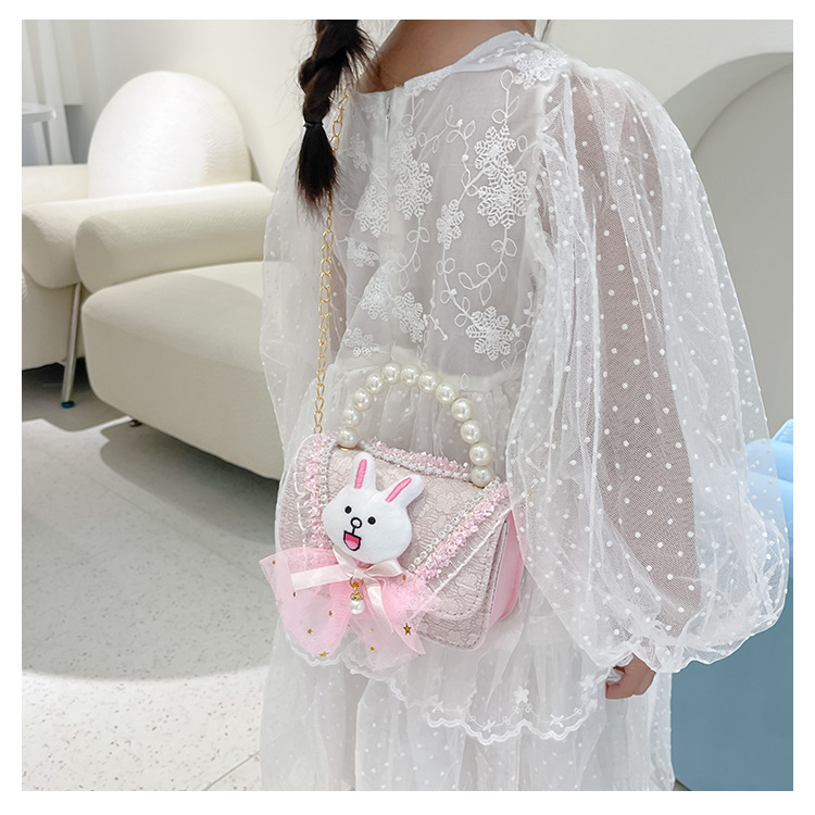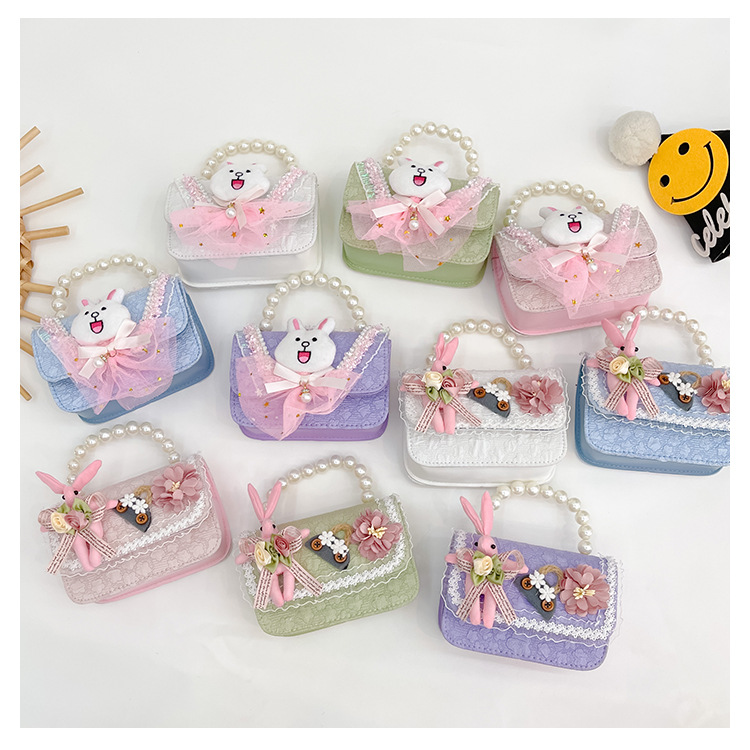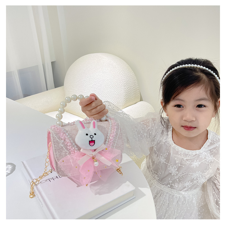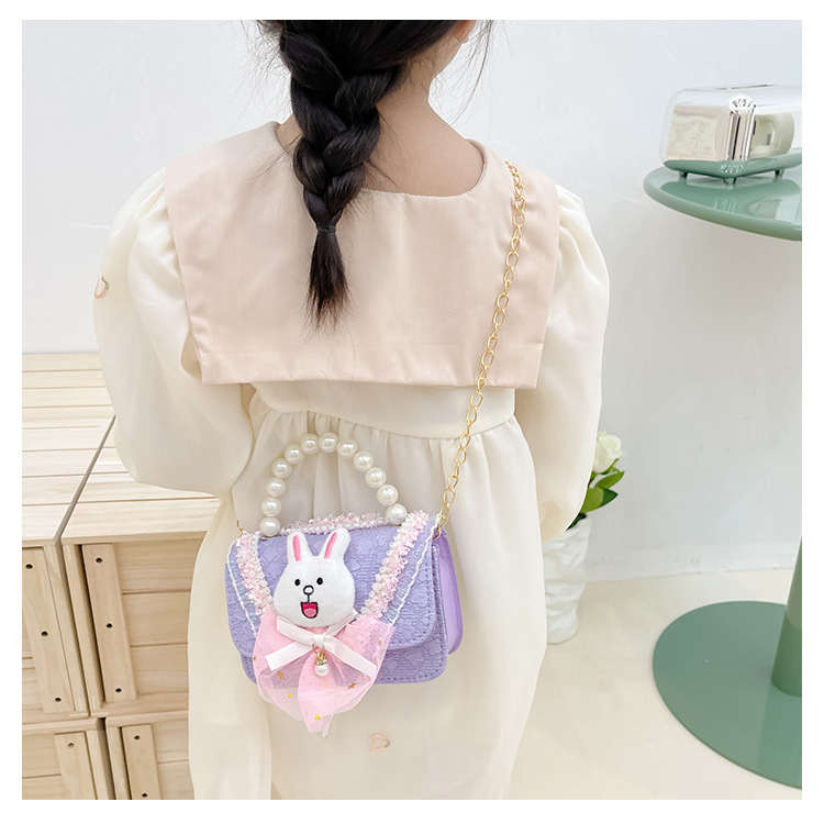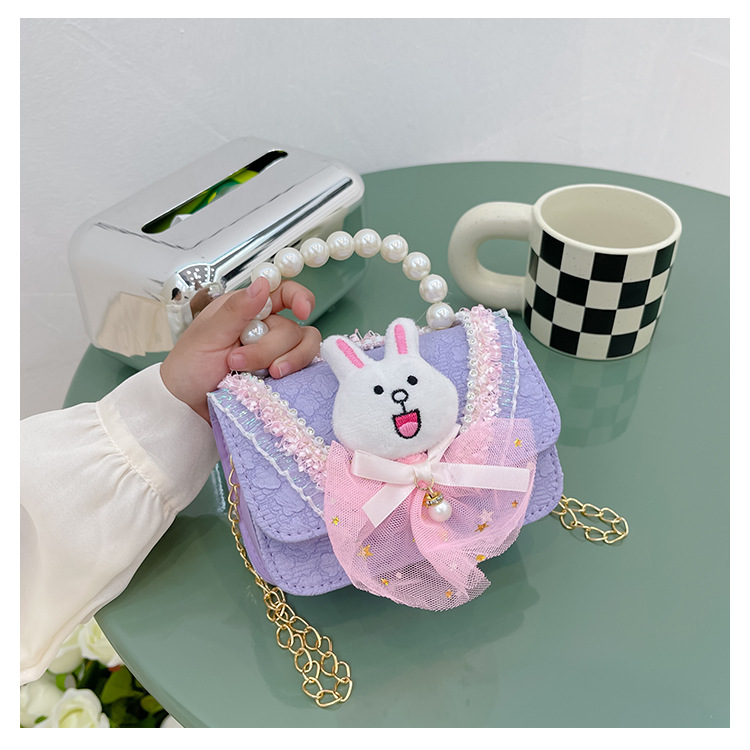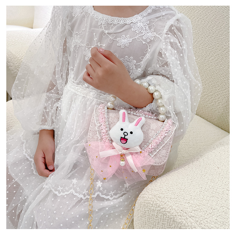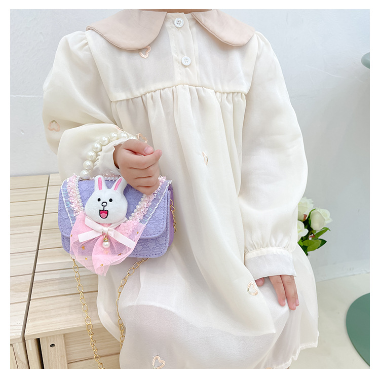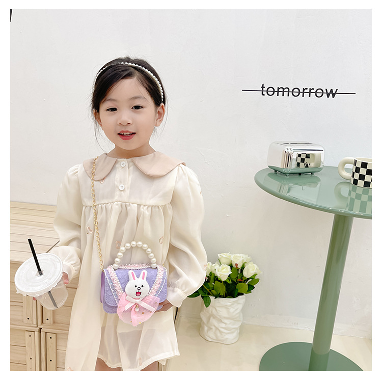 2023 nuevos niños de algodón y lino monedero niñas de viaje de compras elegante bolsa de mensajero de dibujos animados conejito bolsa de hombro