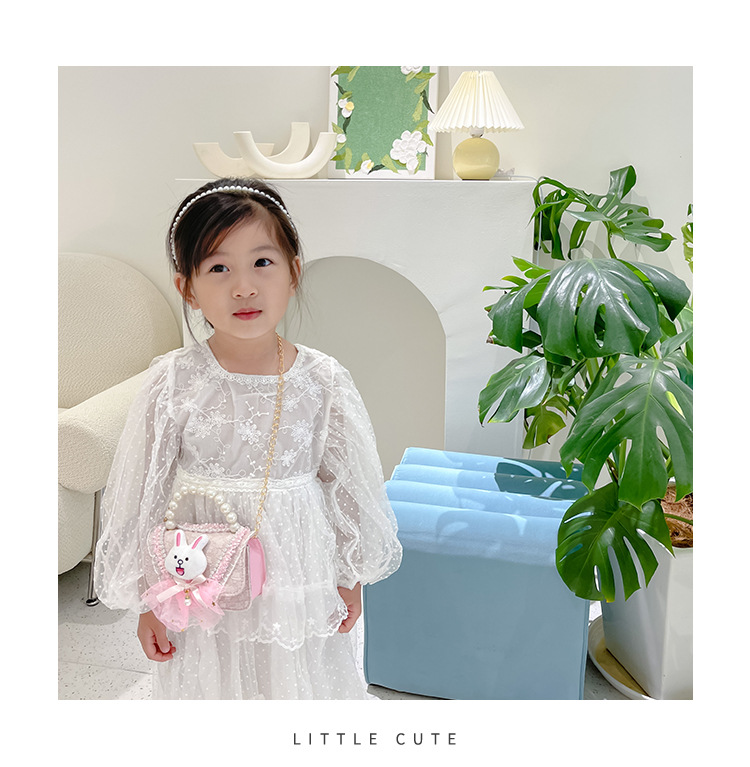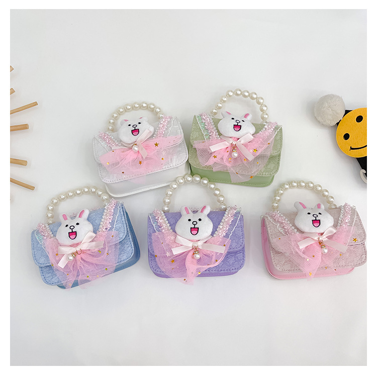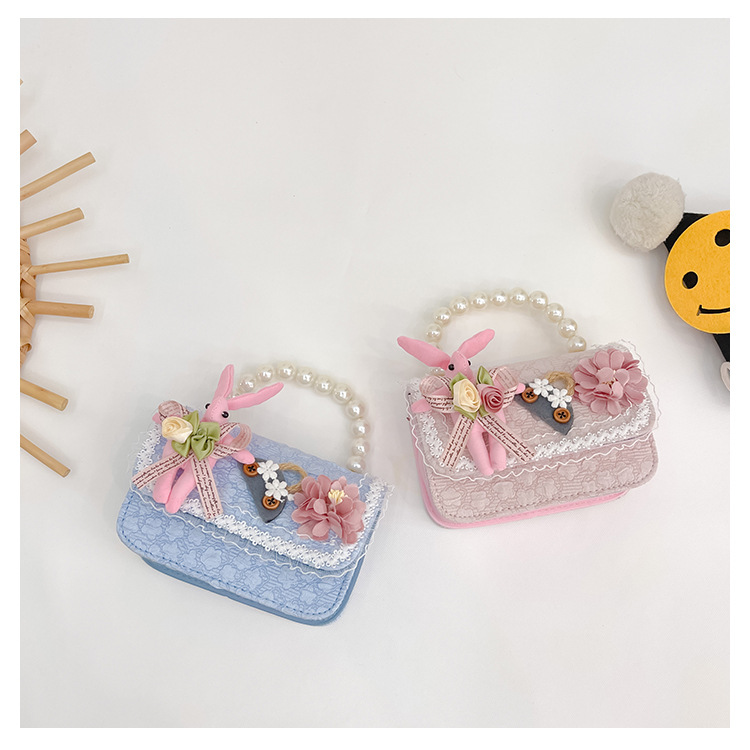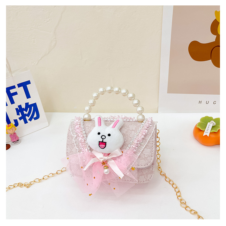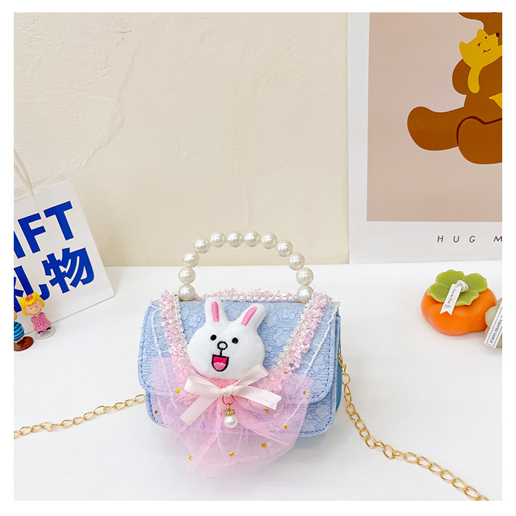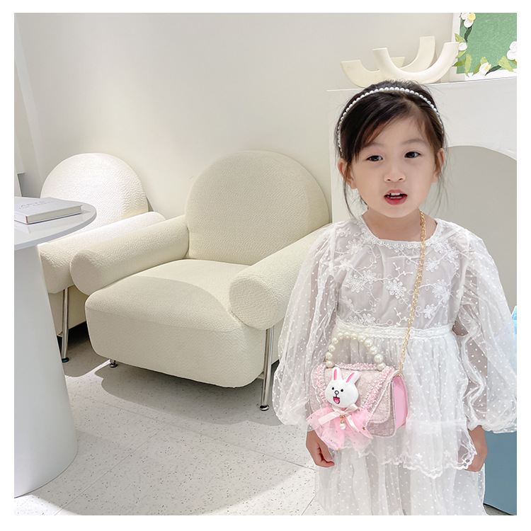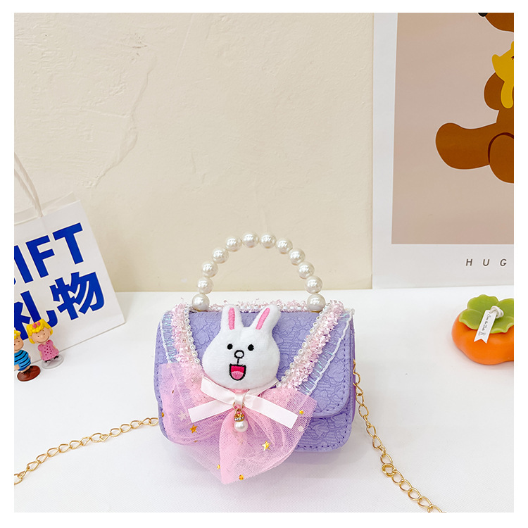 2023 nuevos niños de algodón y lino monedero niñas de viaje de compras elegante bolsa de mensajero de dibujos animados conejito bolsa de hombro
