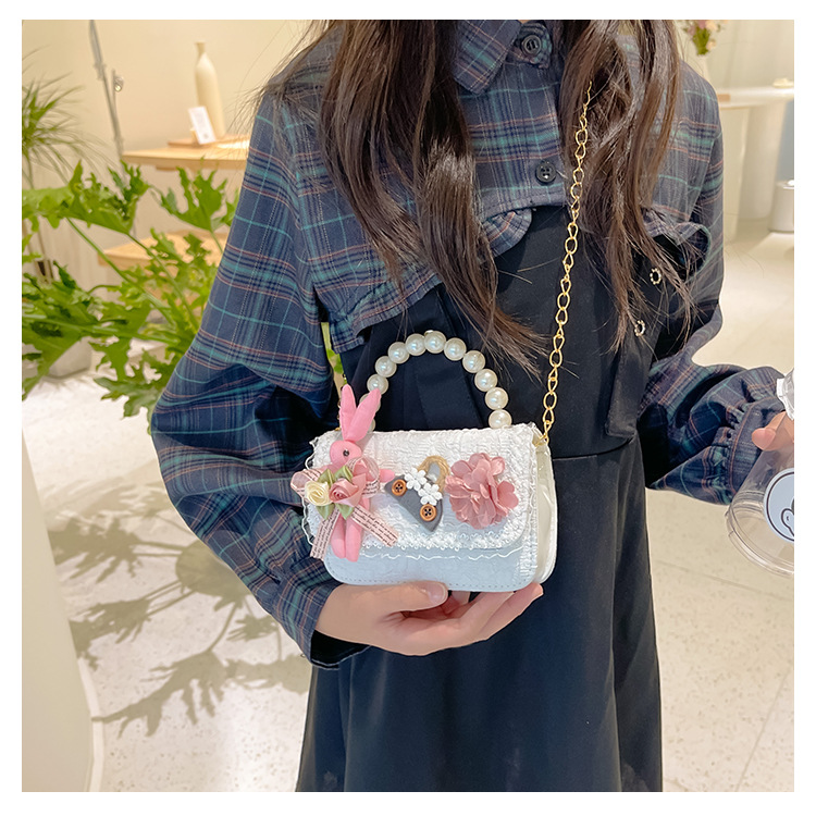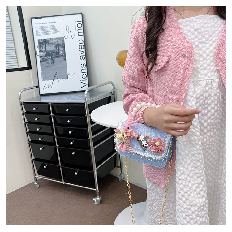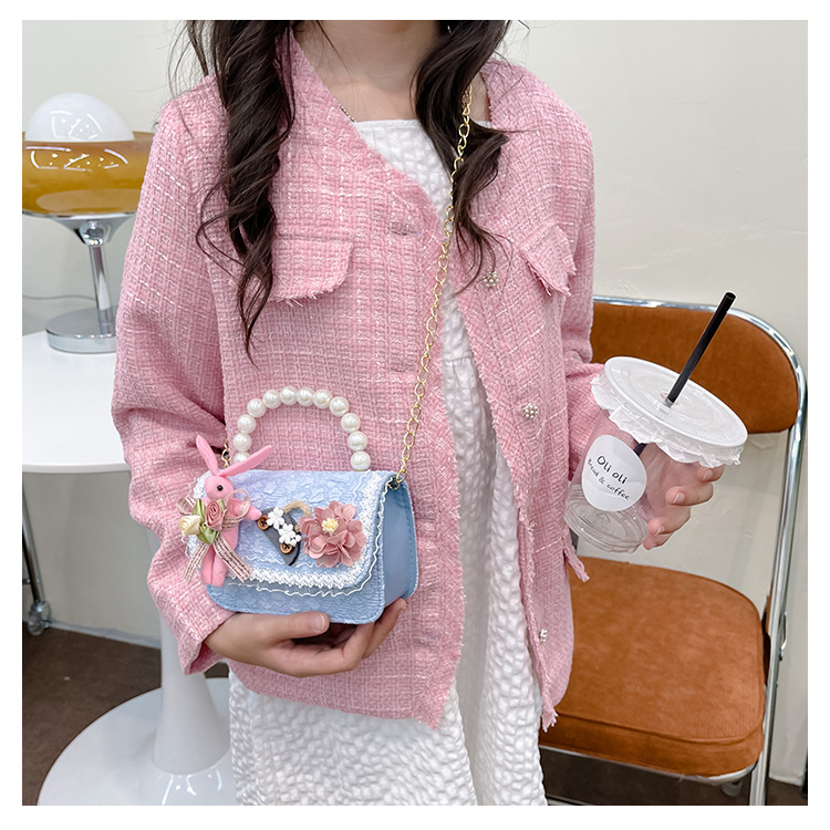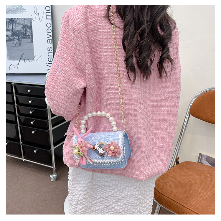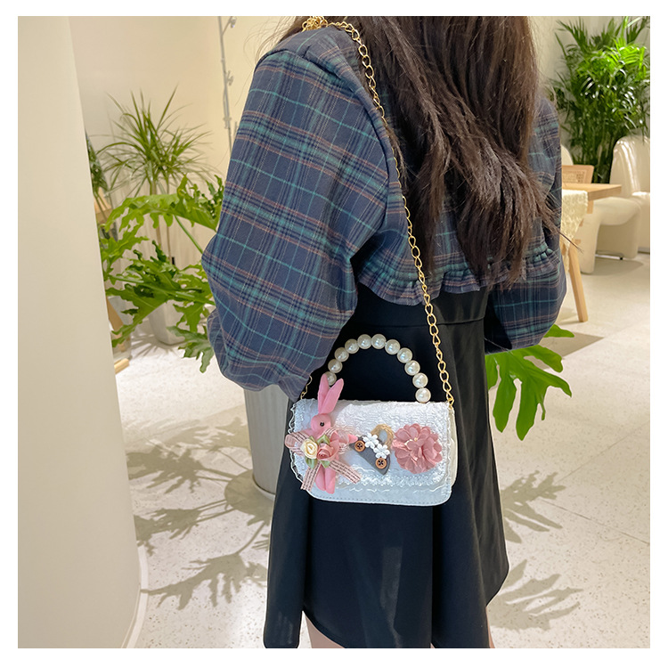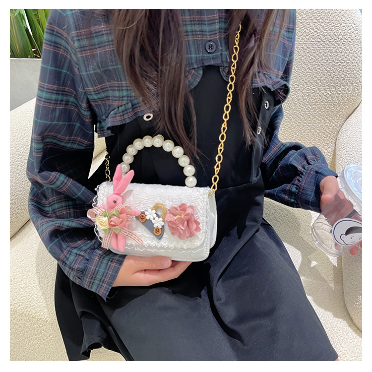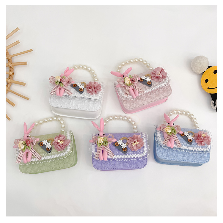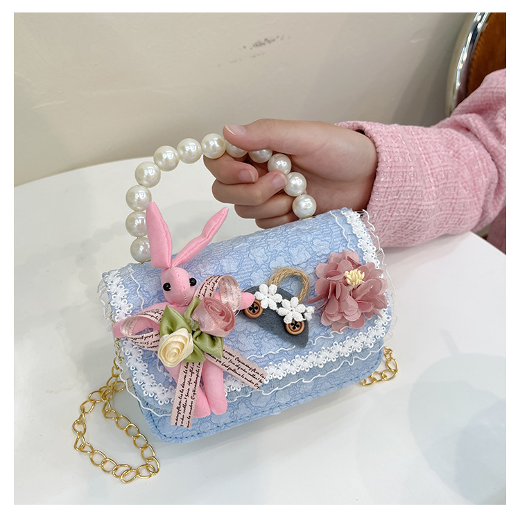 2023 nuevos niños de algodón y lino monedero niñas de viaje de compras elegante bolsa de mensajero de dibujos animados conejito bolsa de hombro