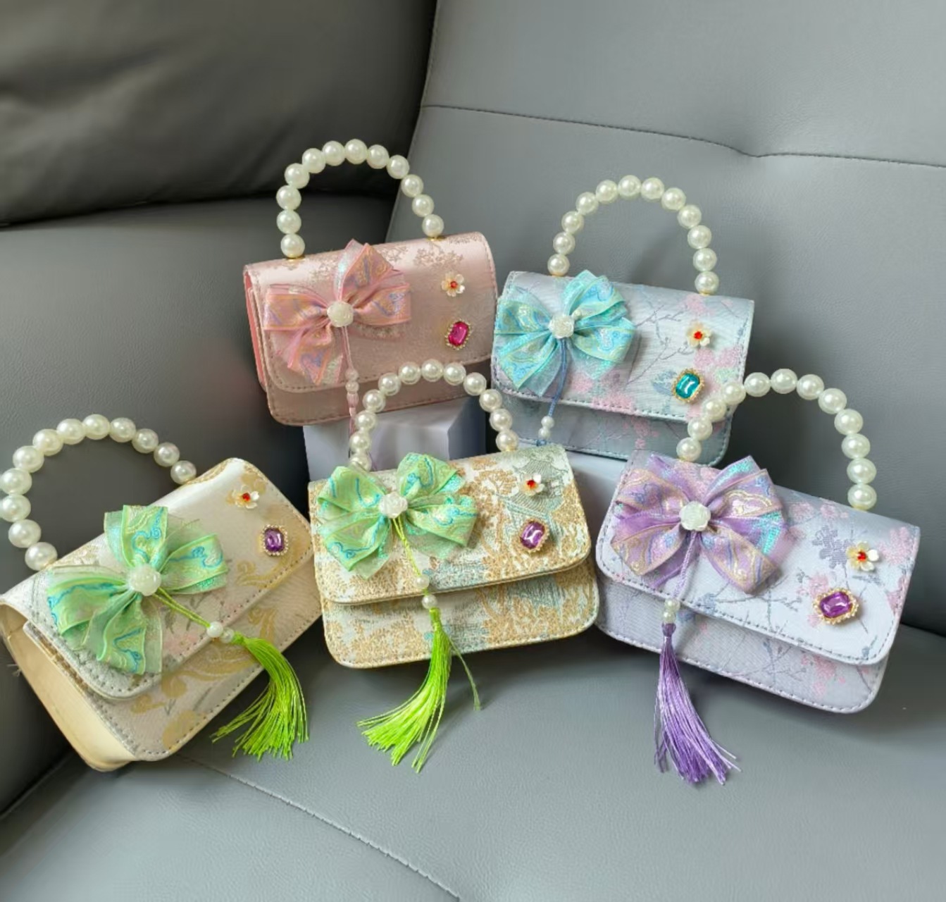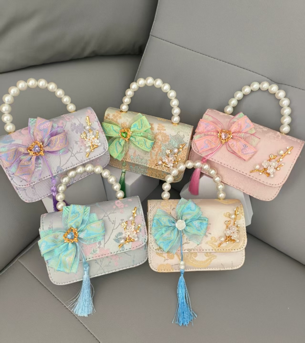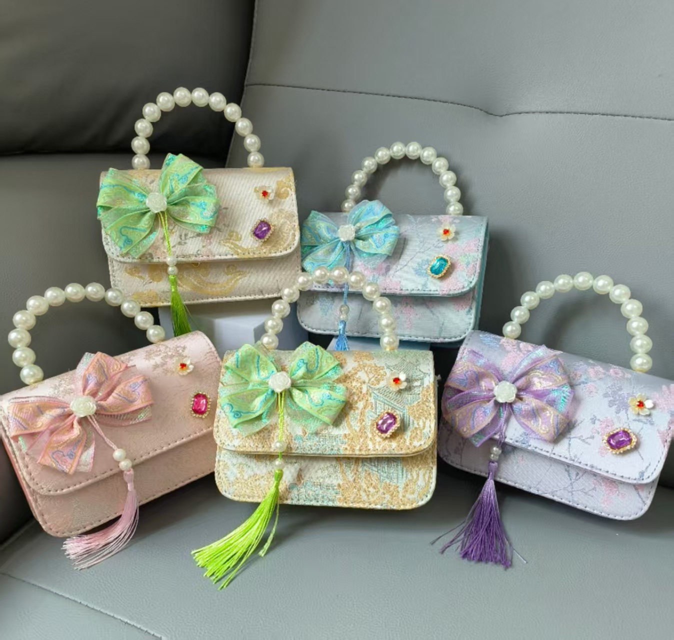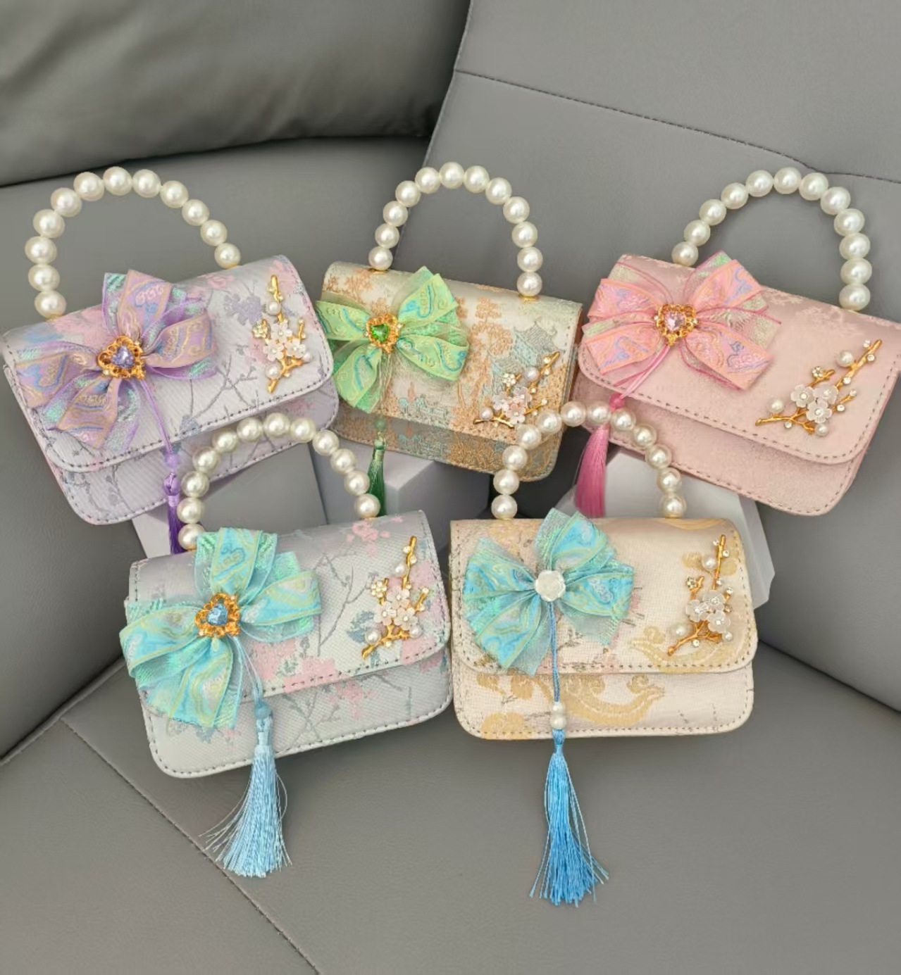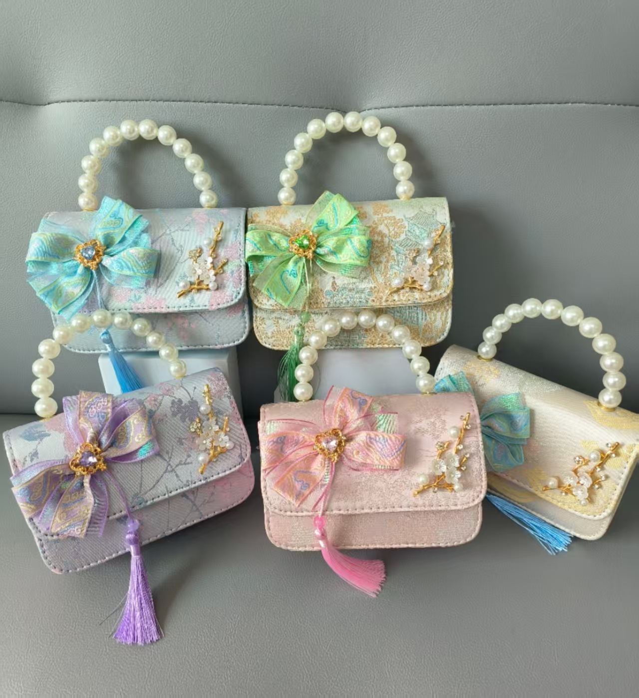 Bolso de mano de perla princesa, bolso de estilo chino, bolso de accesorios, arco, bolso de hombro, bolso cuadrado, bolso de Año Nuevo.