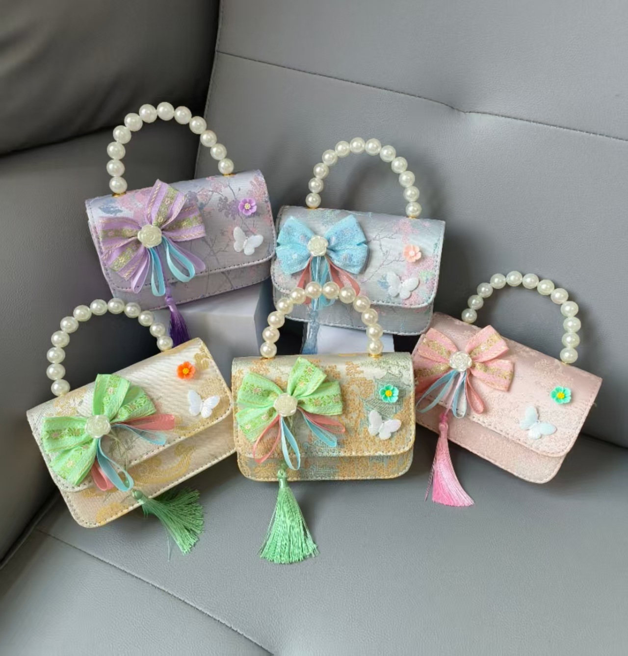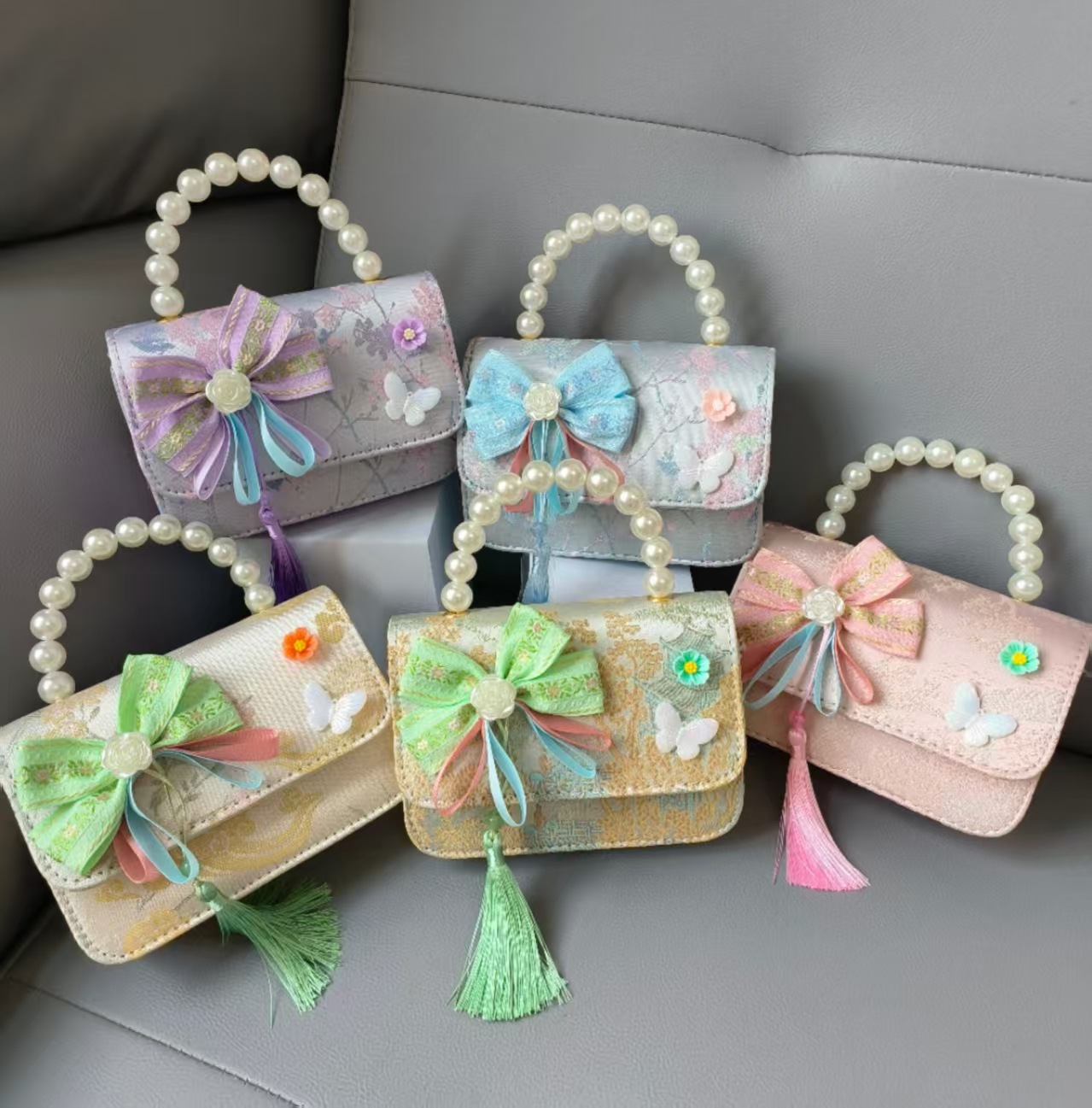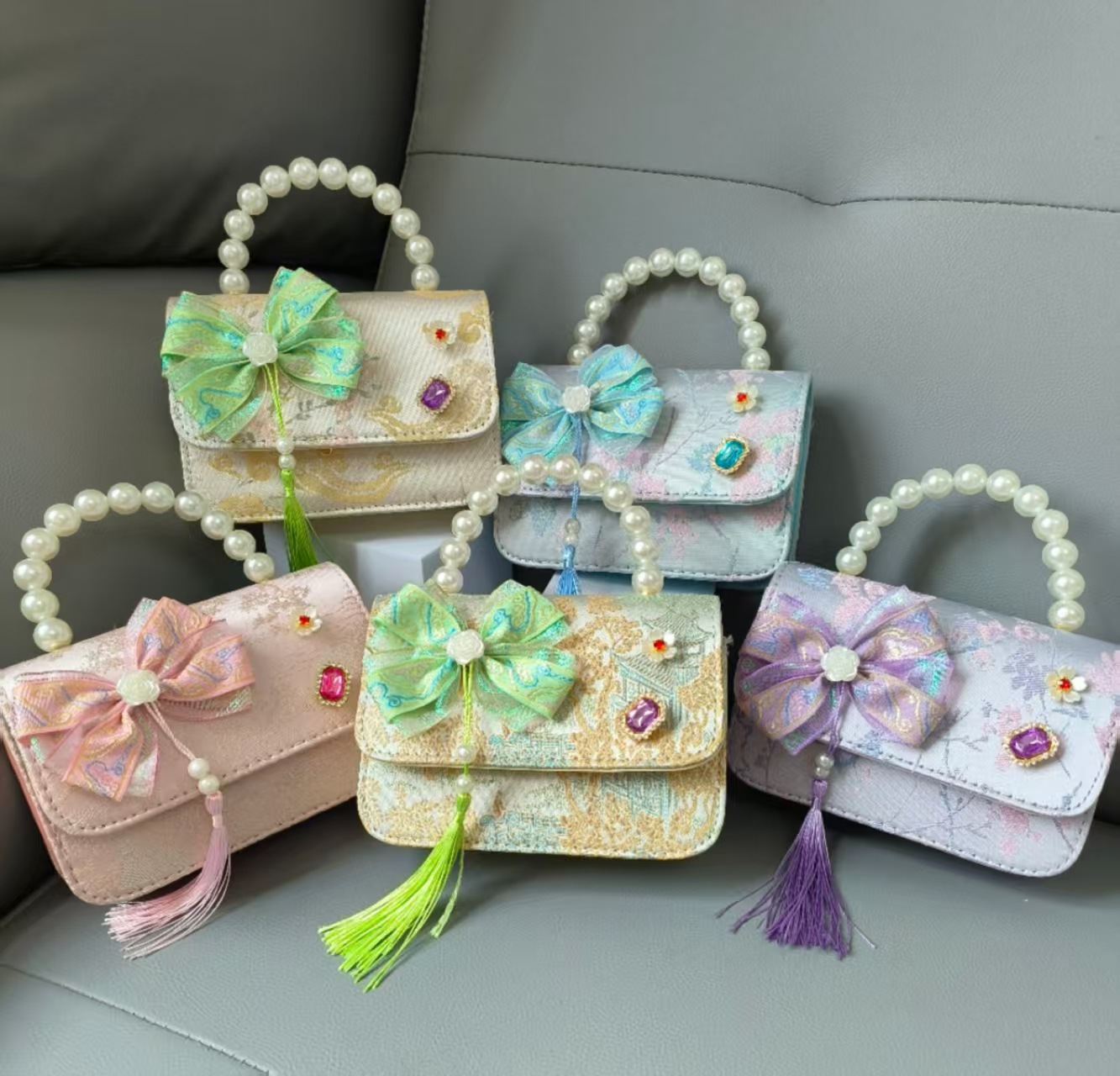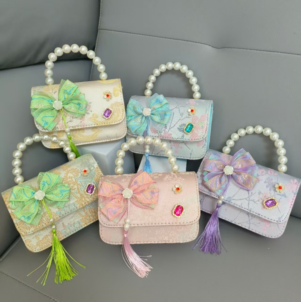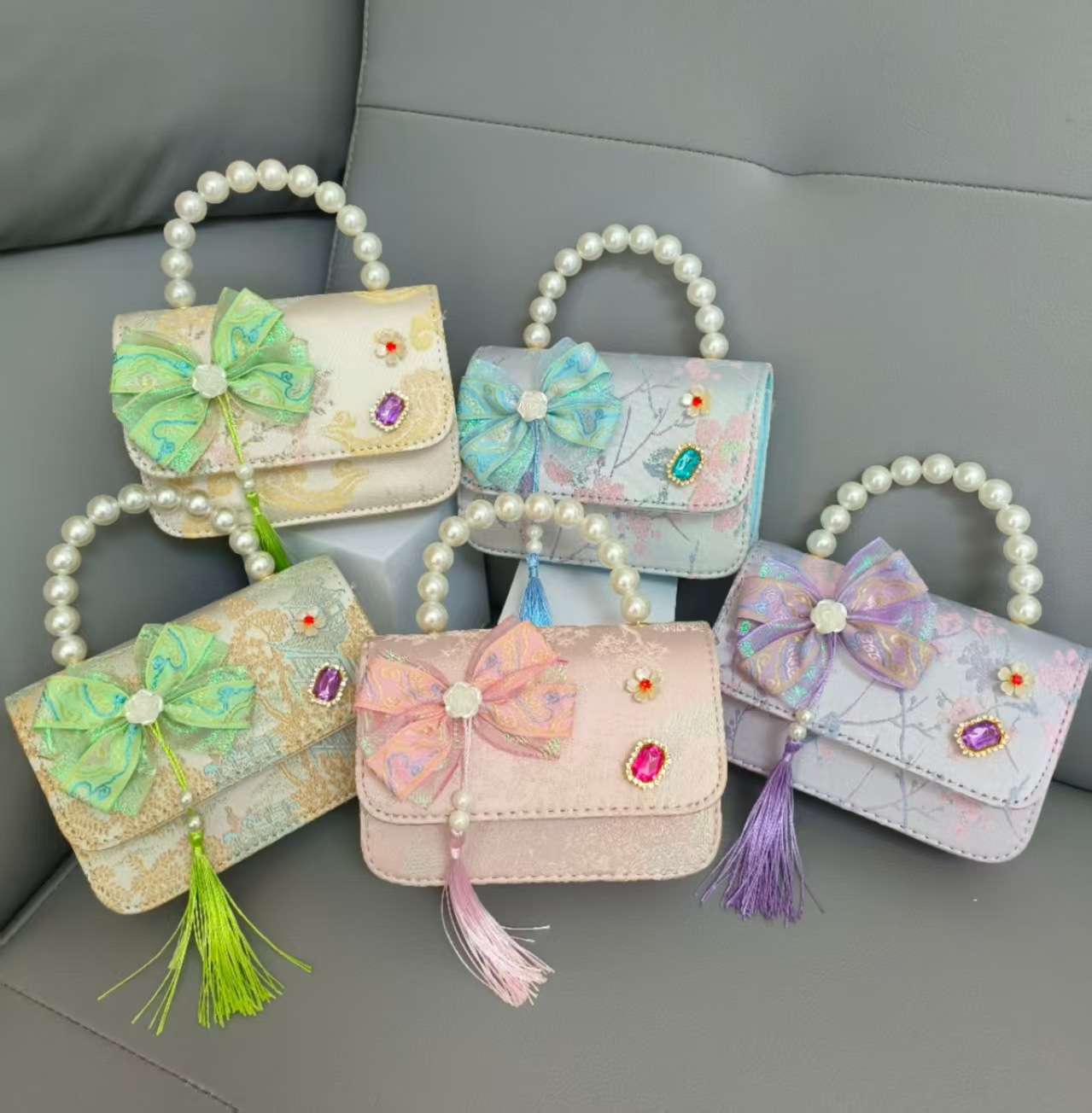 Bolso de mano de perla princesa, bolso de estilo chino, bolso de accesorios, arco, bolso de hombro, bolso cuadrado, bolso de Año Nuevo.