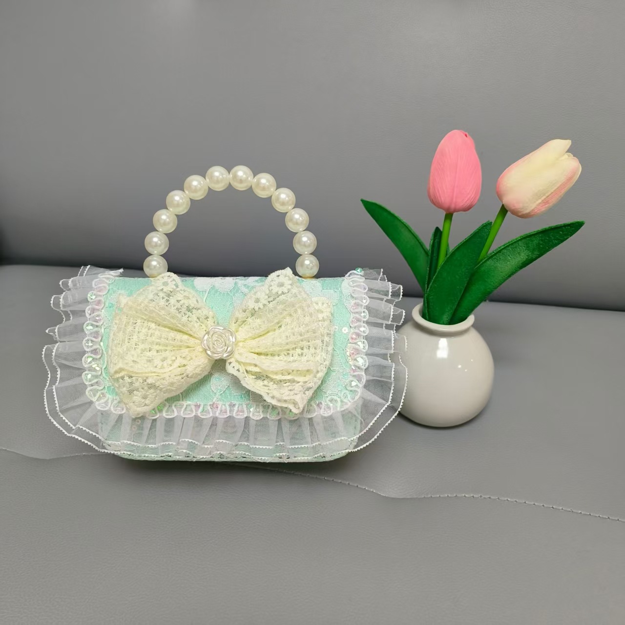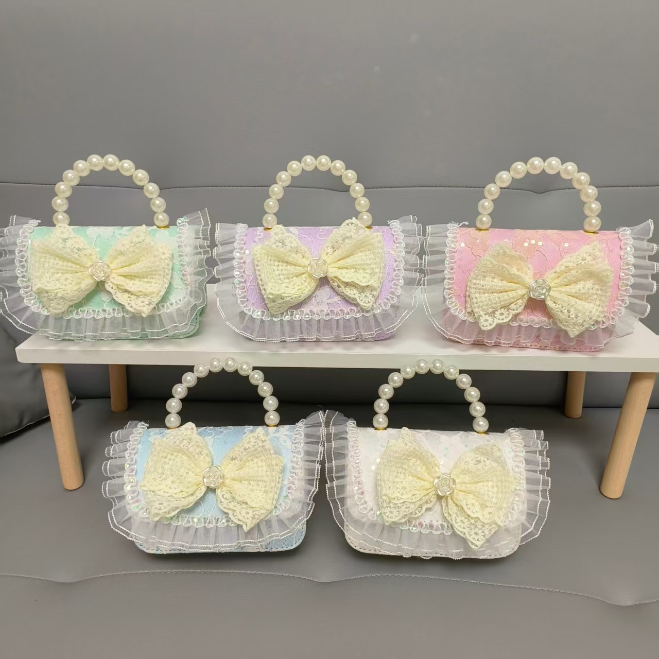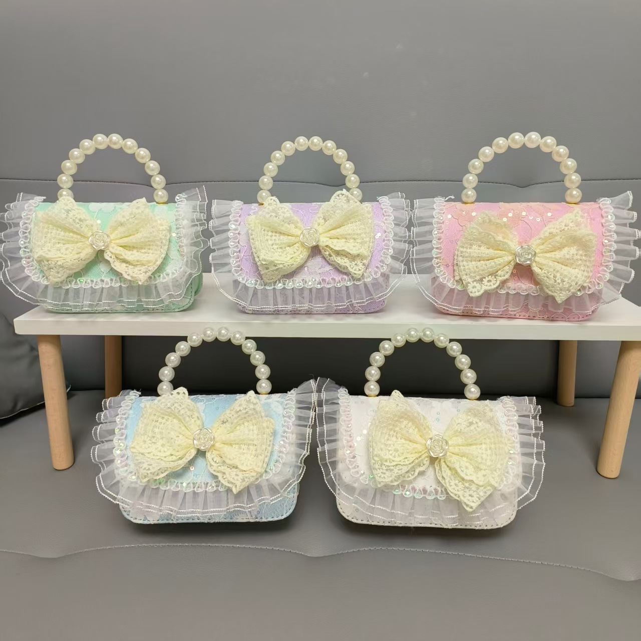 Bolso de princesa portátil de perlas, arco de encaje, bolso de hombro, bolso de cadena, bolso de cambio de Año Nuevo.