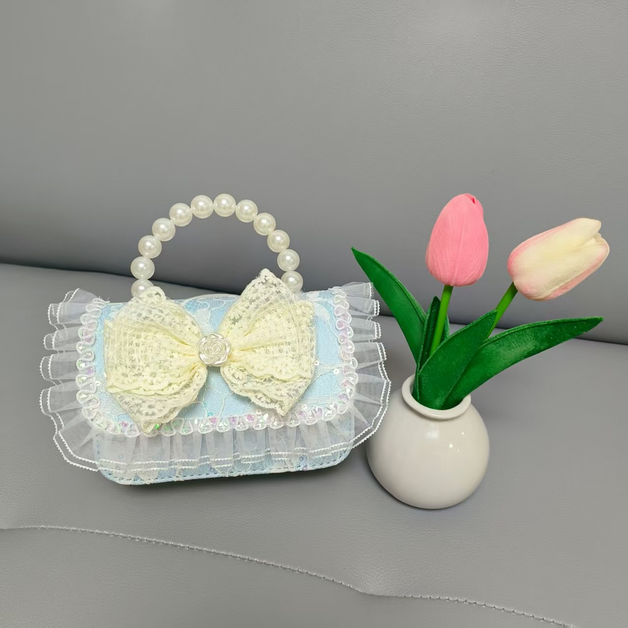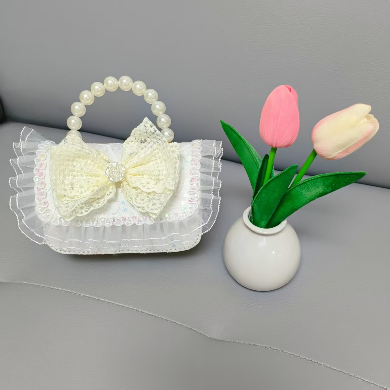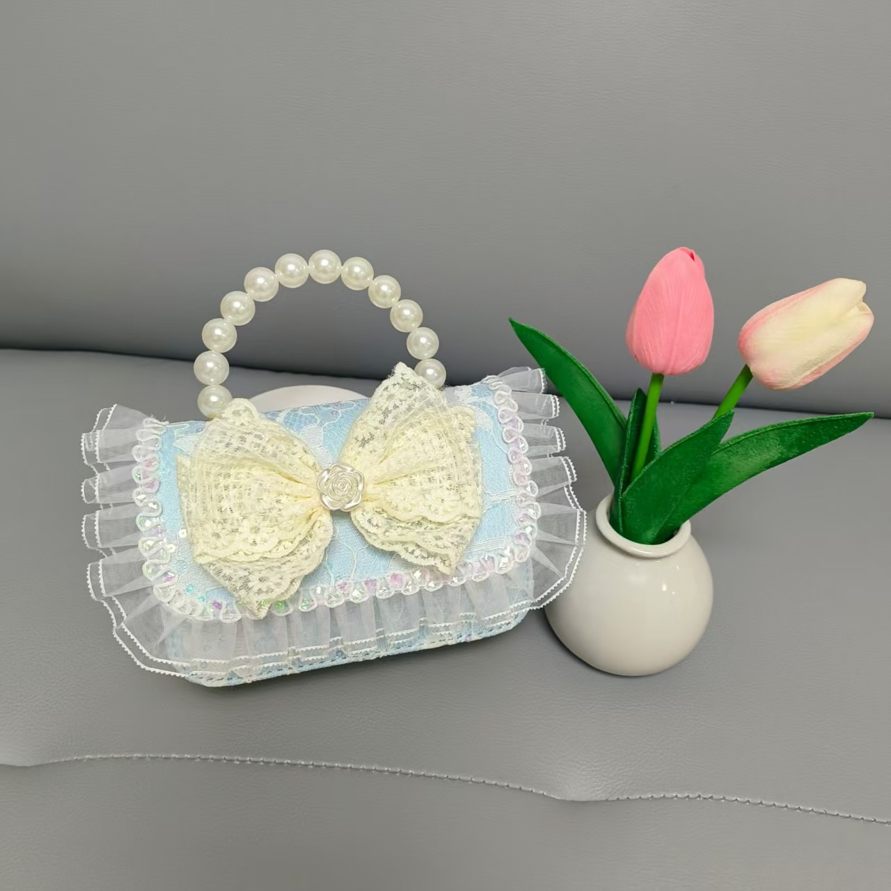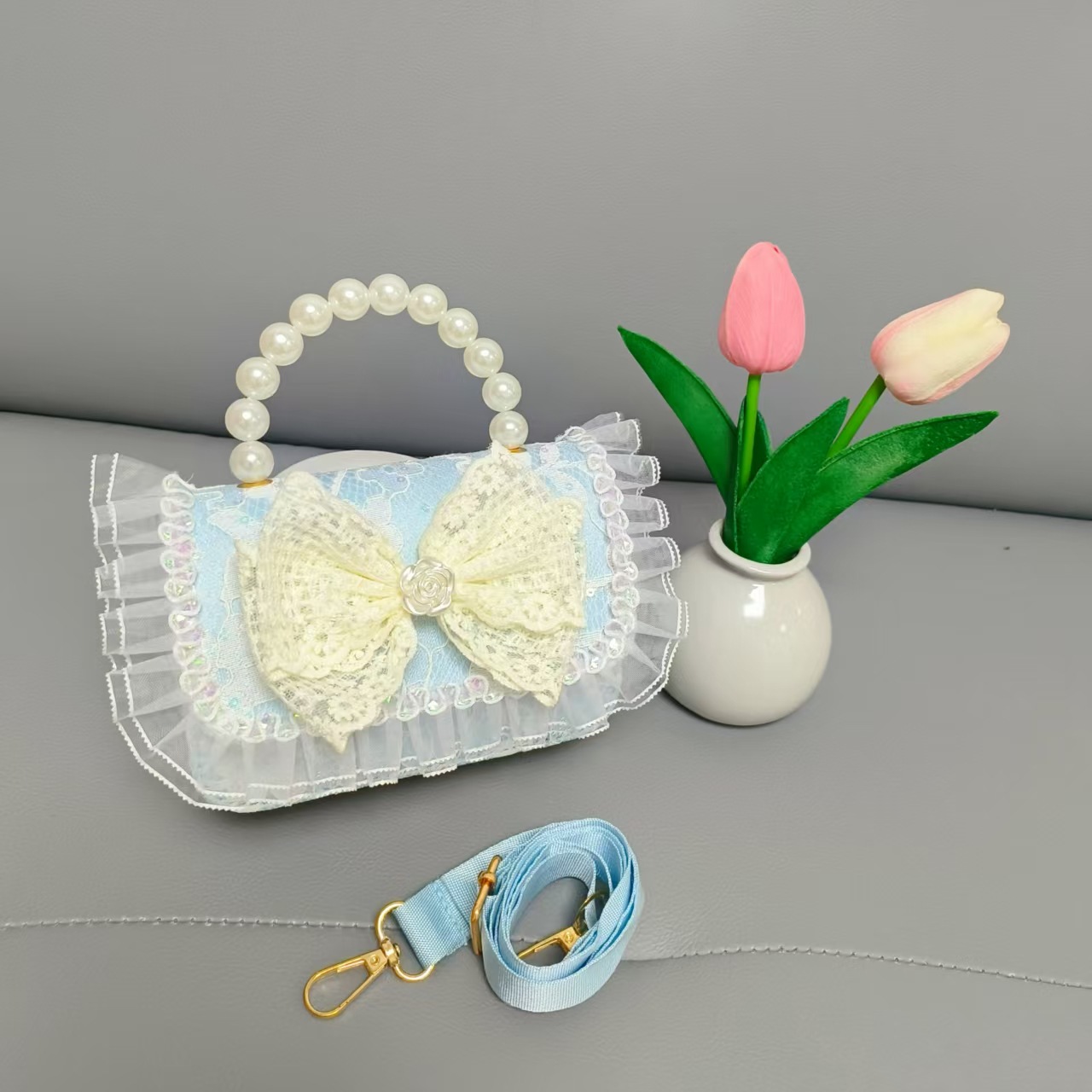 Bolso de princesa portátil de perlas, arco de encaje, bolso de hombro, bolso de cadena, bolso de cambio de Año Nuevo.