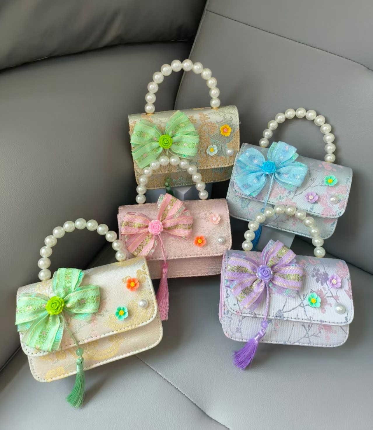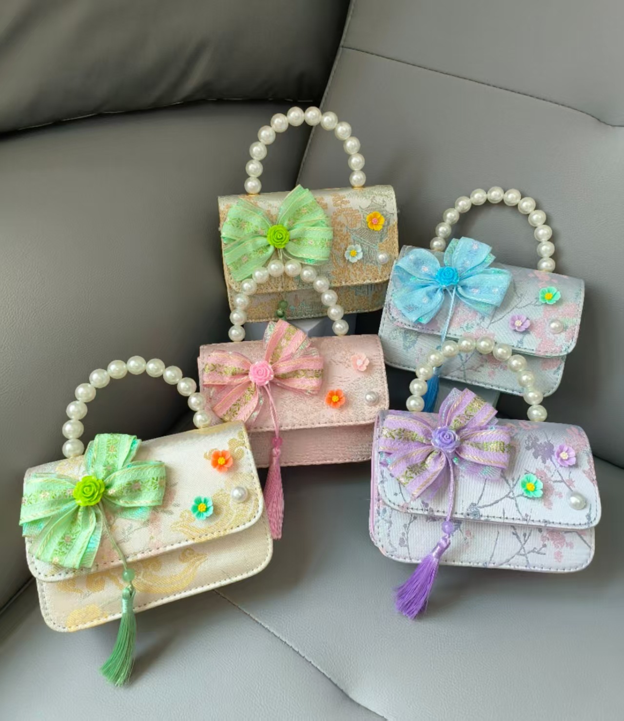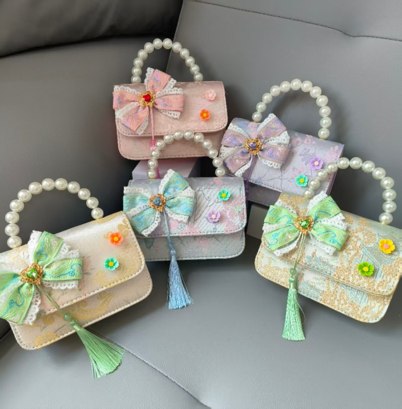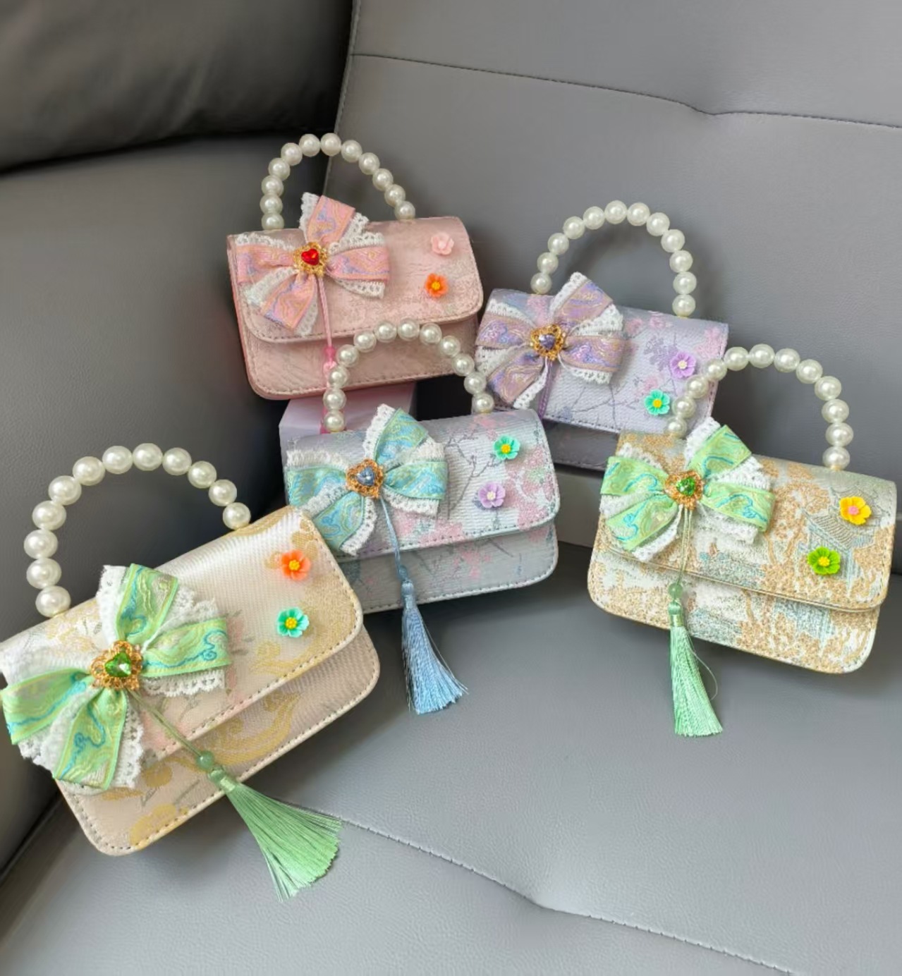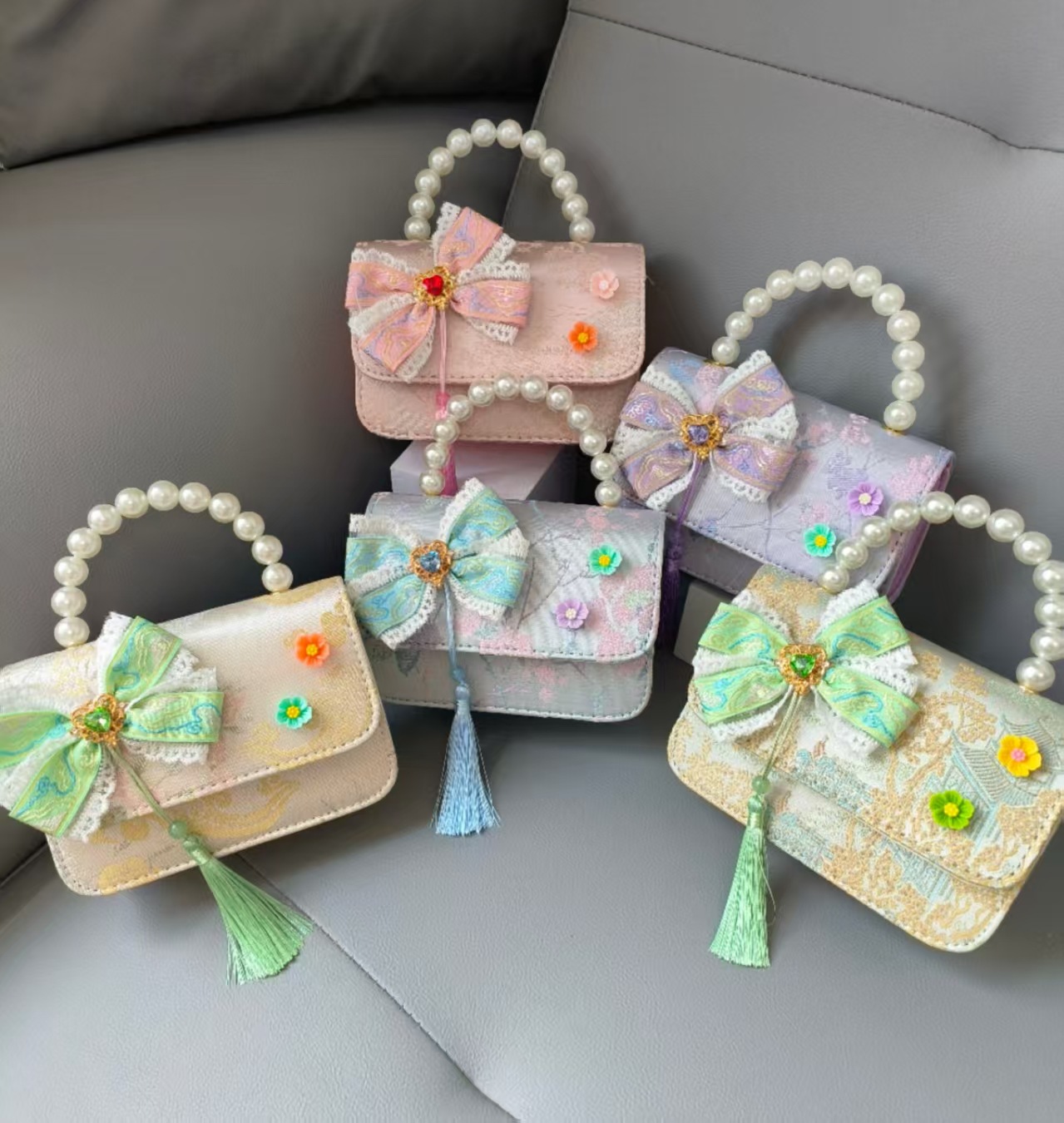 Bolsa portátil de la princesa de perlas estilo nacional arco de hombro bolso de cadena bolso pequeño bolso de cambio de Año Nuevo
