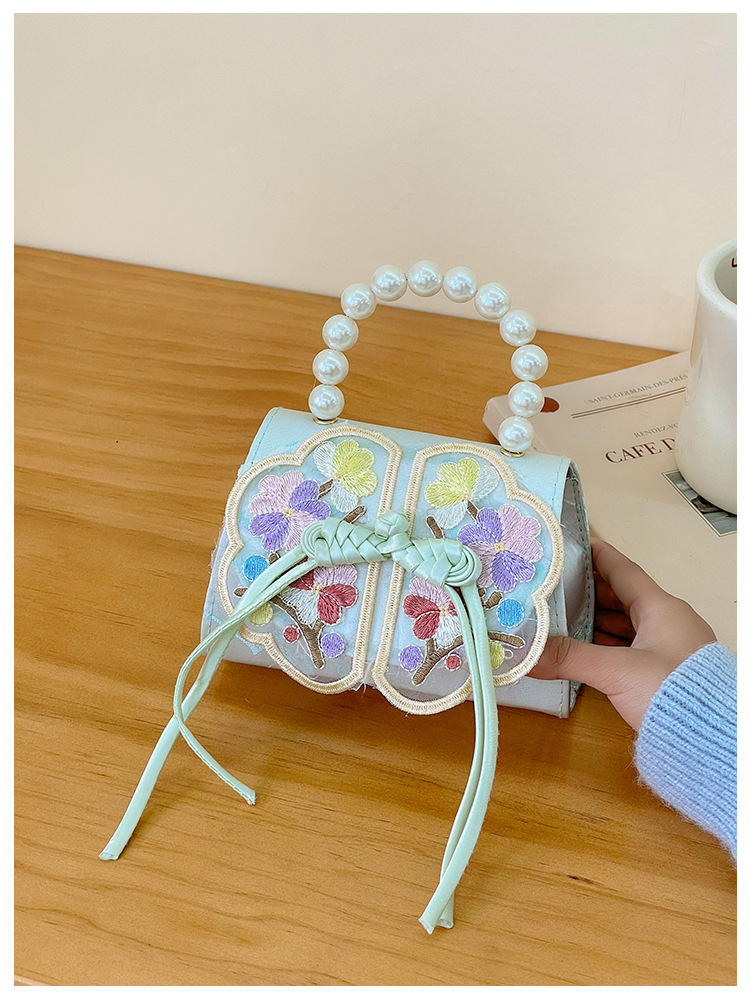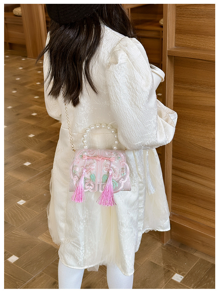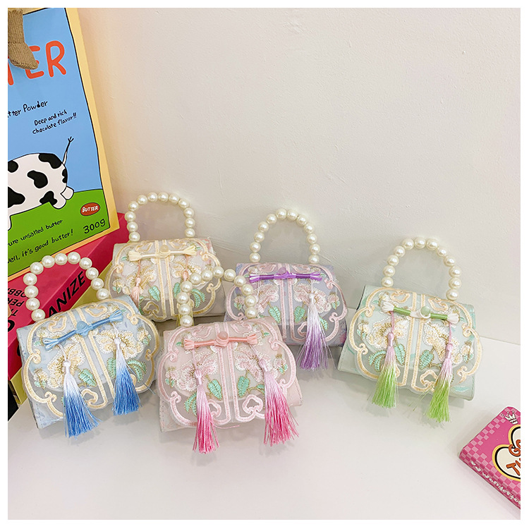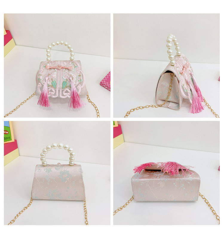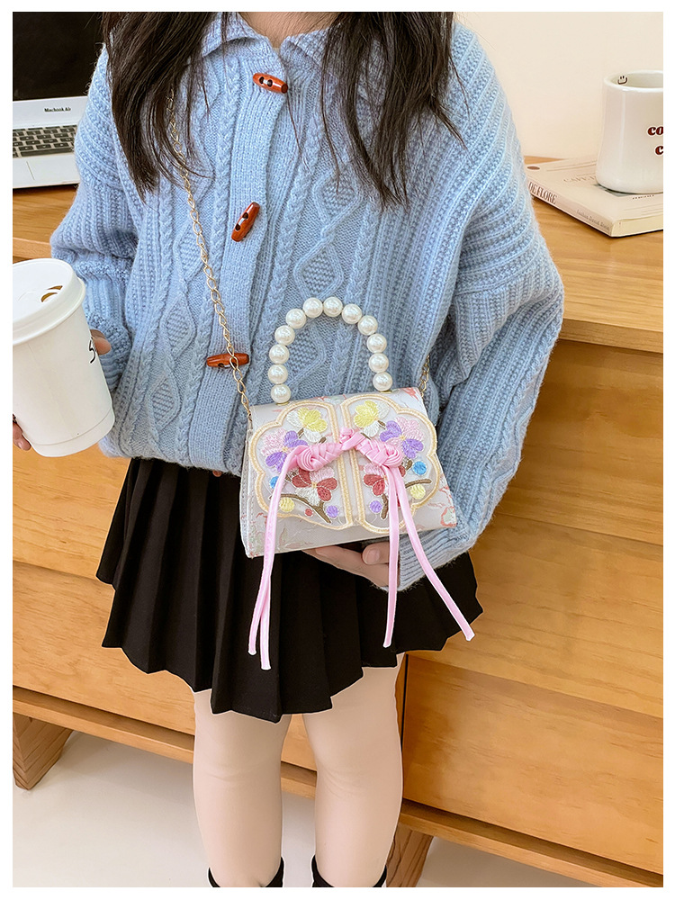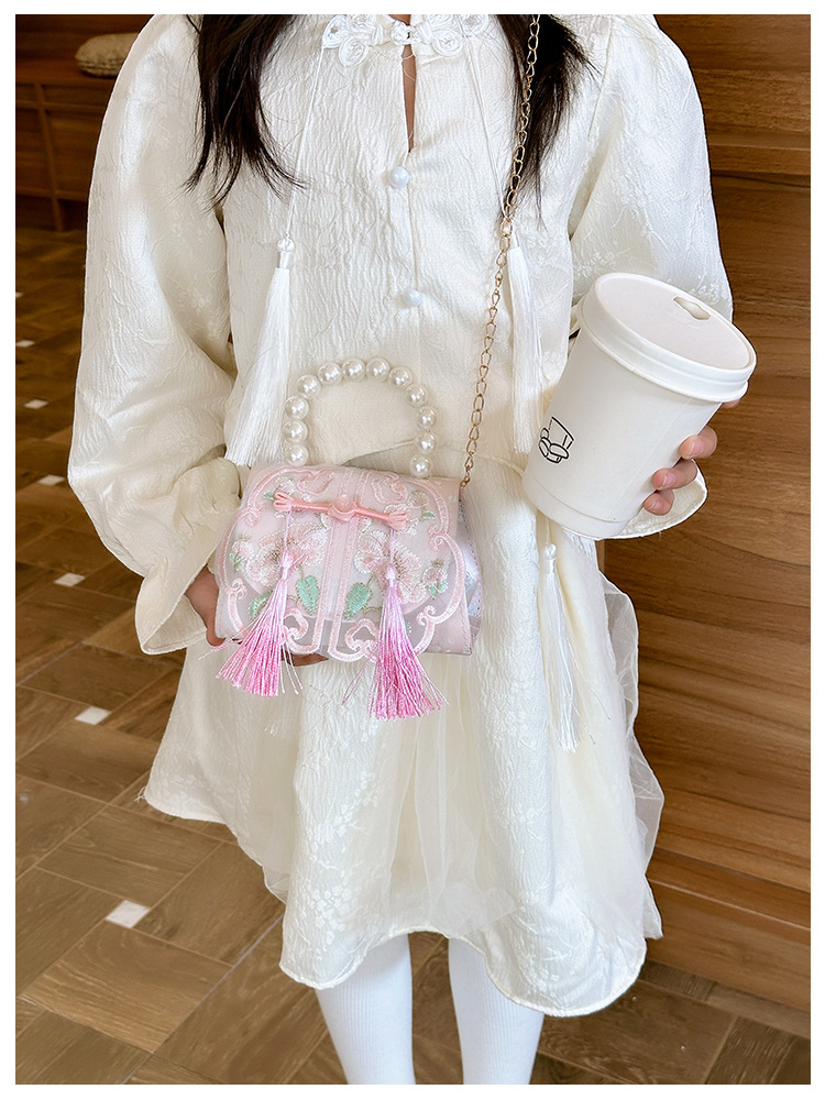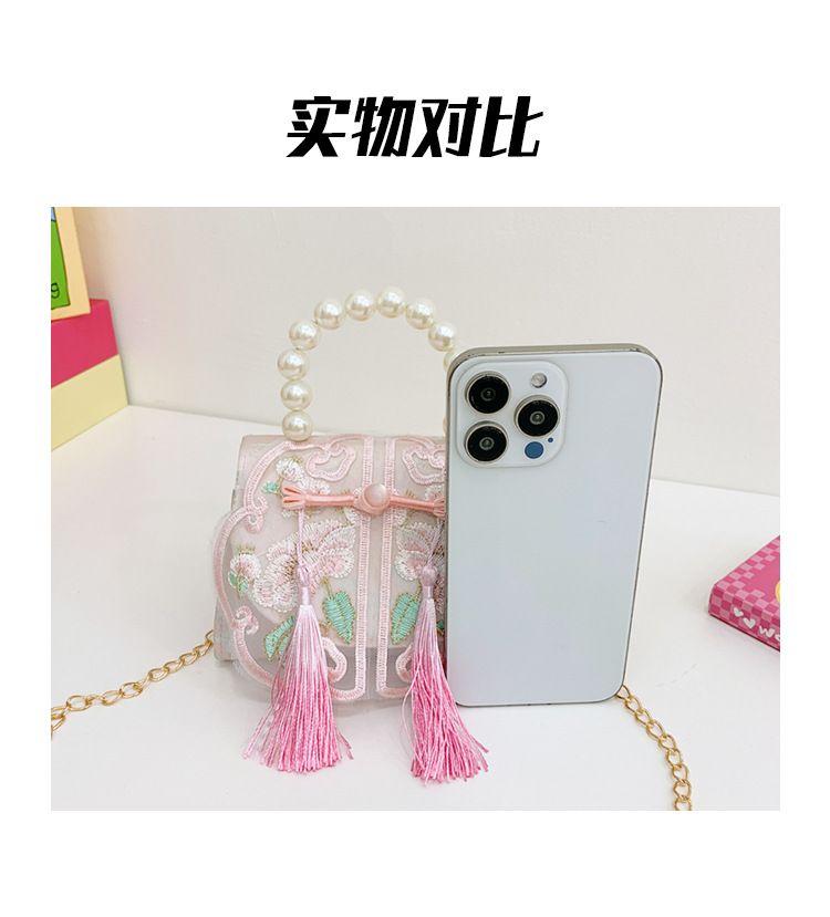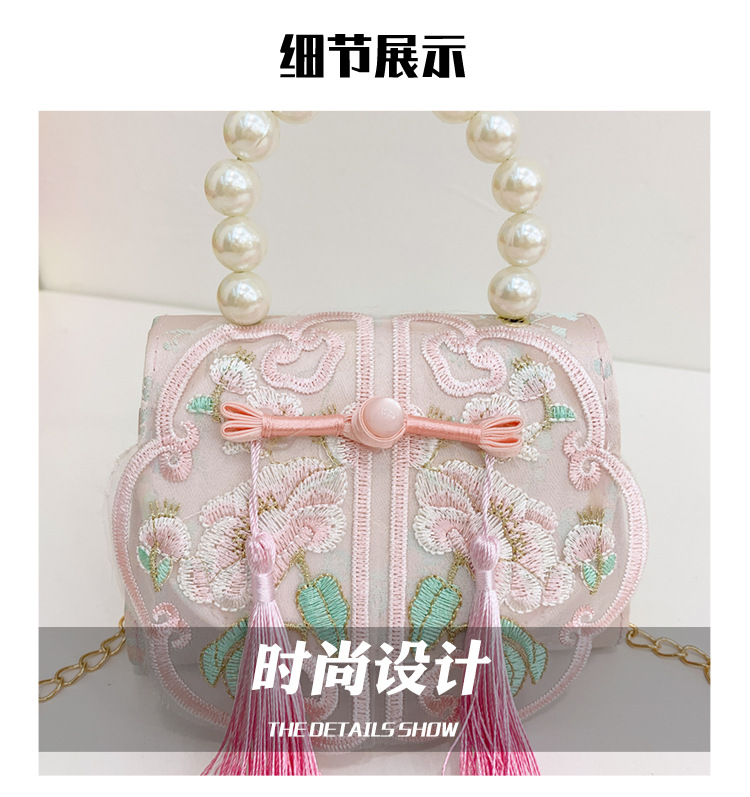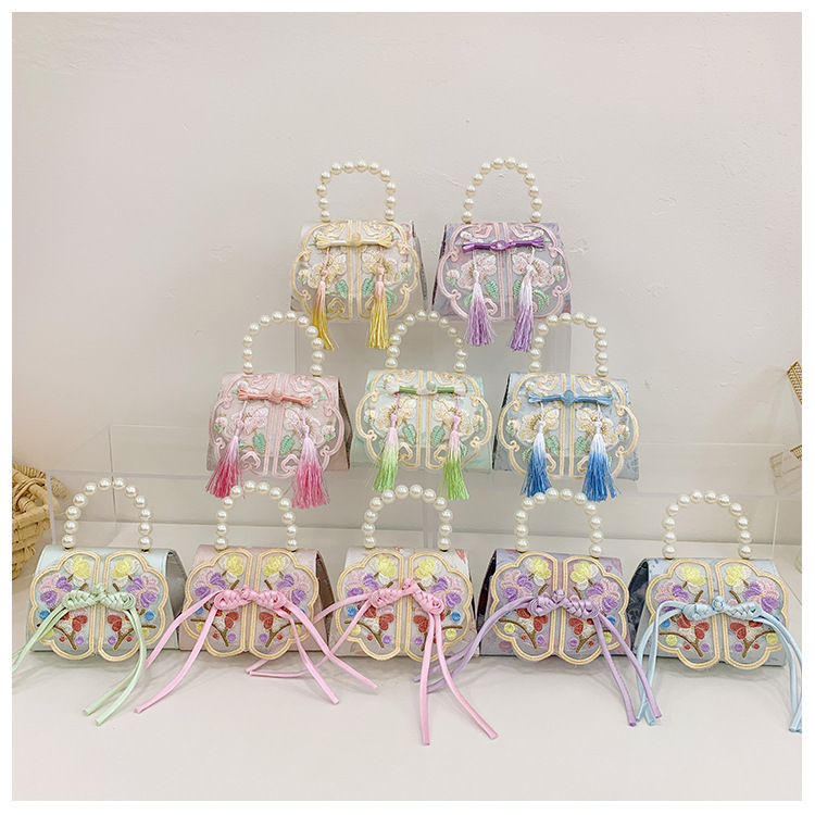 Niñas dulces perlas de aire extranjero bolsas de accesorios portátiles de estilo antiguo con bolsas de ropa de estilo chino niñas lindas bolsas de lápiz labial un hombro