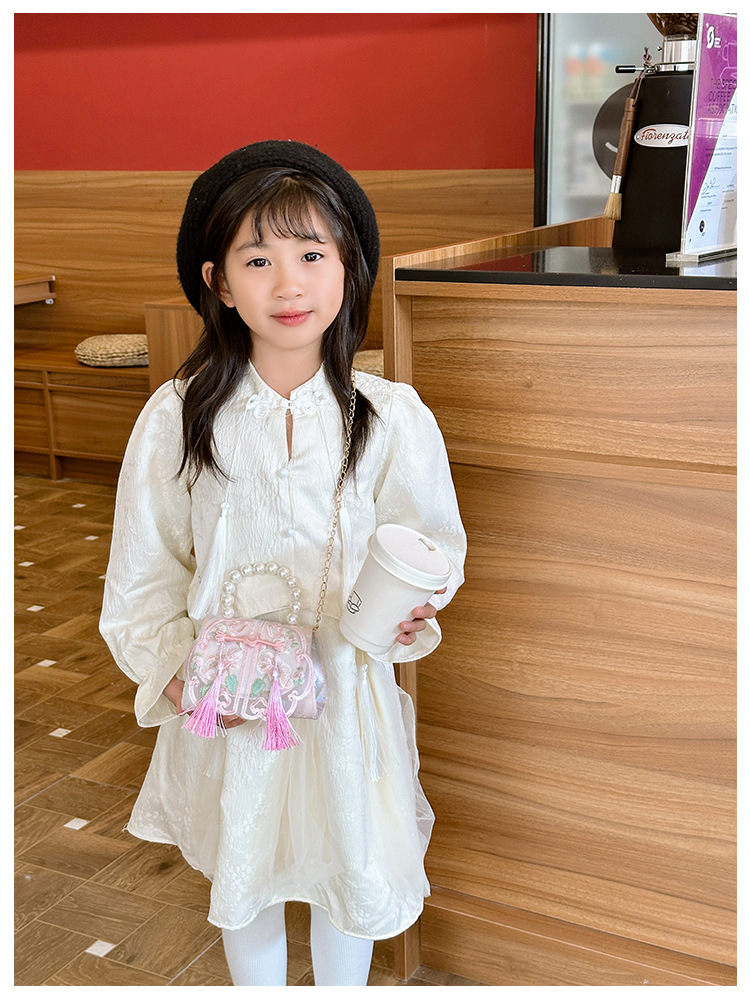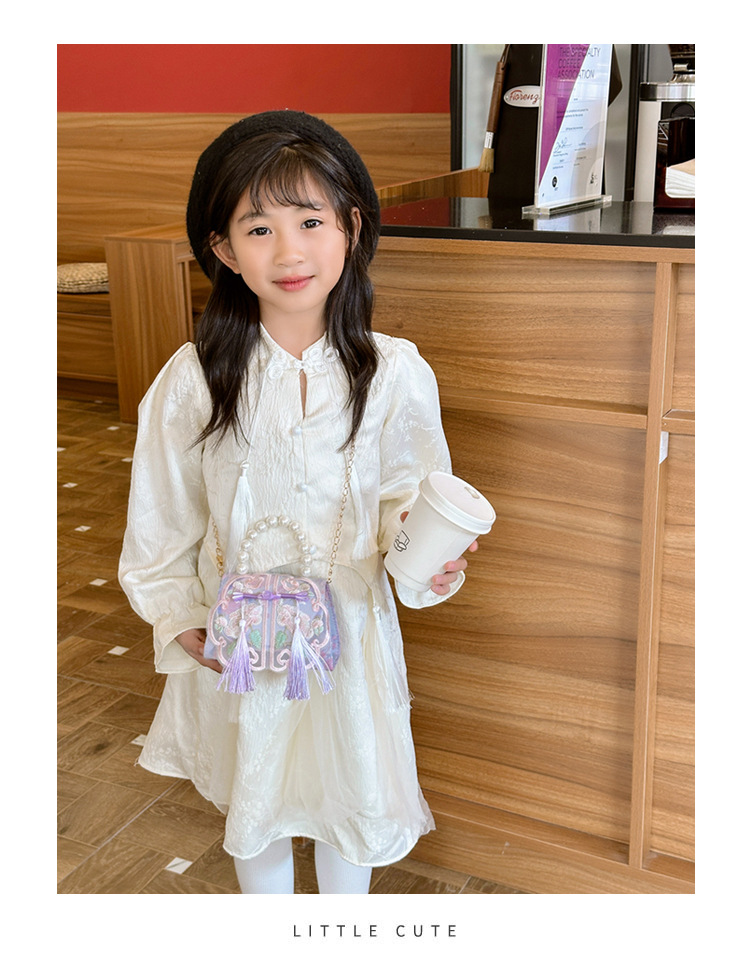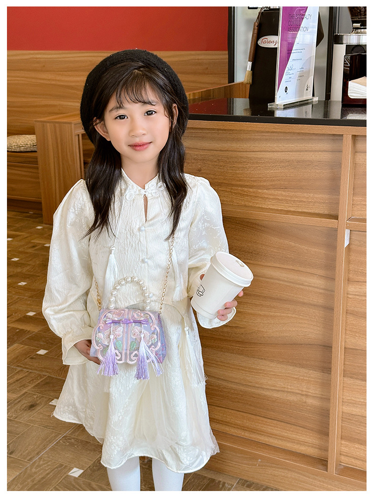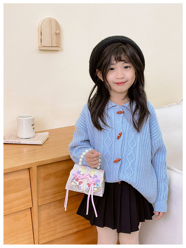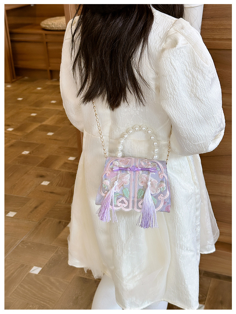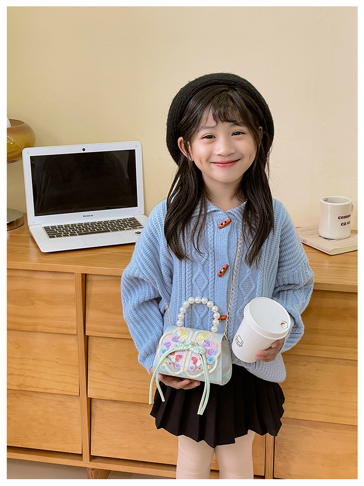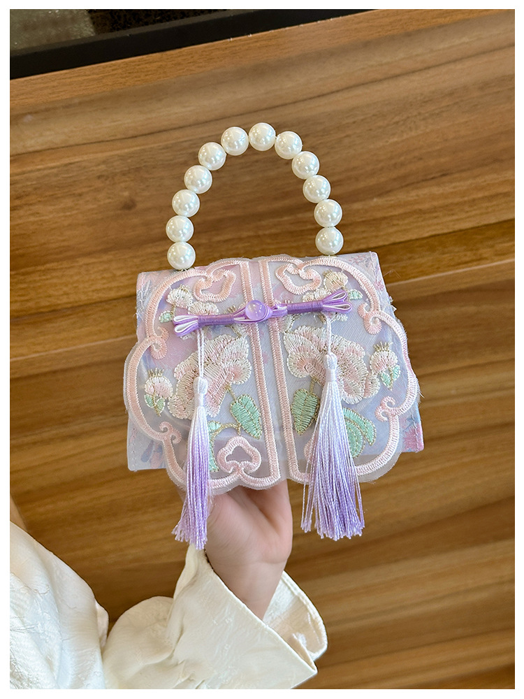Niñas dulces perlas de aire extranjero bolsas de accesorios portátiles de estilo antiguo con bolsas de ropa de estilo chino niñas lindas bolsas de lápiz labial un hombro