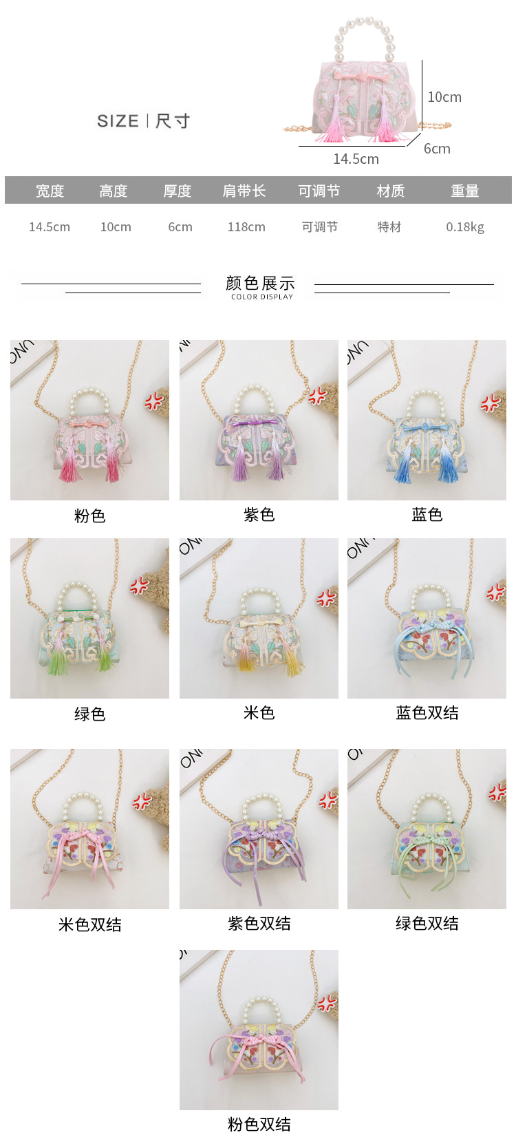 | Color | Polvo de frita, púrpura de frita, azul de frita, verde de frita, arroz de frita, polvo de doble nodo, púrpura de doble nodo, azul de doble nodo, verde de doble nodo, arroz de doble nodo |