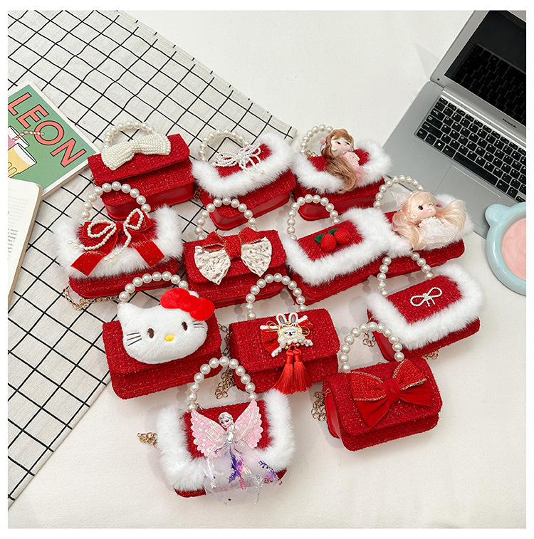 2024 niños Año Nuevo bolso de Año Nuevo niñas bolso de Año Nuevo rojo princesa Aisha bolso de mano de horno oblicuo mochila de niñas