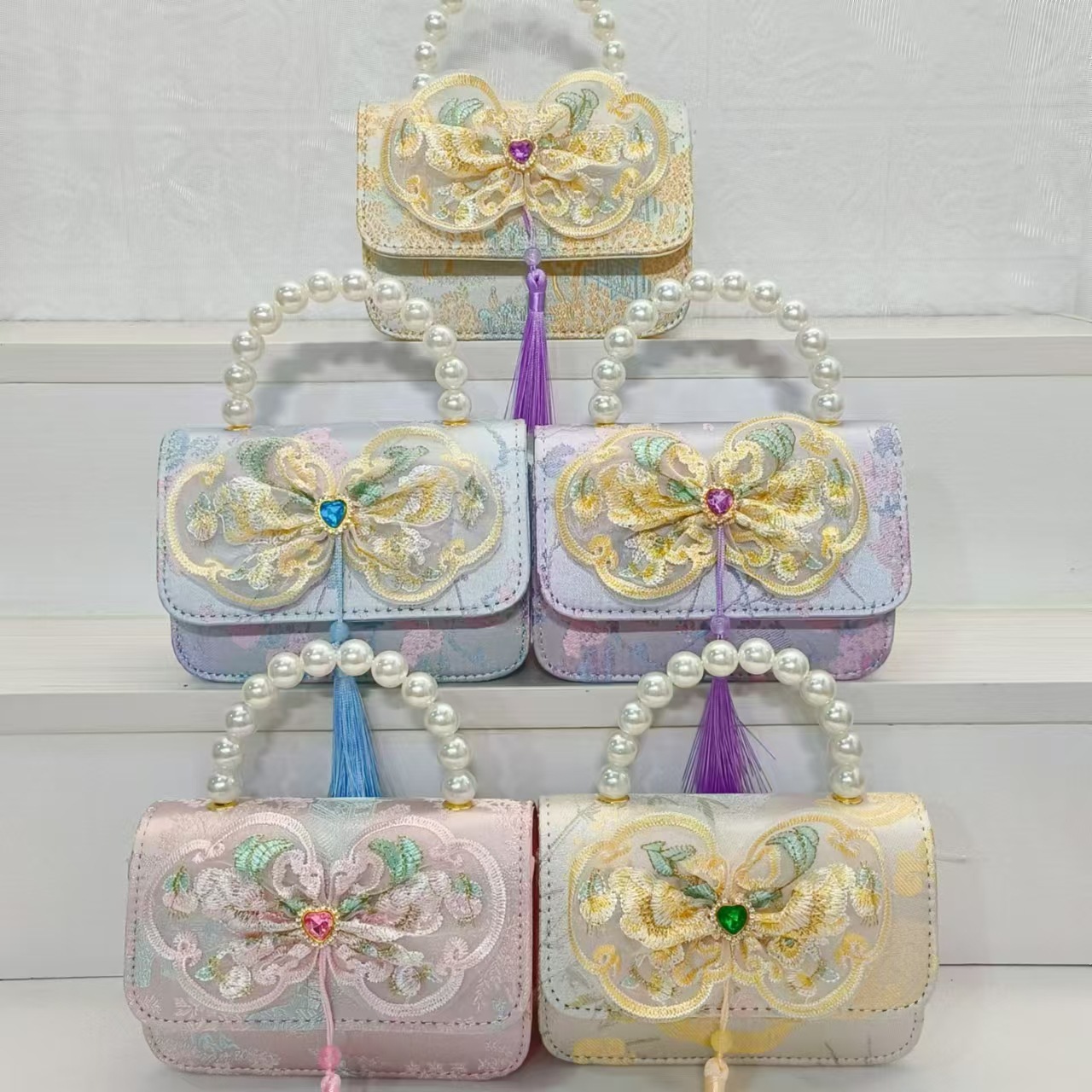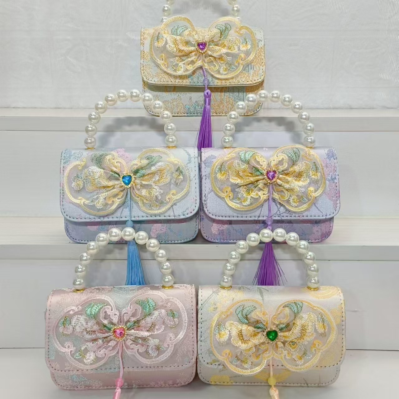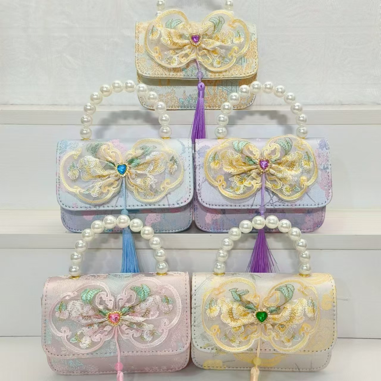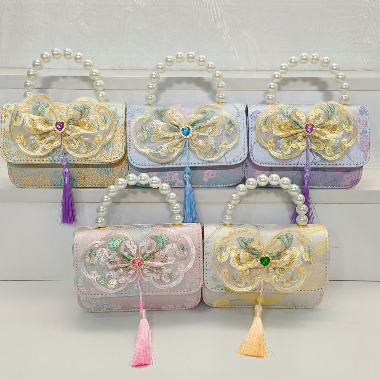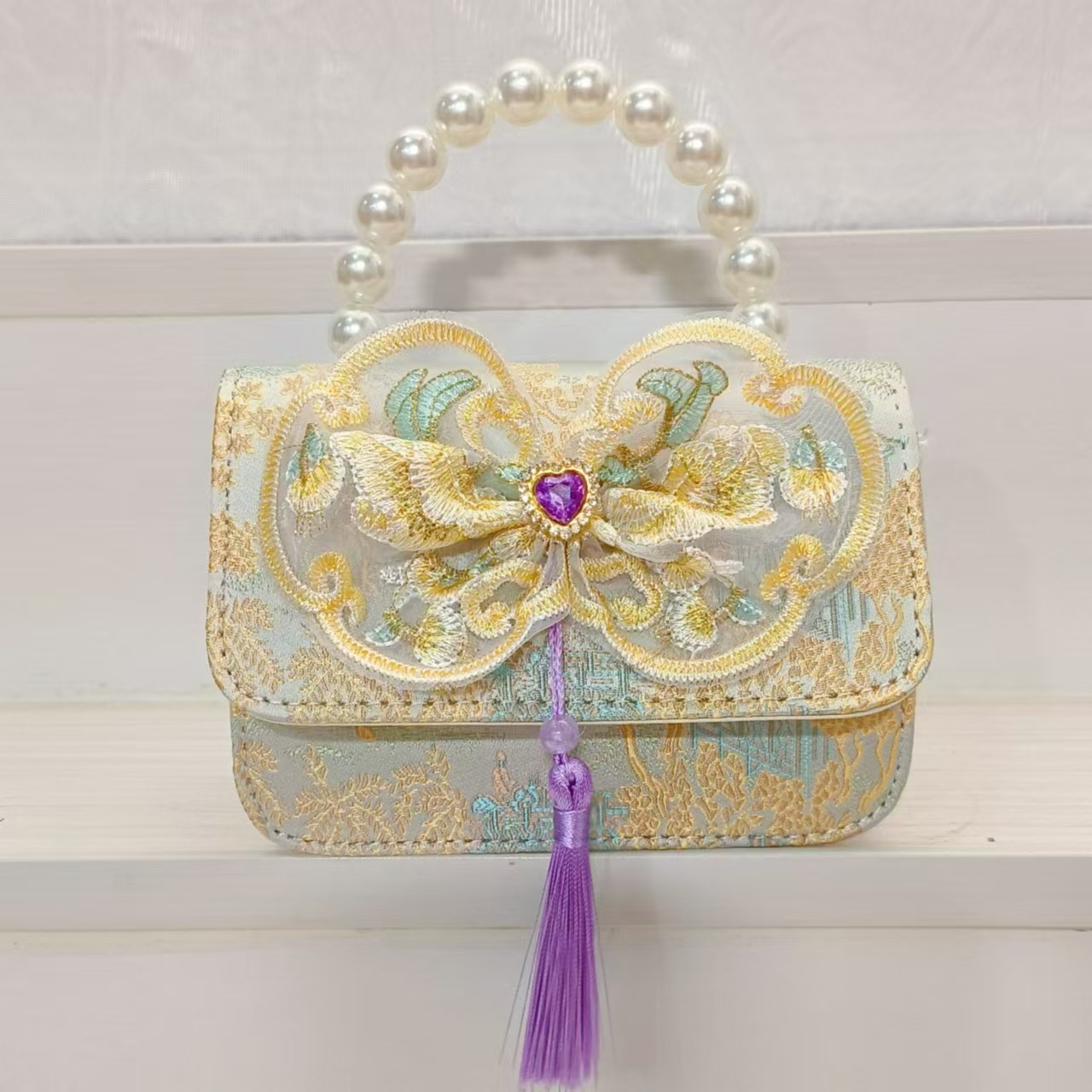 Bolso de perla estilo nacional arco bolso de cadena bolso de mochila para niñas vestidos chinos antiguos accesorios bolsos regalos para niñas