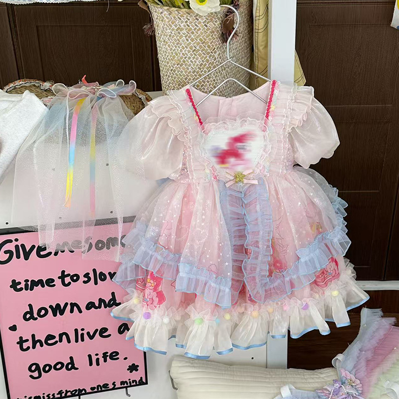 Vestido de niña verano 2025 nuevo estilo de malla honda vestido de princesa vestido de verano de niña vestido de Lolita cumpleaños