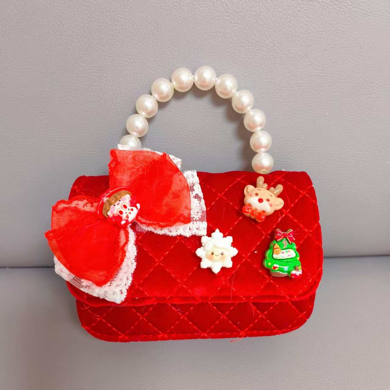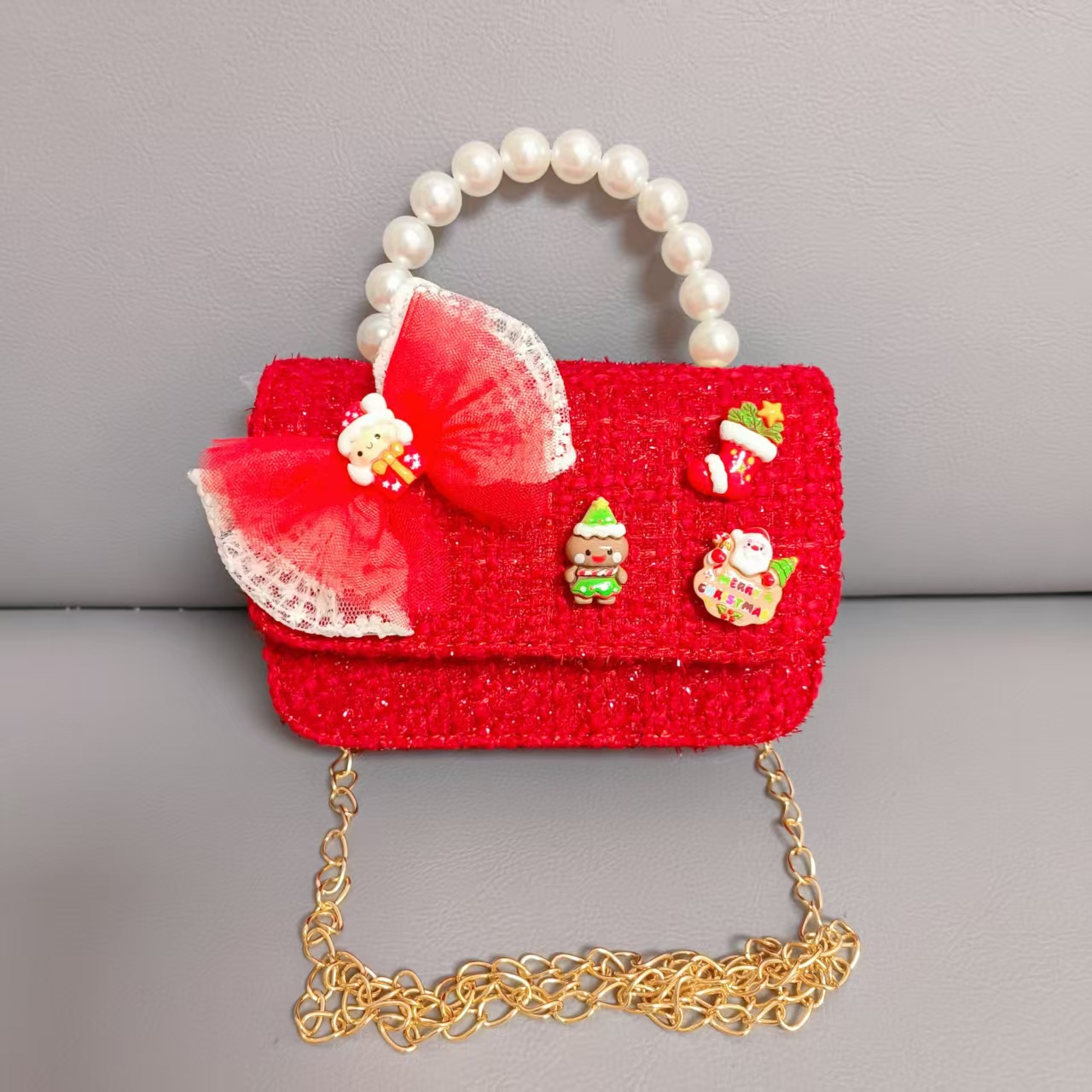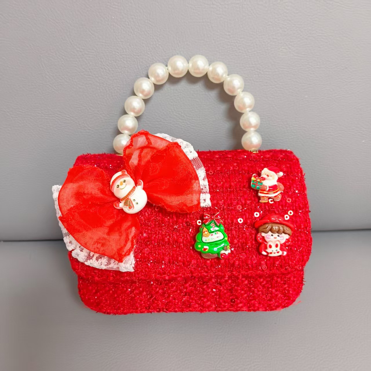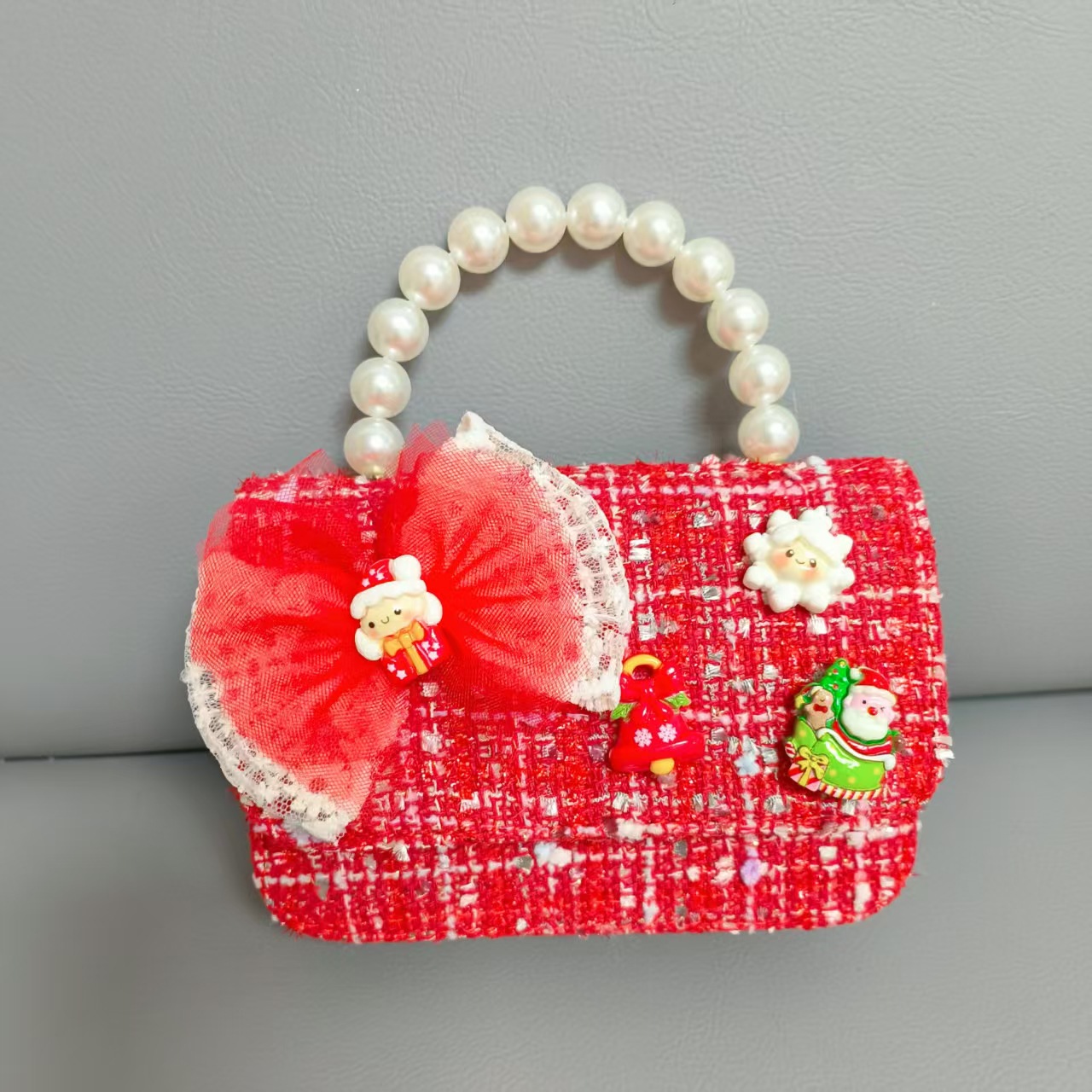 Cartera de Año Nuevo rojo arco de papá Noel bolso de perla pequeña cadena de viento fragante bolso de hombro