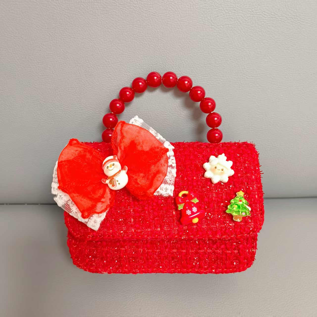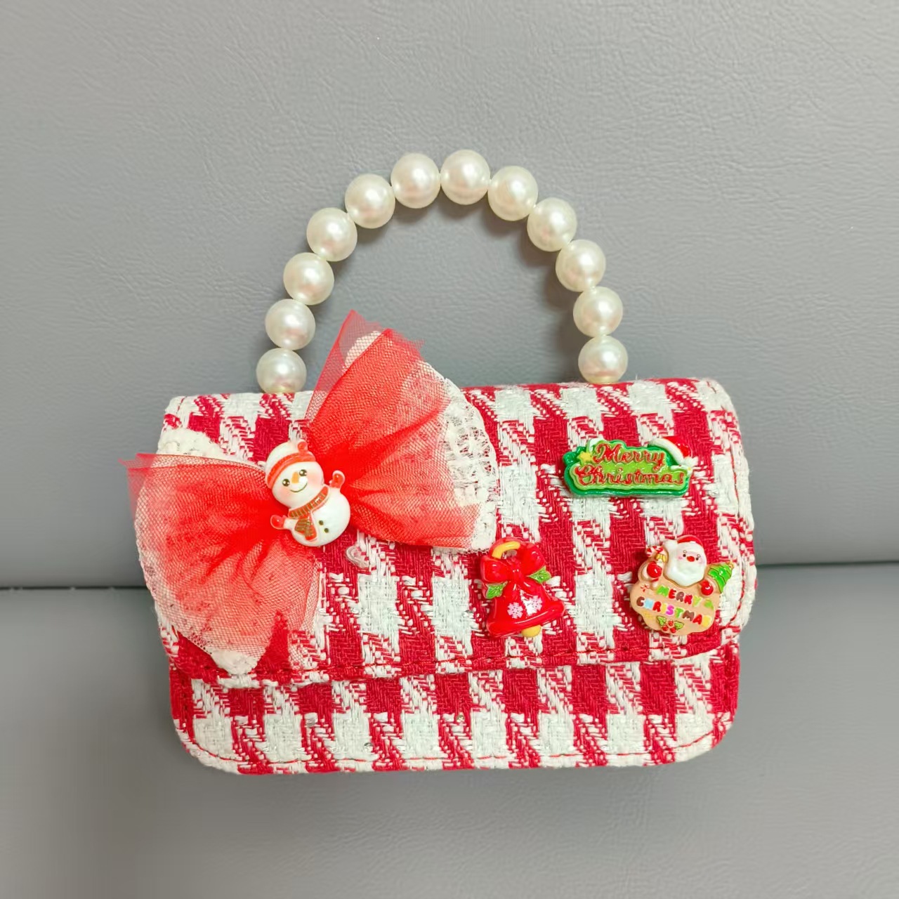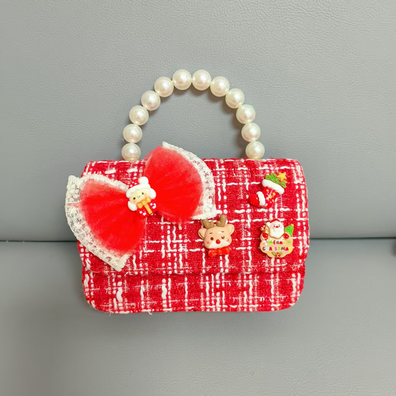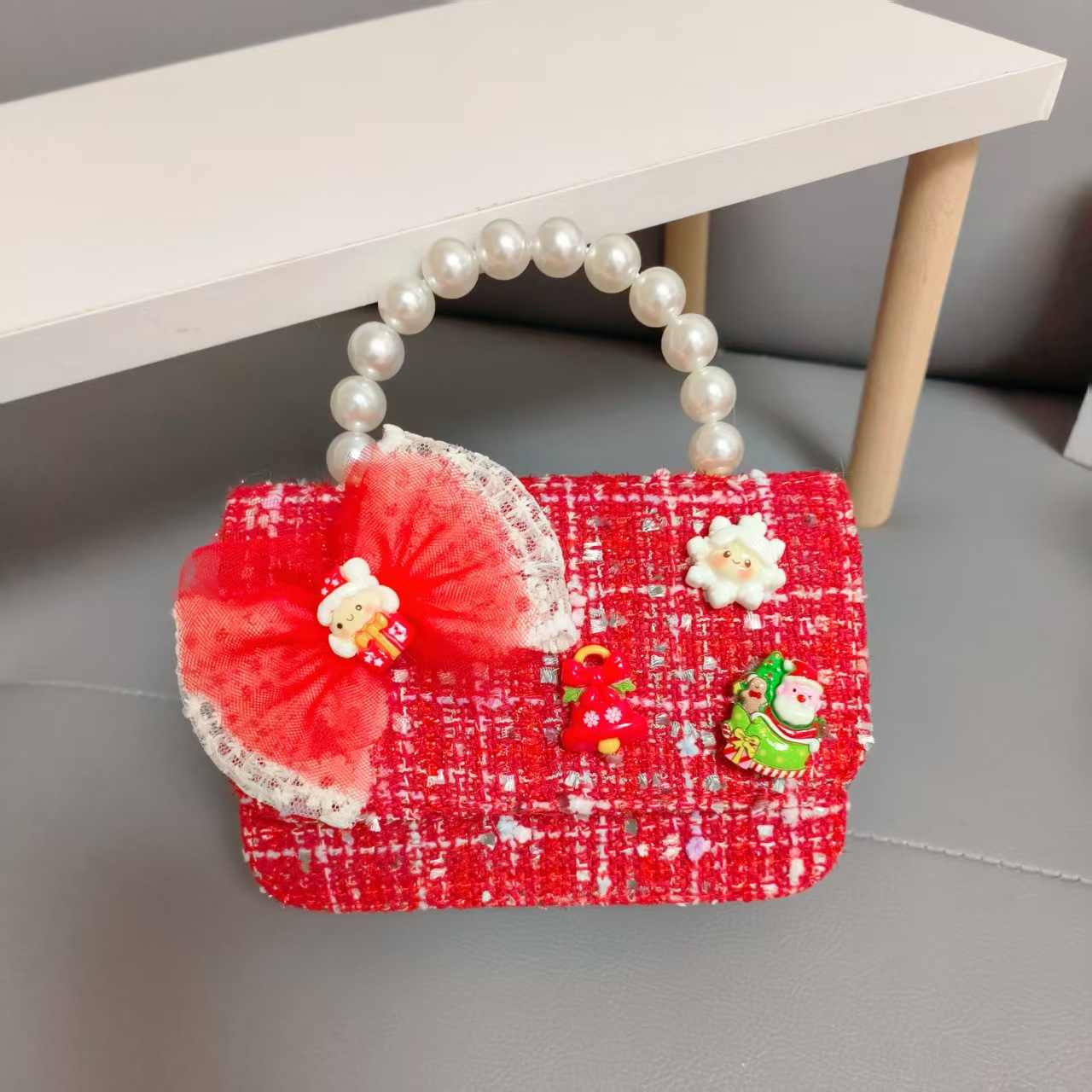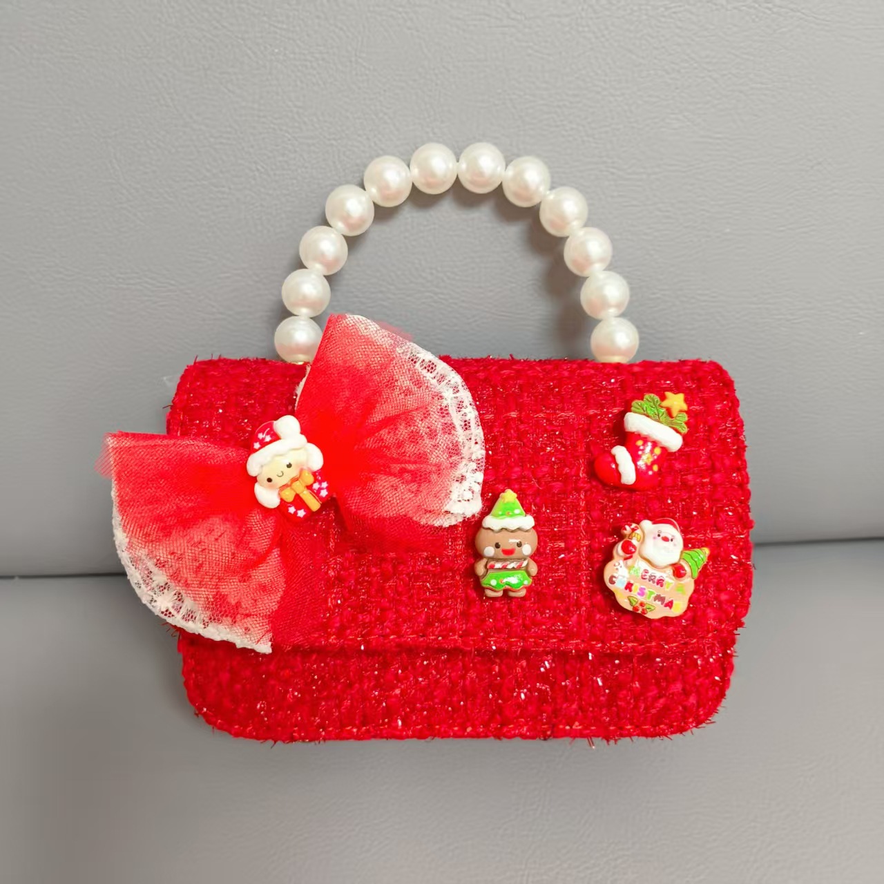 Cartera de Año Nuevo rojo arco de papá Noel bolso de perla pequeña cadena de viento fragante bolso de hombro