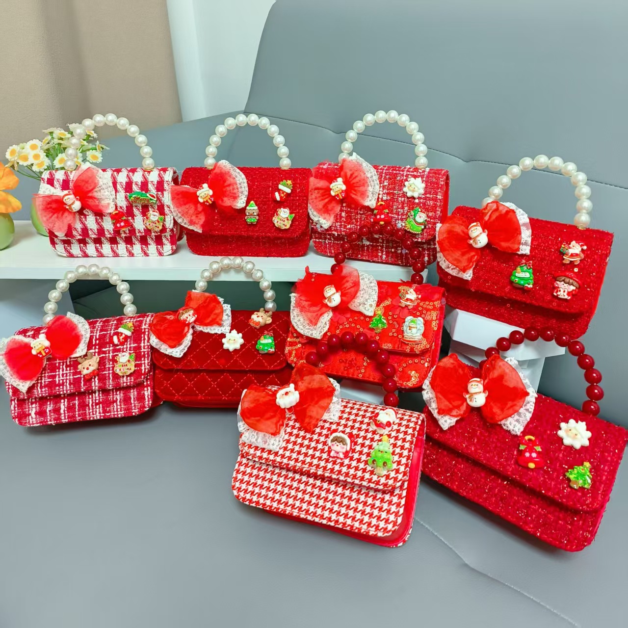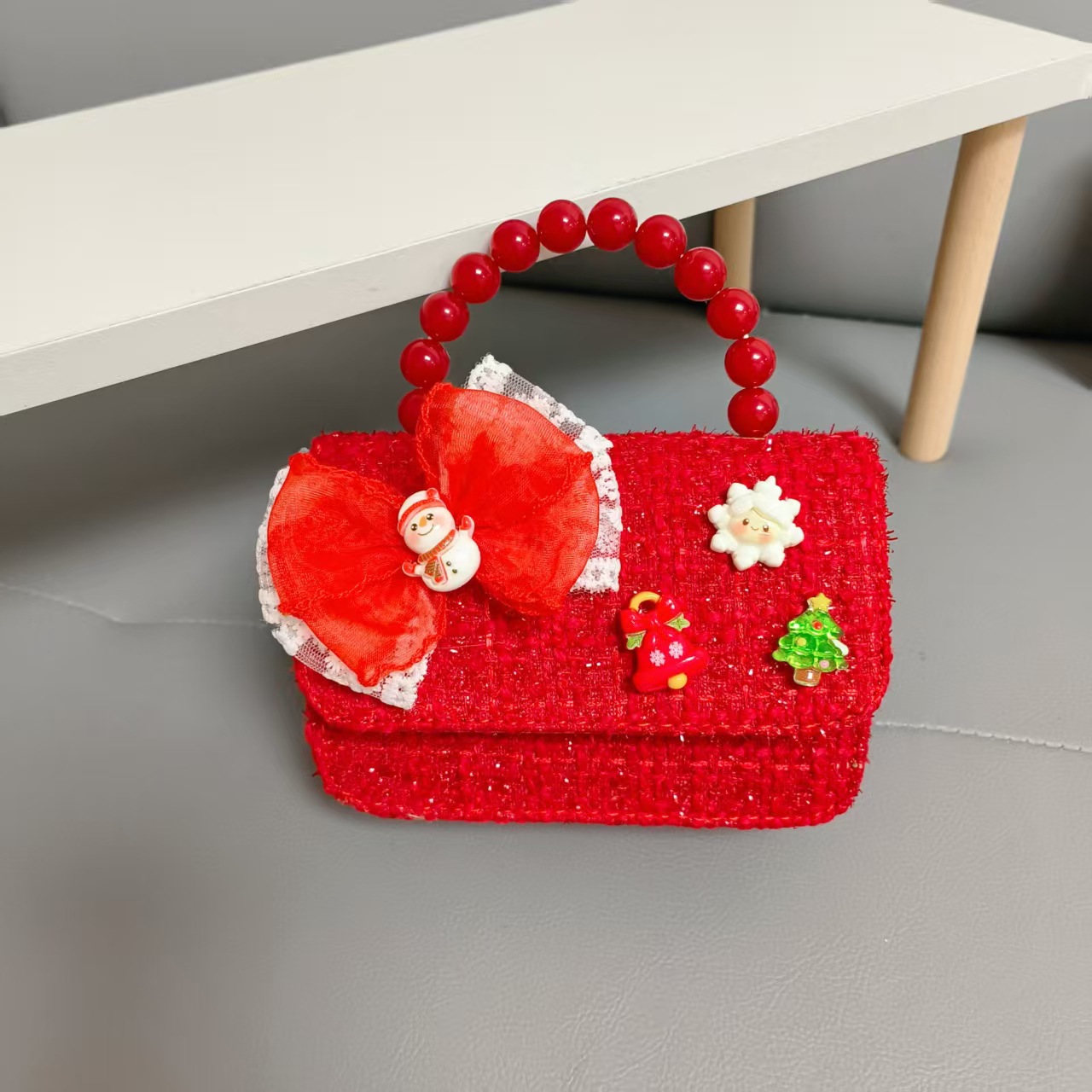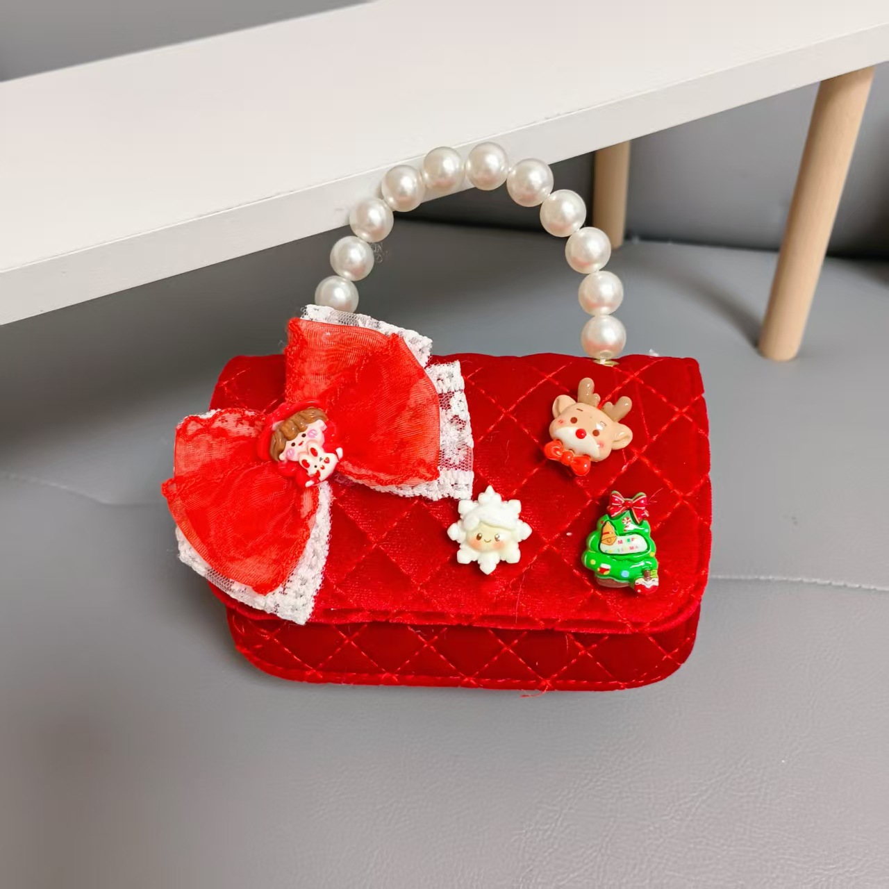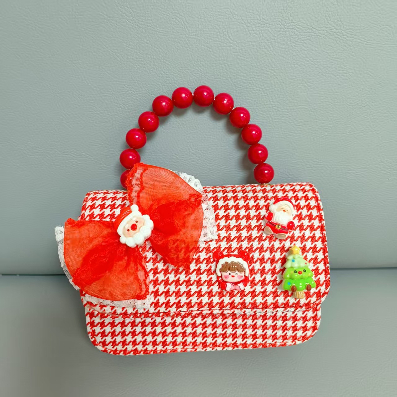Cartera de Año Nuevo rojo arco de papá Noel bolso de perla pequeña cadena de viento fragante bolso de hombro