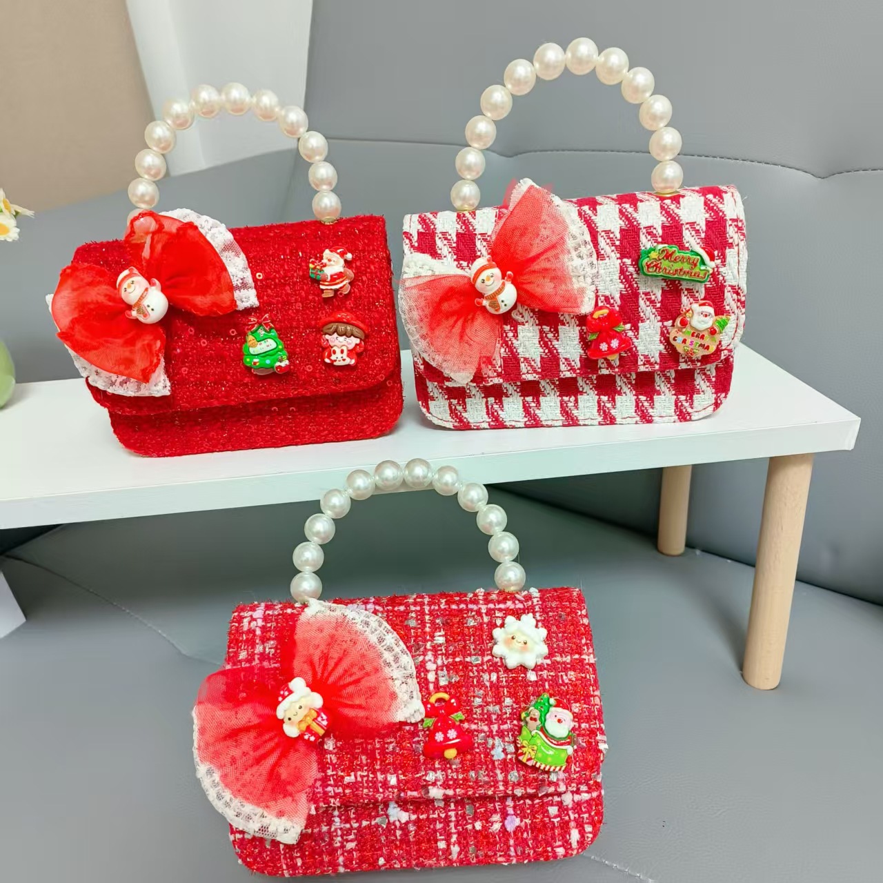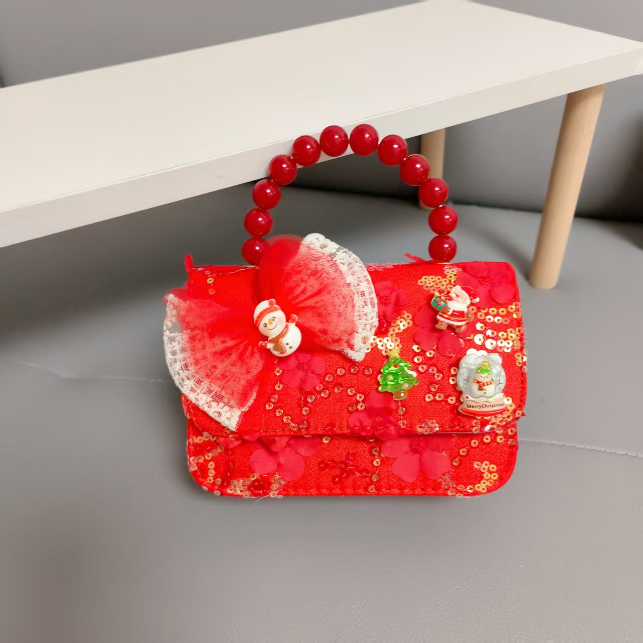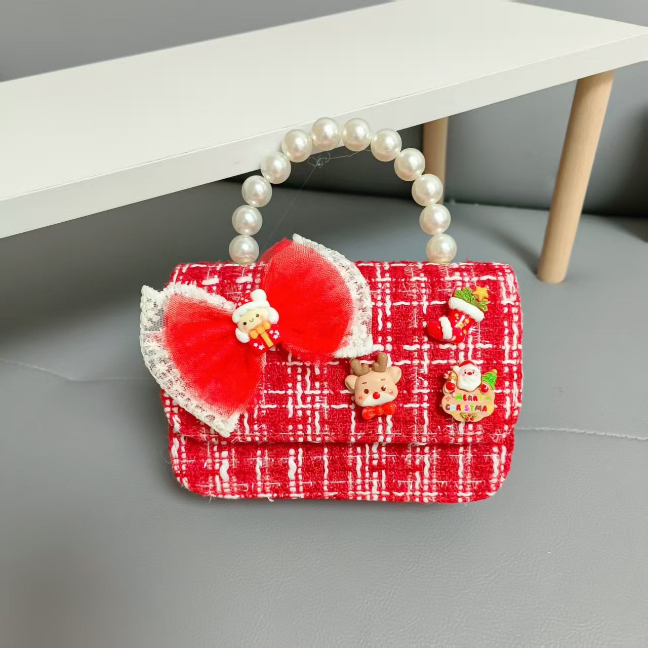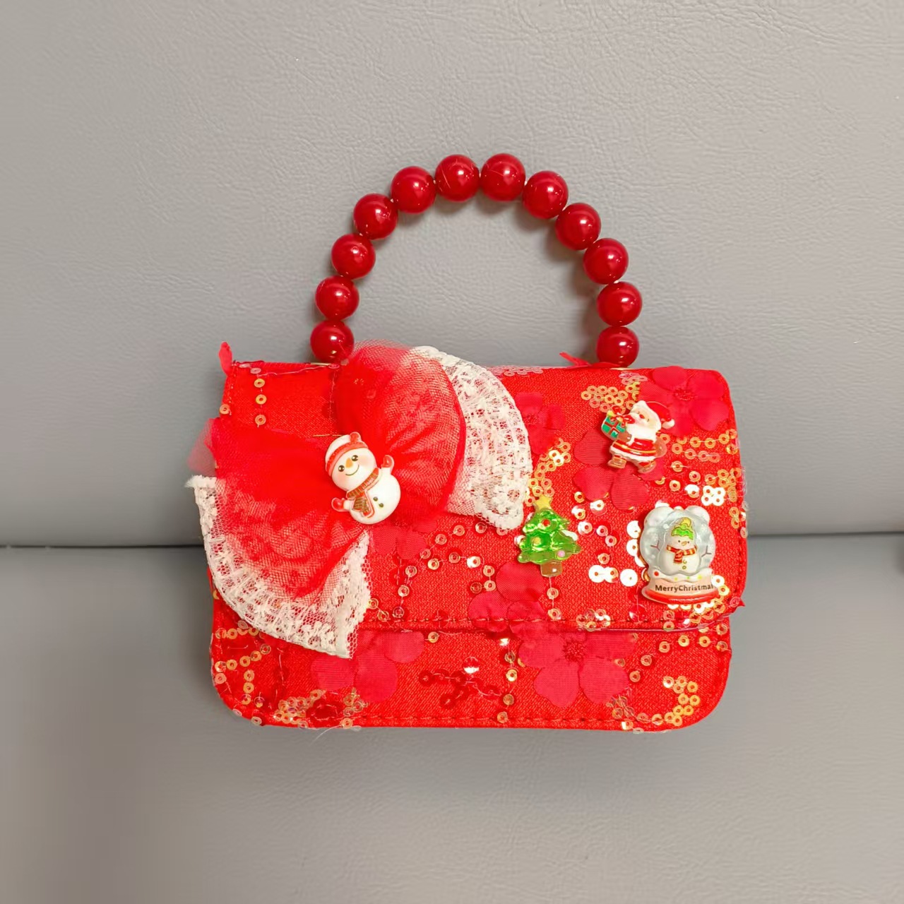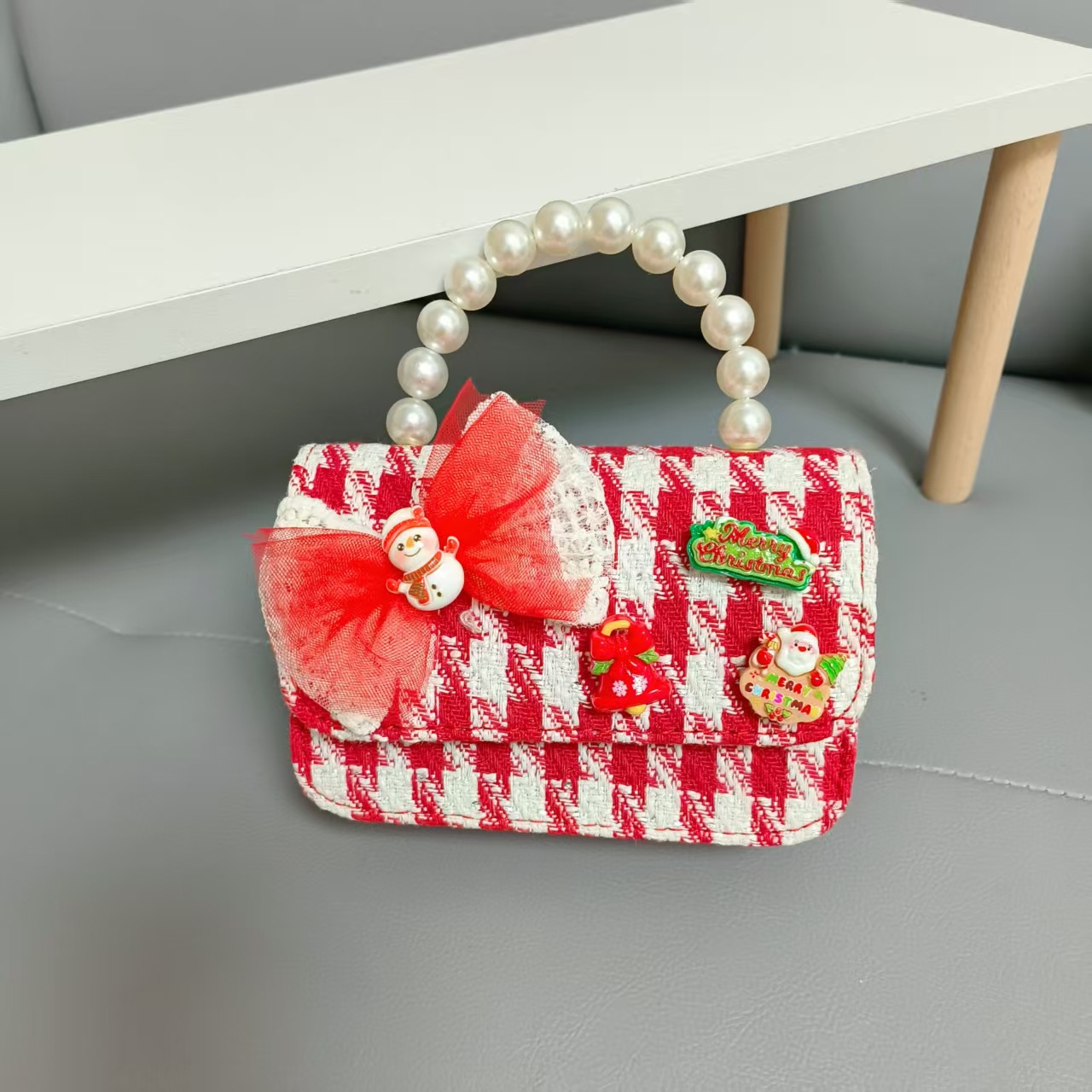 Cartera de Año Nuevo rojo arco de papá Noel bolso de perla pequeña cadena de viento fragante bolso de hombro