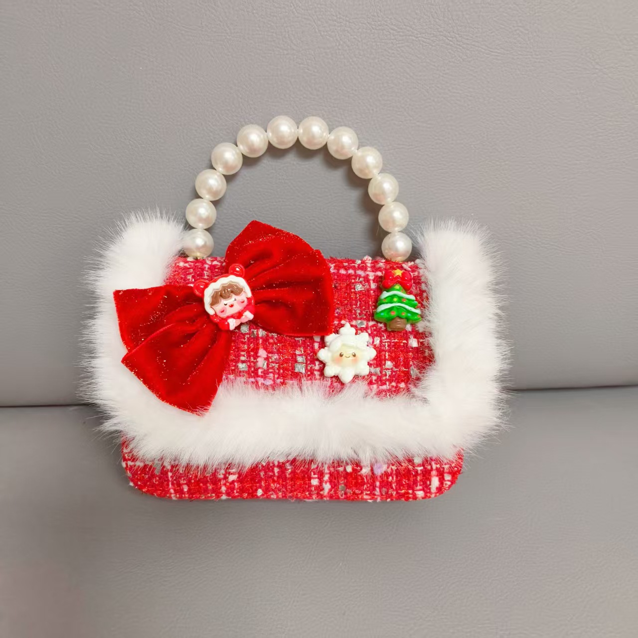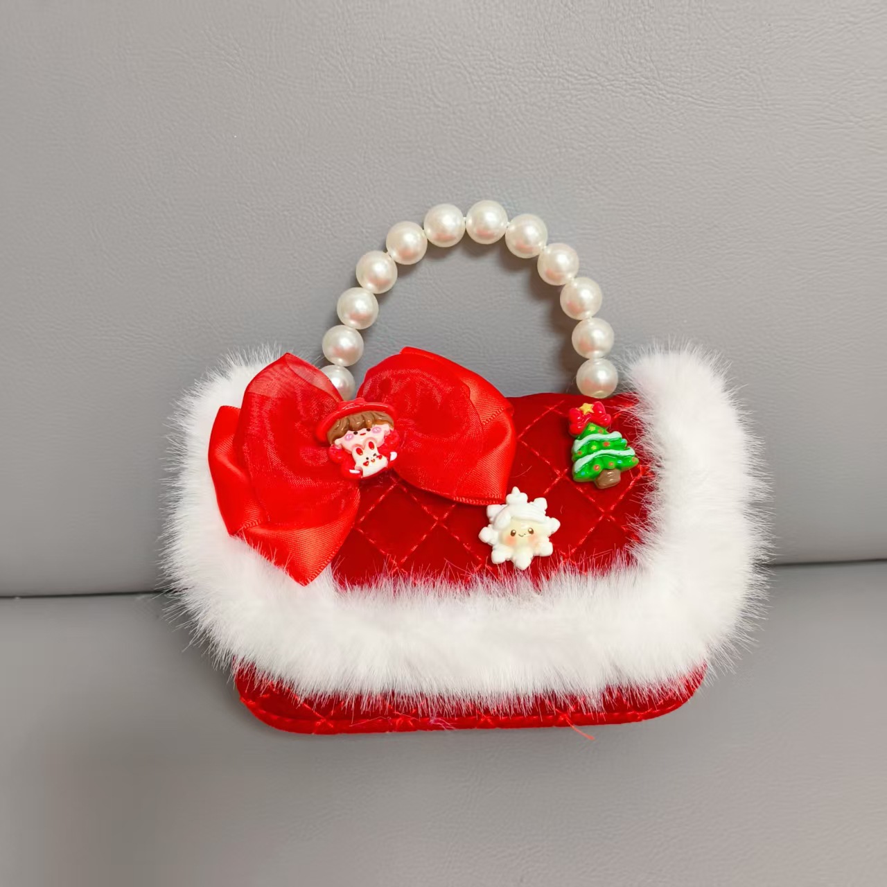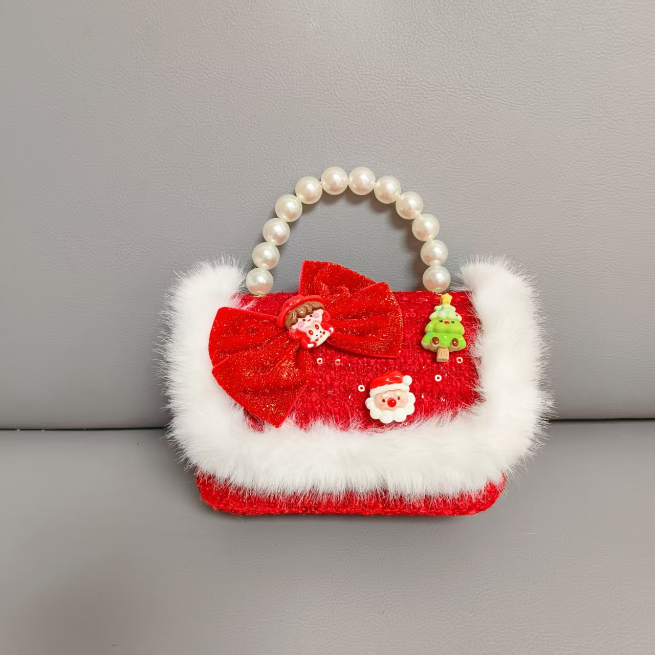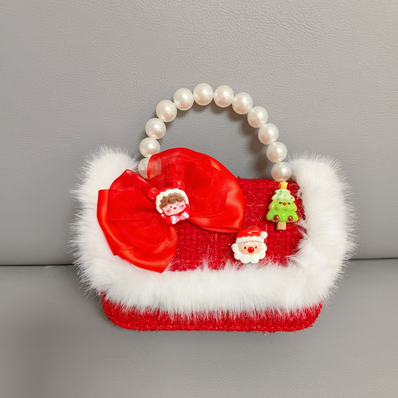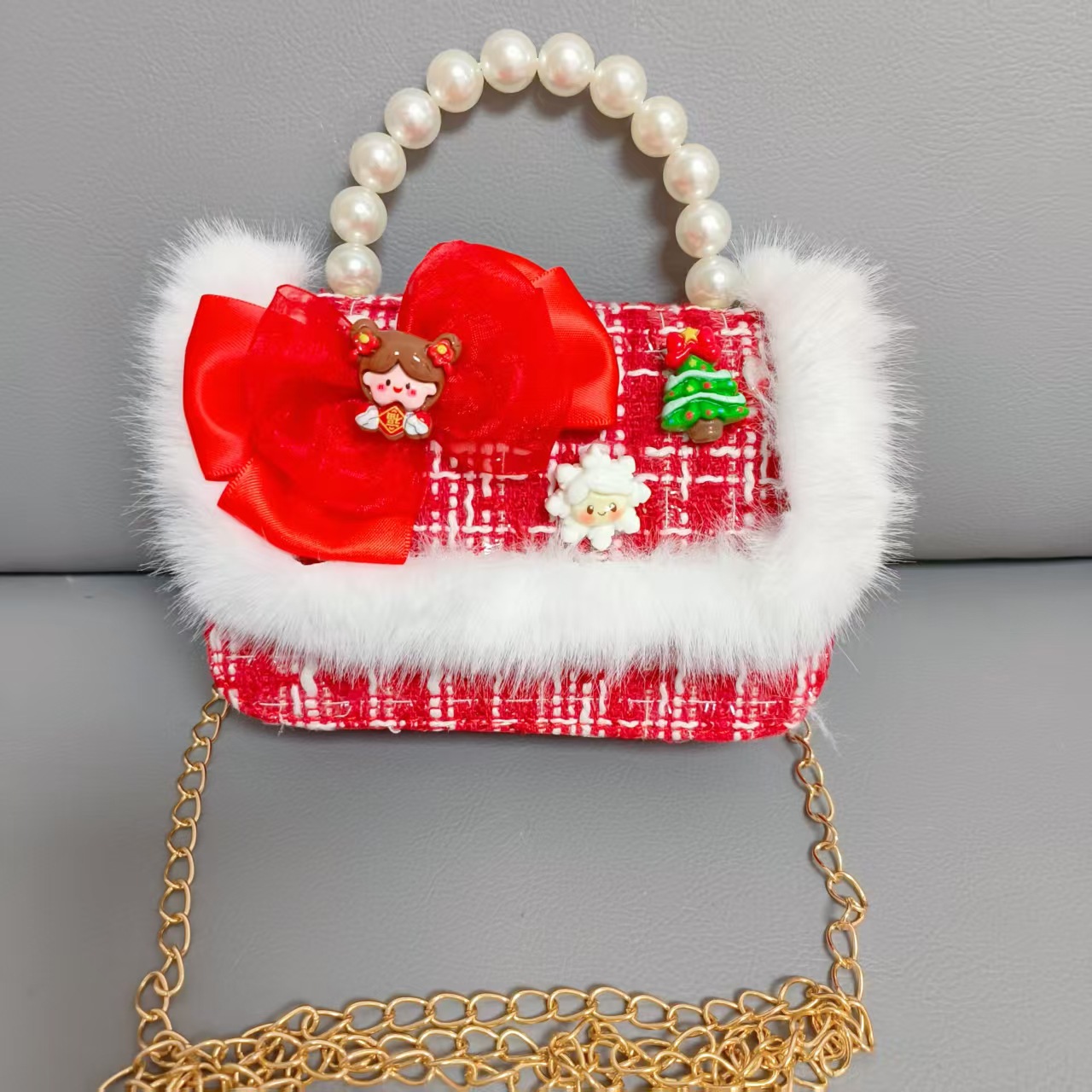 Cartera de Año Nuevo rojo arco de papá Noel bolso de perla pequeña cadena de viento fragante bolso de hombro