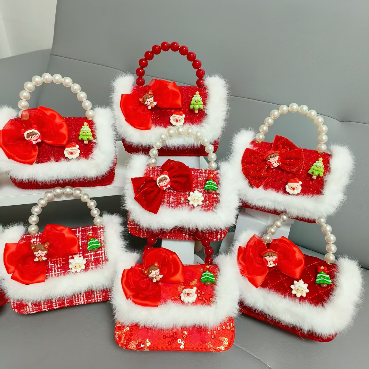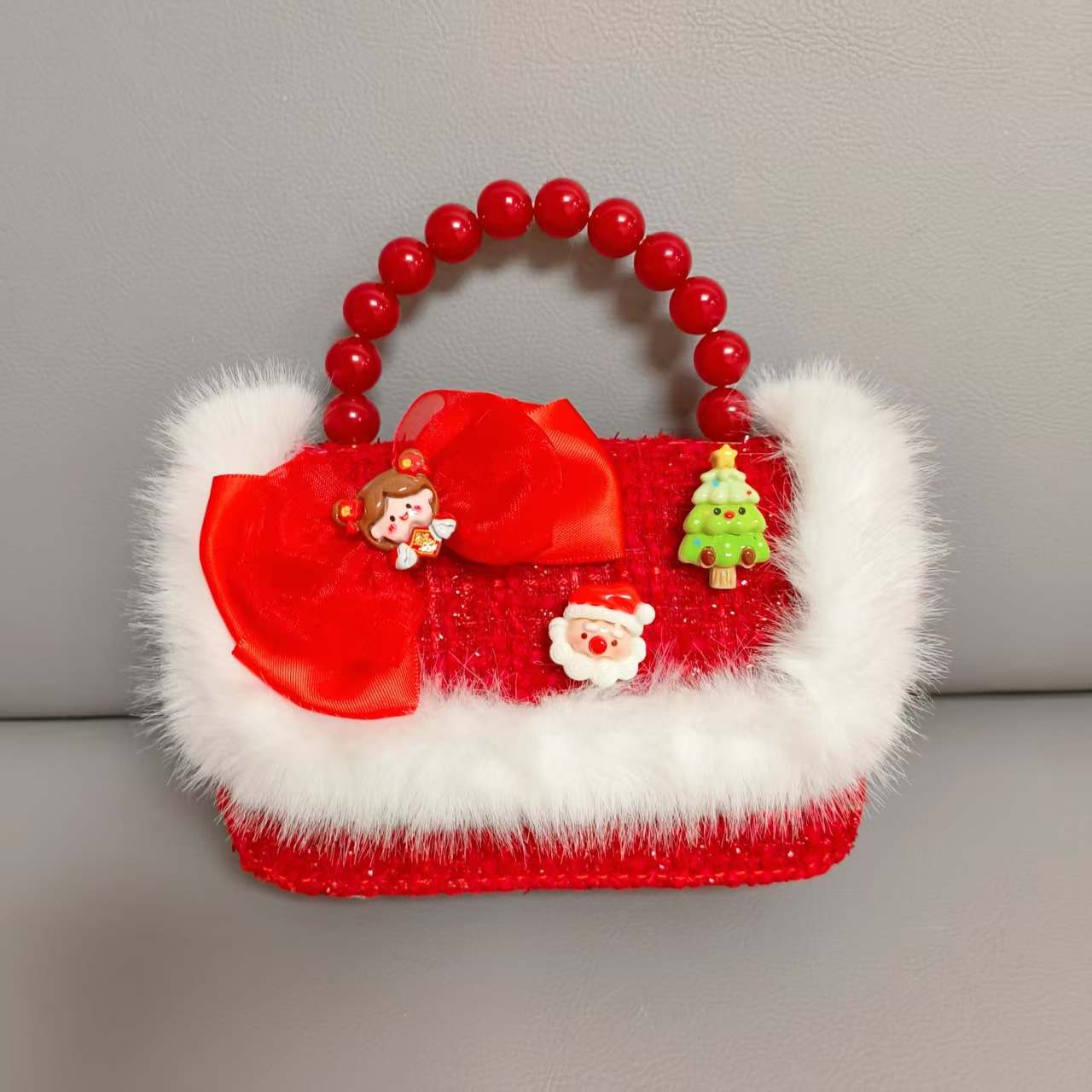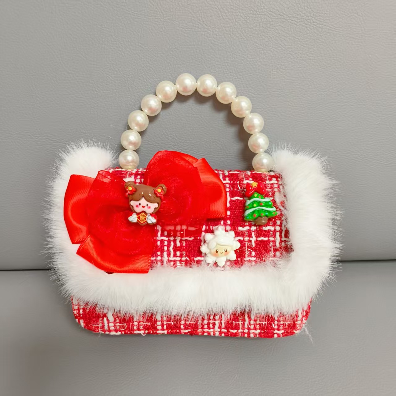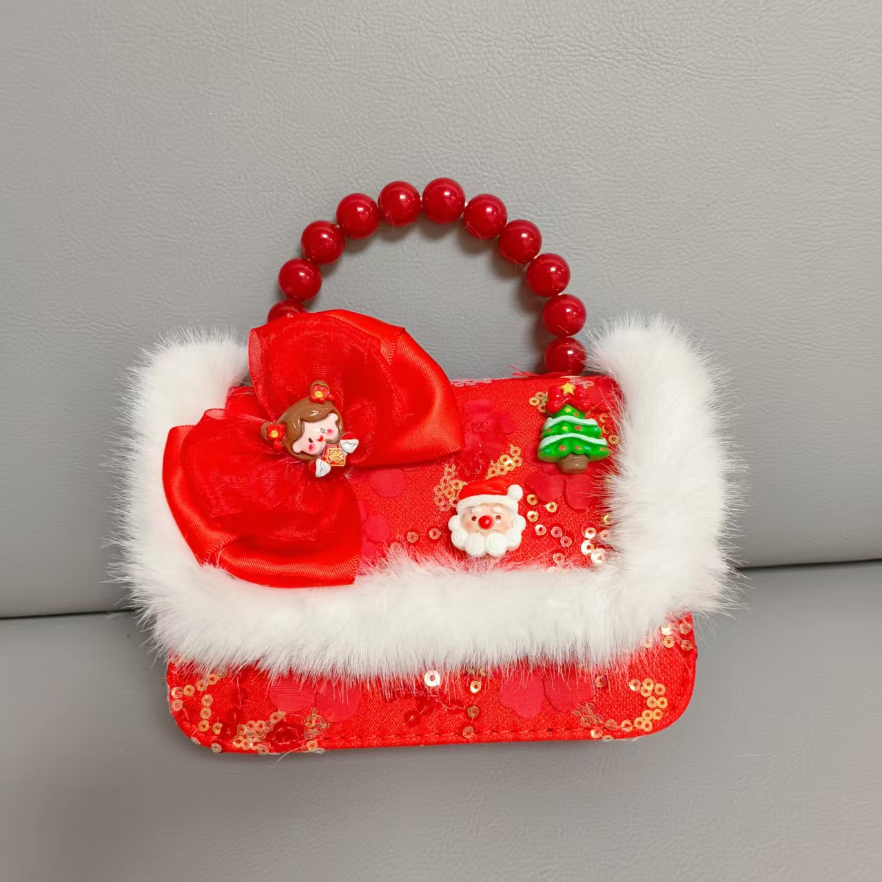 Cartera de Año Nuevo rojo arco de papá Noel bolso de perla pequeña cadena de viento fragante bolso de hombro