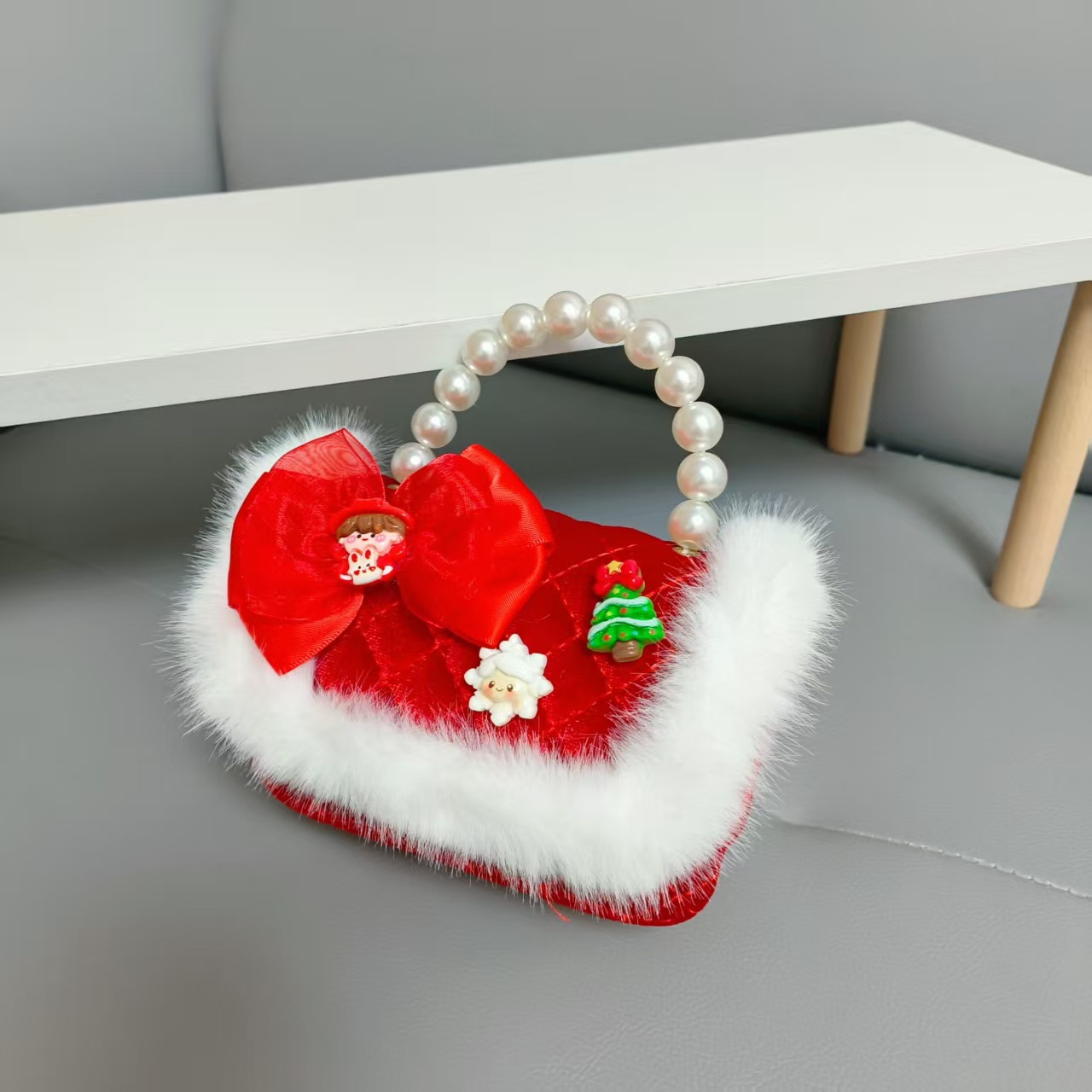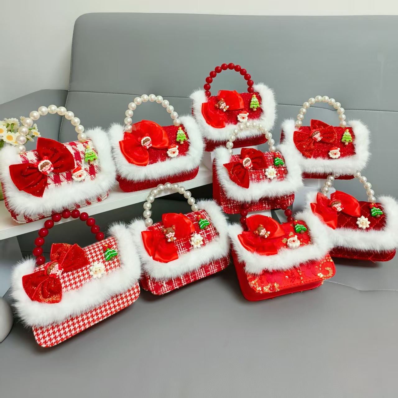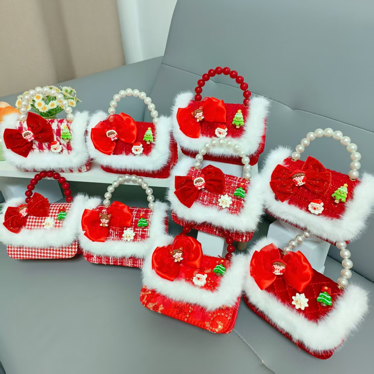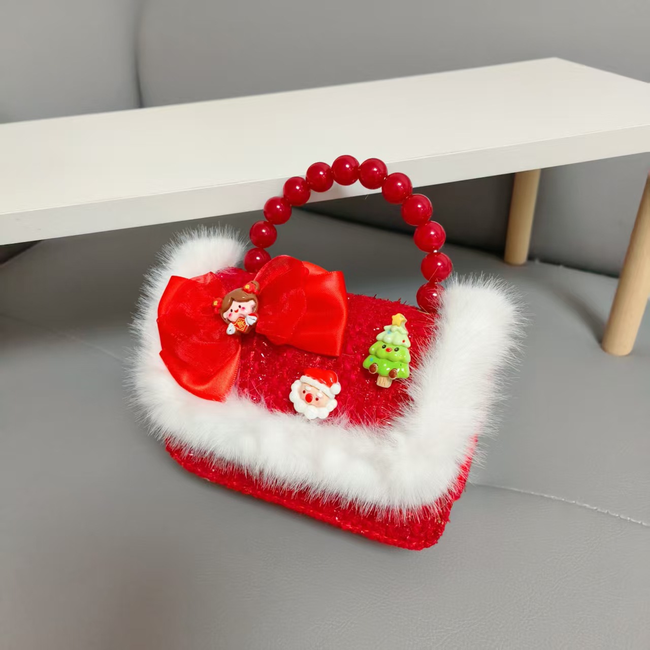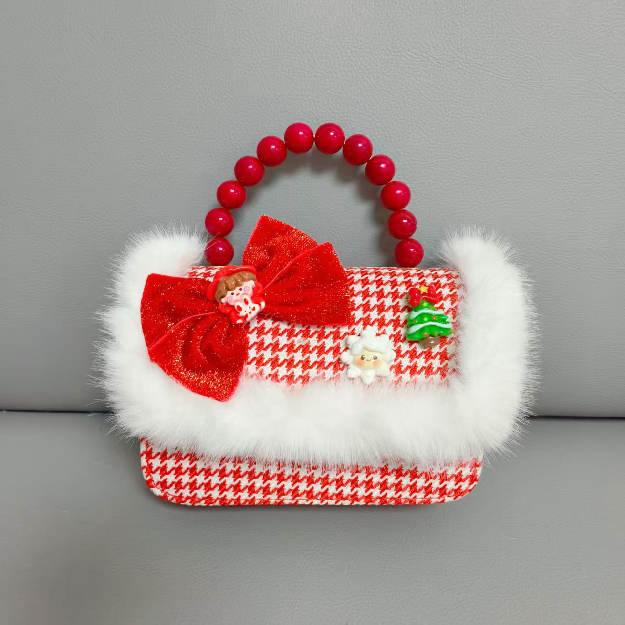 Cartera de Año Nuevo rojo arco de papá Noel bolso de perla pequeña cadena de viento fragante bolso de hombro